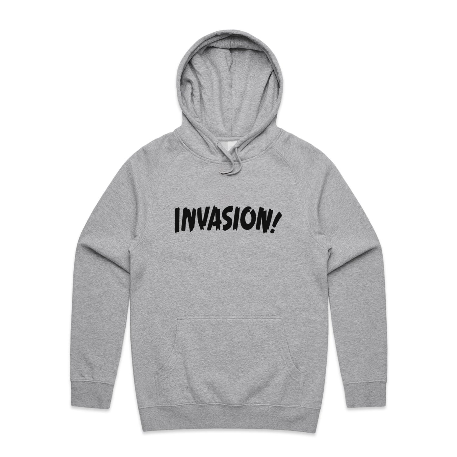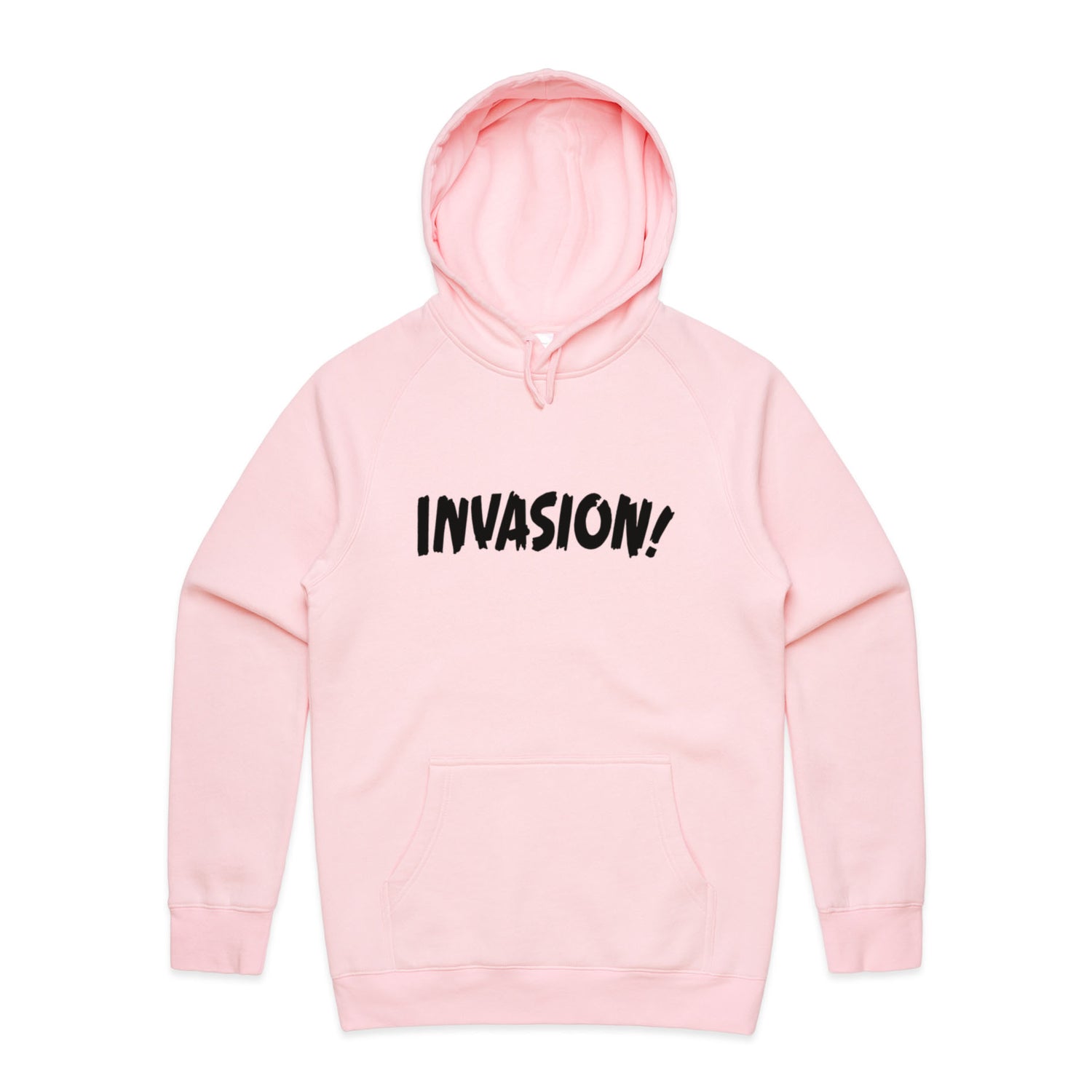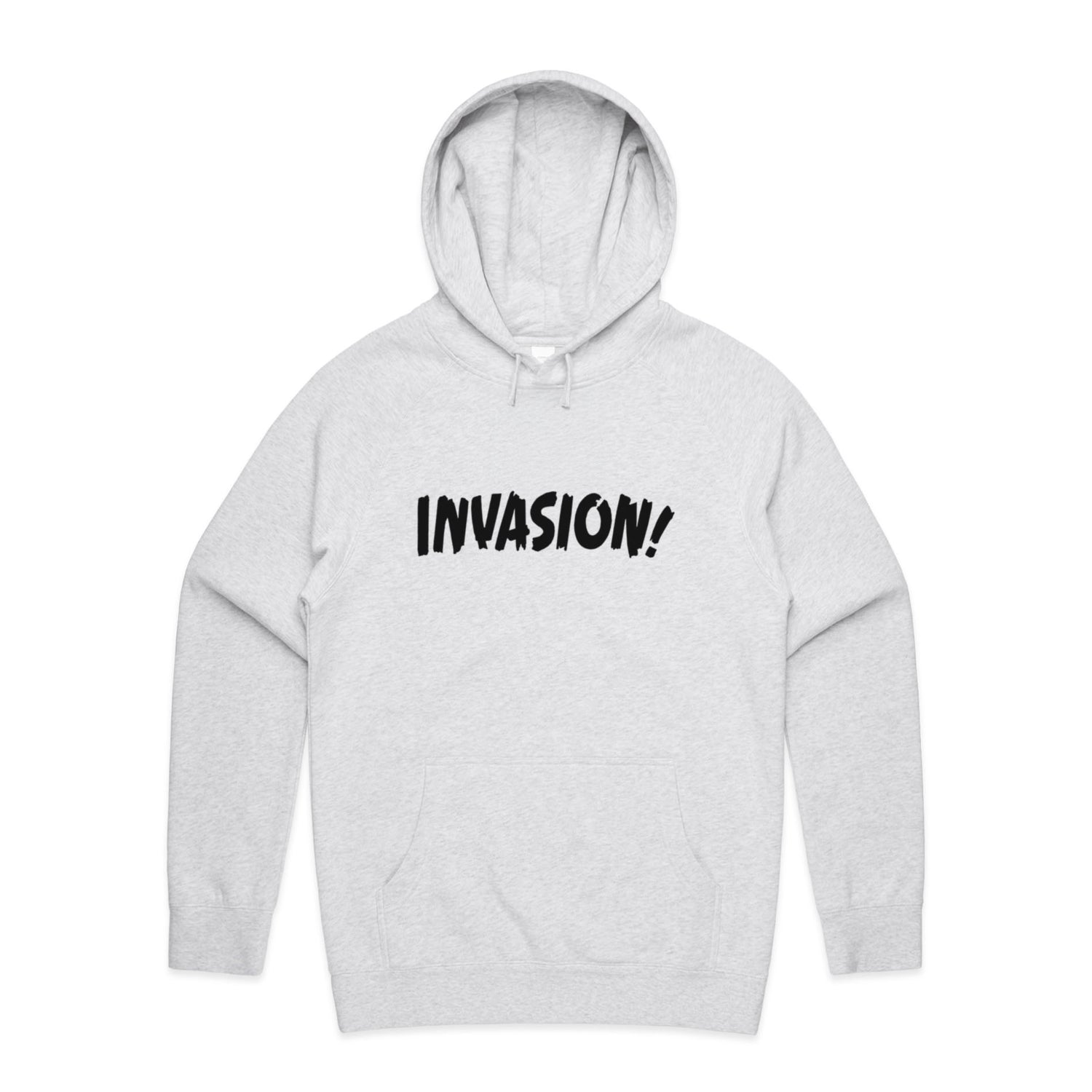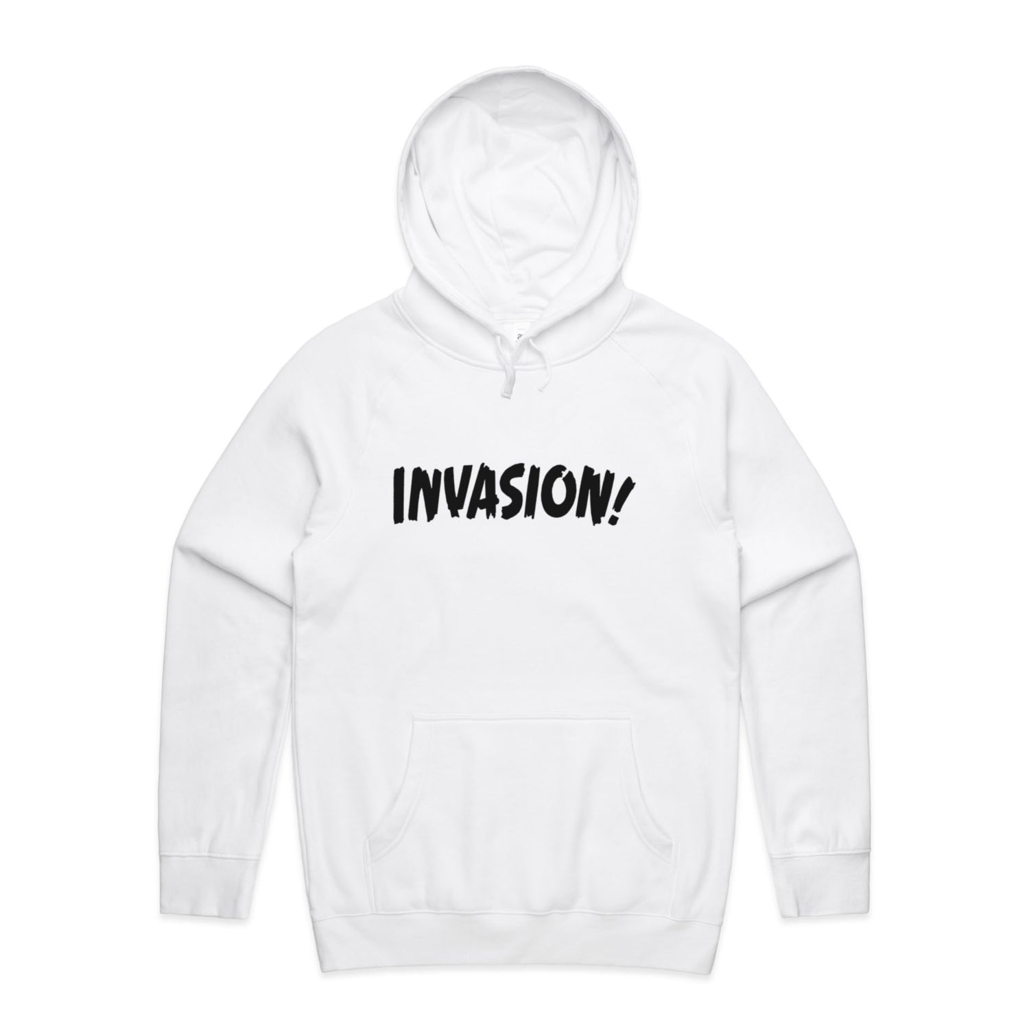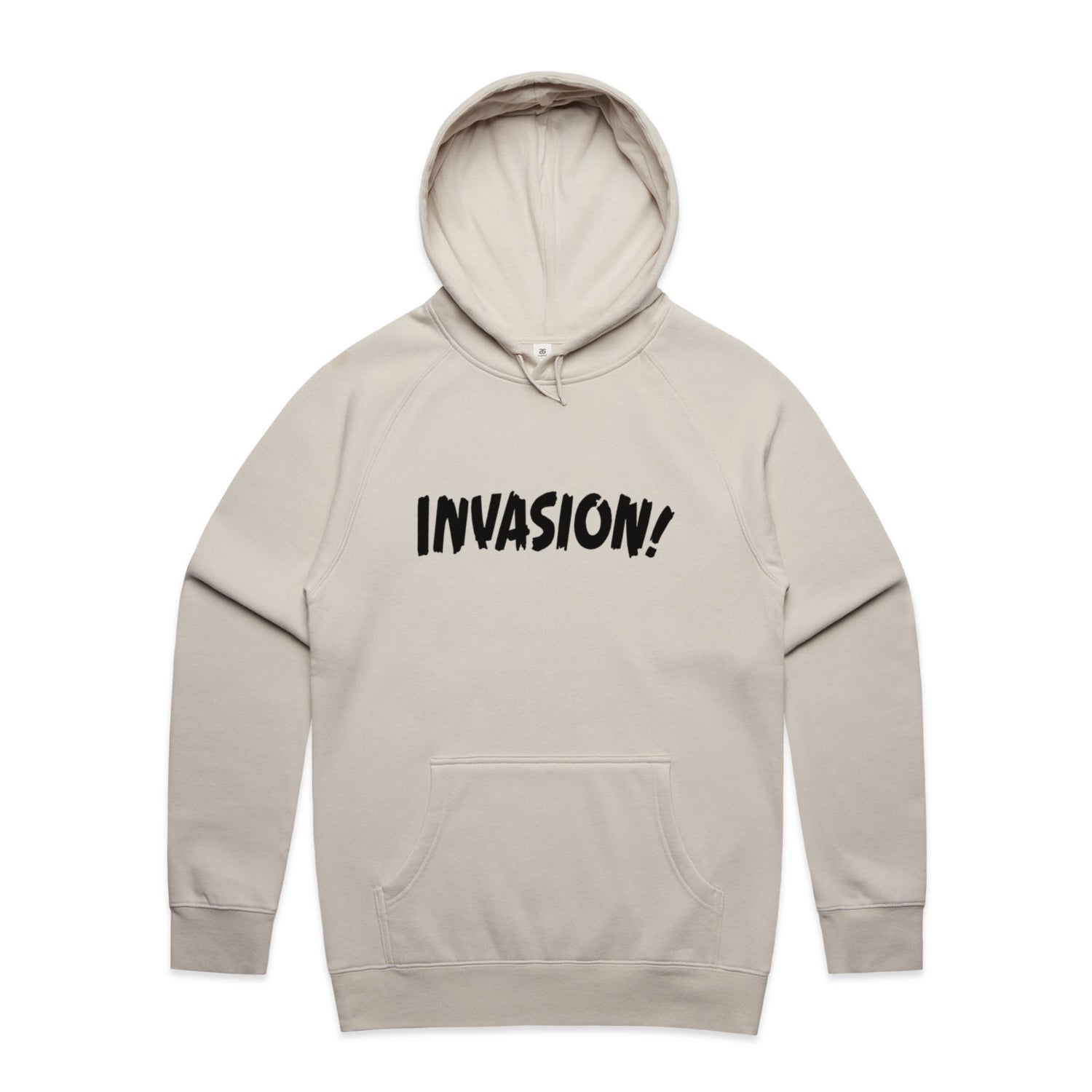 The Hoodies Invasion! – Men's Hooded Sweatshirt is a high-quality men's hooded sweatshirt, printed with black ink on the trusted AS Colour Supply Hood 5101. With a regular fit and mid-weight feel, it's crafted from a premium blend of 80% cotton and 20% polyester anti-pill fleece, making it a durable and comfortable staple for any wardrobe. The pullover design features raglan sleeves, a lined hood with tonal drawcord, ribbed sleeve cuffs, and a roomy kangaroo pocket — all designed to keep you warm while looking effortlessly sharp.