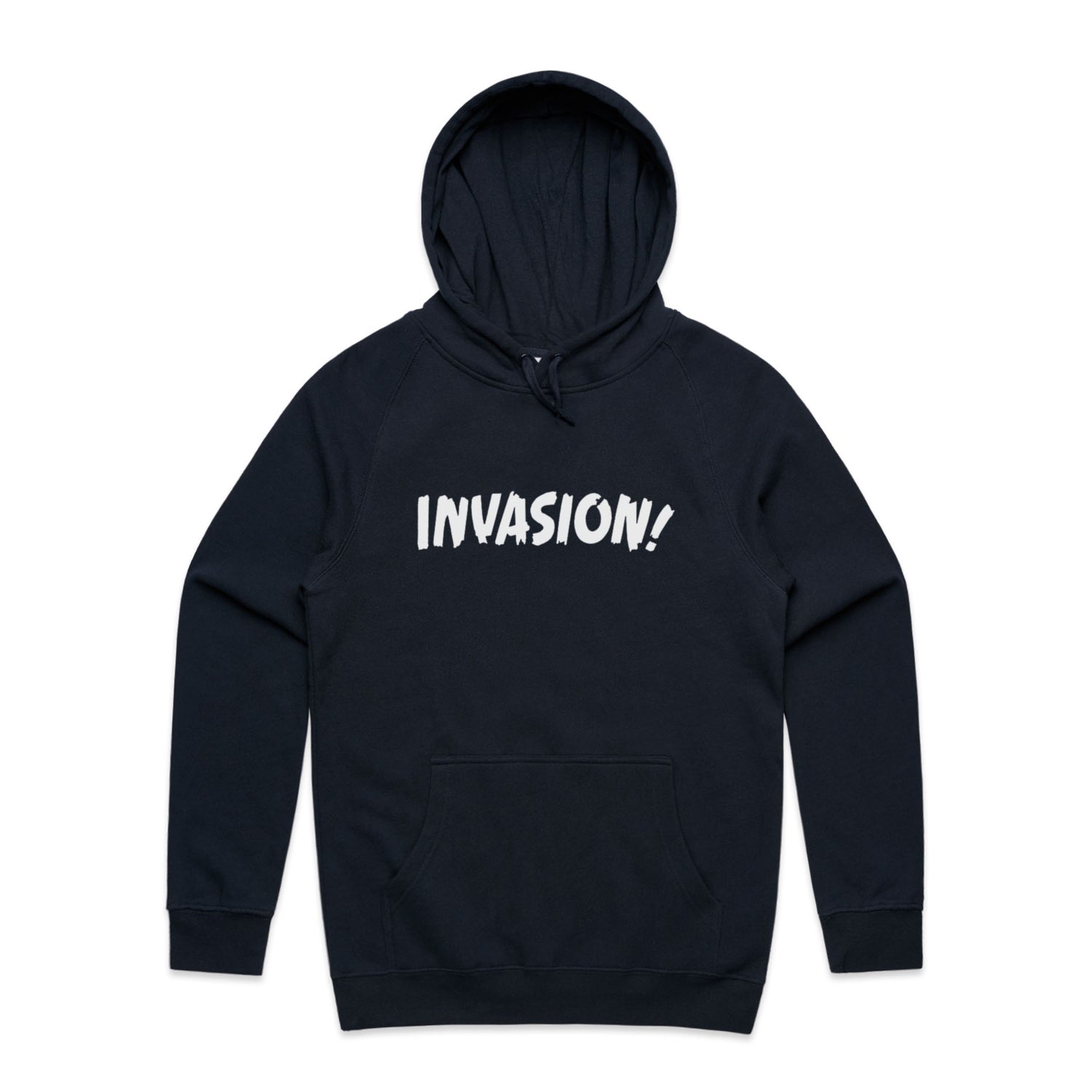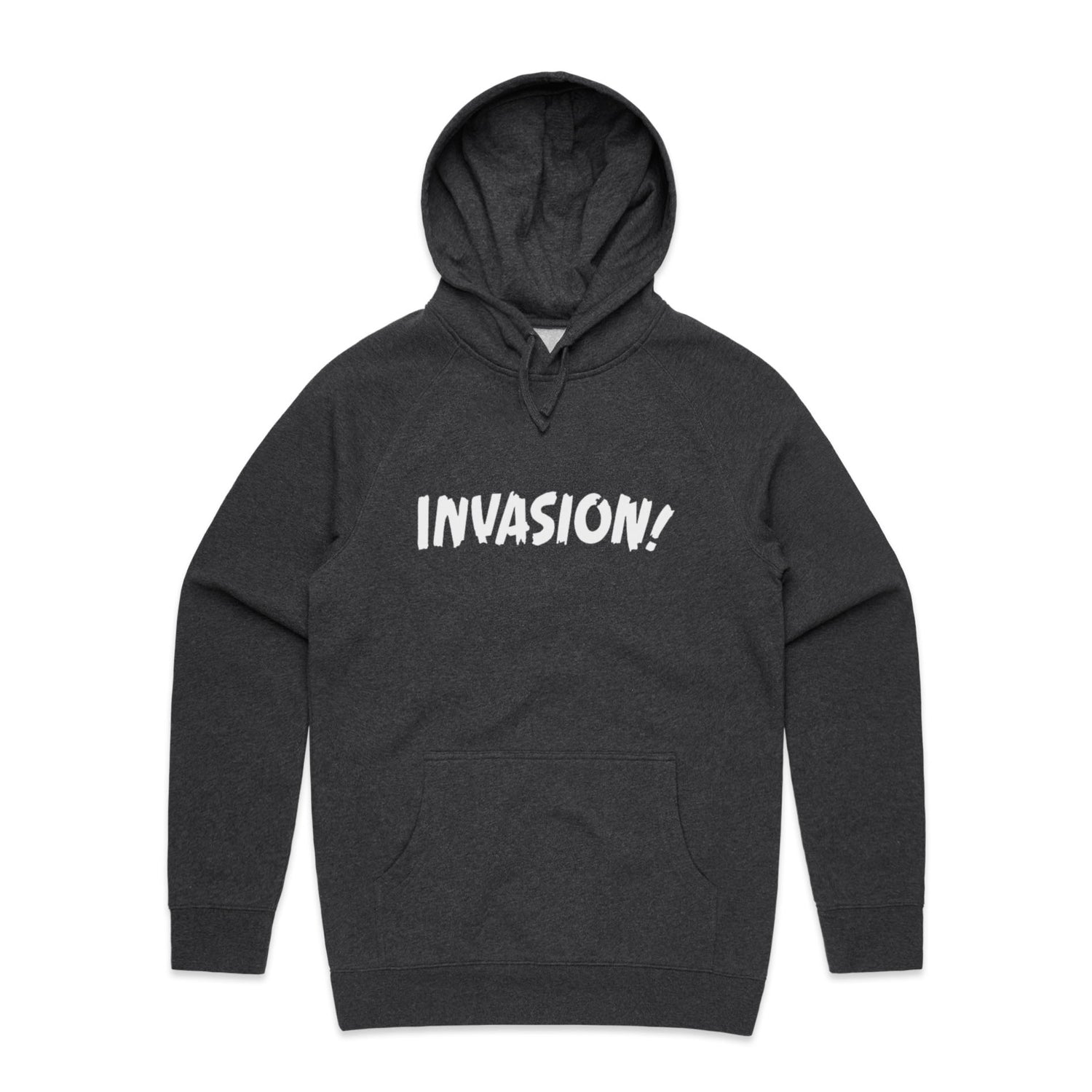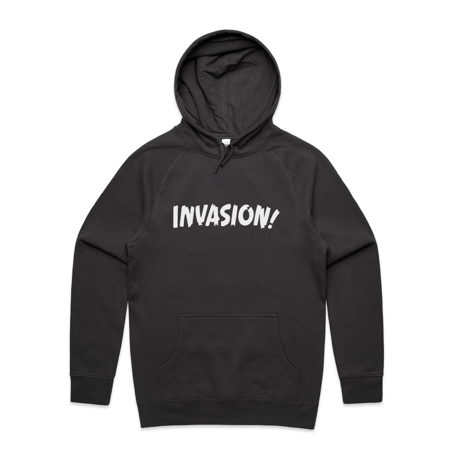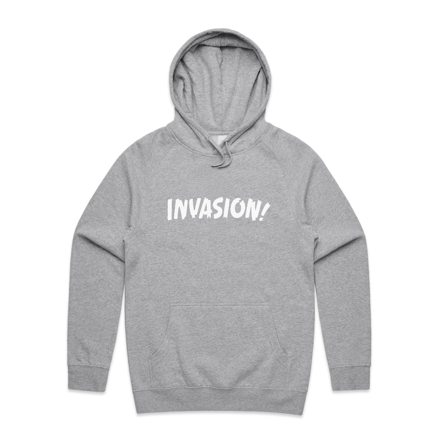 The Hoodies Invasion! – Men's Hooded Sweatshirt is a high-quality men's hooded sweatshirt, printed with white ink on the trusted AS Colour Supply Hood 5101. With a regular fit and mid-weight feel, it's crafted from a premium blend of 80% cotton and 20% polyester anti-pill fleece, making it a durable and comfortable staple for any wardrobe. The pullover design features raglan sleeves, a lined hood with tonal drawcord, ribbed sleeve cuffs, and a roomy kangaroo pocket — all designed to keep you warm while looking effortlessly sharp.