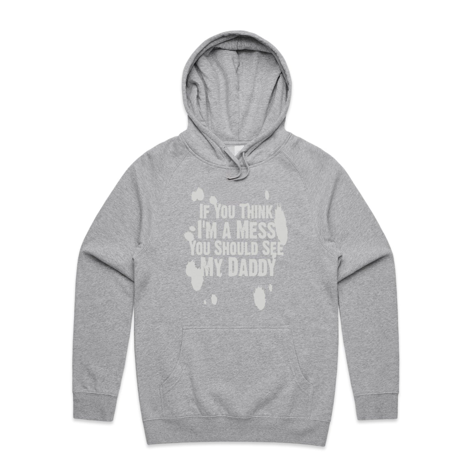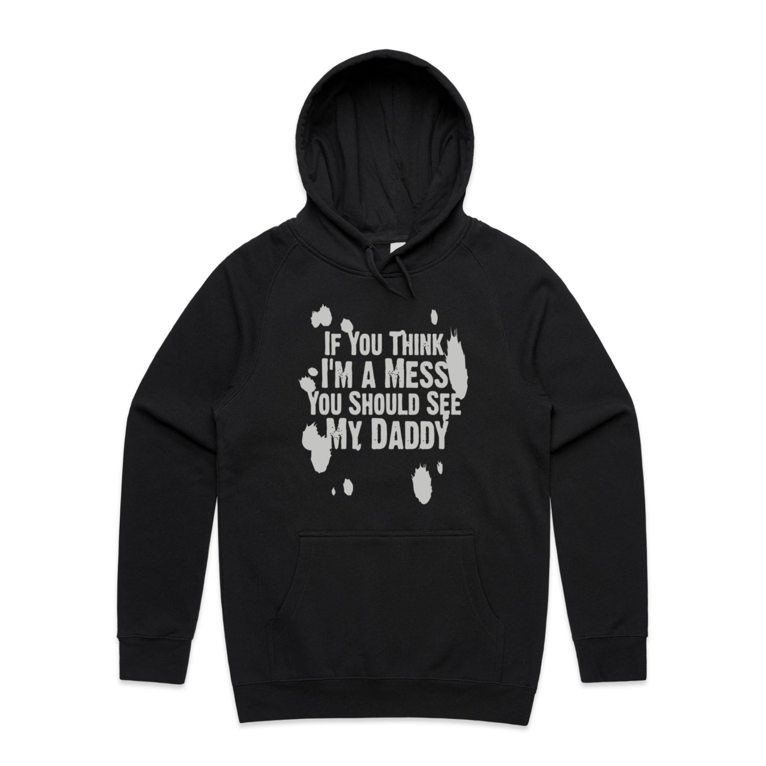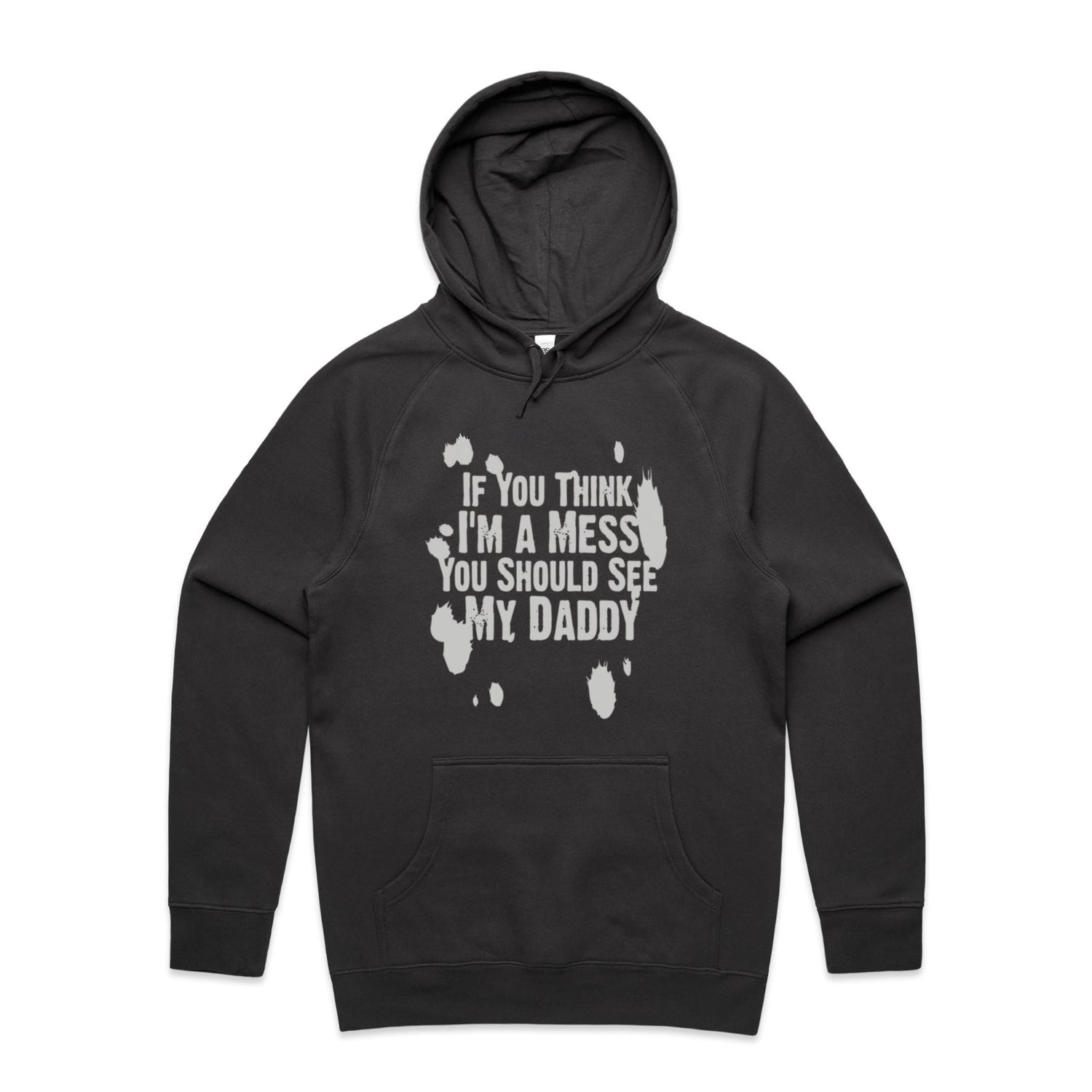 The Hoodies Kid, I'm a Mess – Men's Hooded Sweatshirt is a high-quality men's hooded sweatshirt, printed with light grey ink on the trusted AS Colour Supply Hood 5101. With a regular fit and mid-weight feel, it's crafted from a premium blend of 80% cotton and 20% polyester anti-pill fleece, making it a durable and comfortable staple for any wardrobe. The pullover design features raglan sleeves, a lined hood with tonal drawcord, ribbed sleeve cuffs, and a roomy kangaroo pocket — all designed to keep you warm while looking effortlessly sharp.