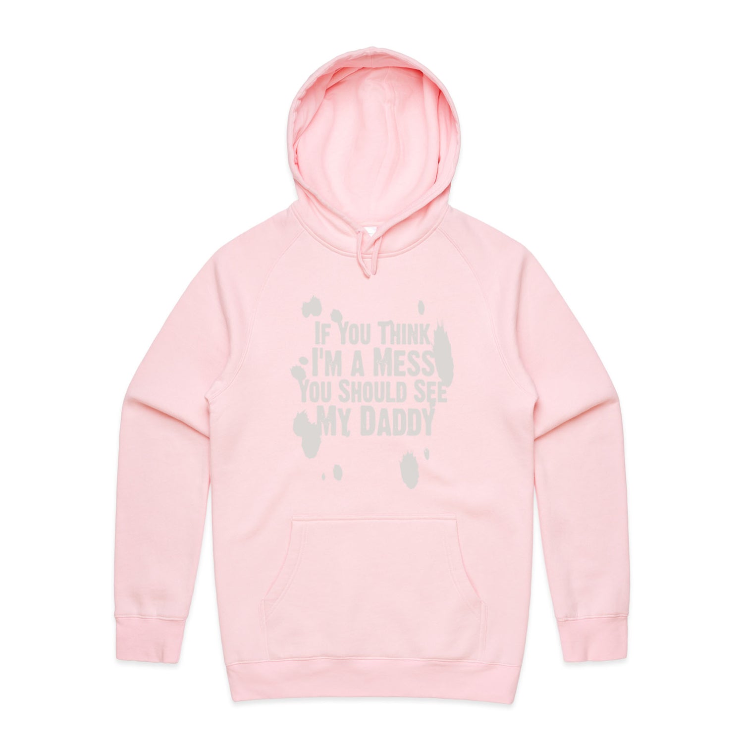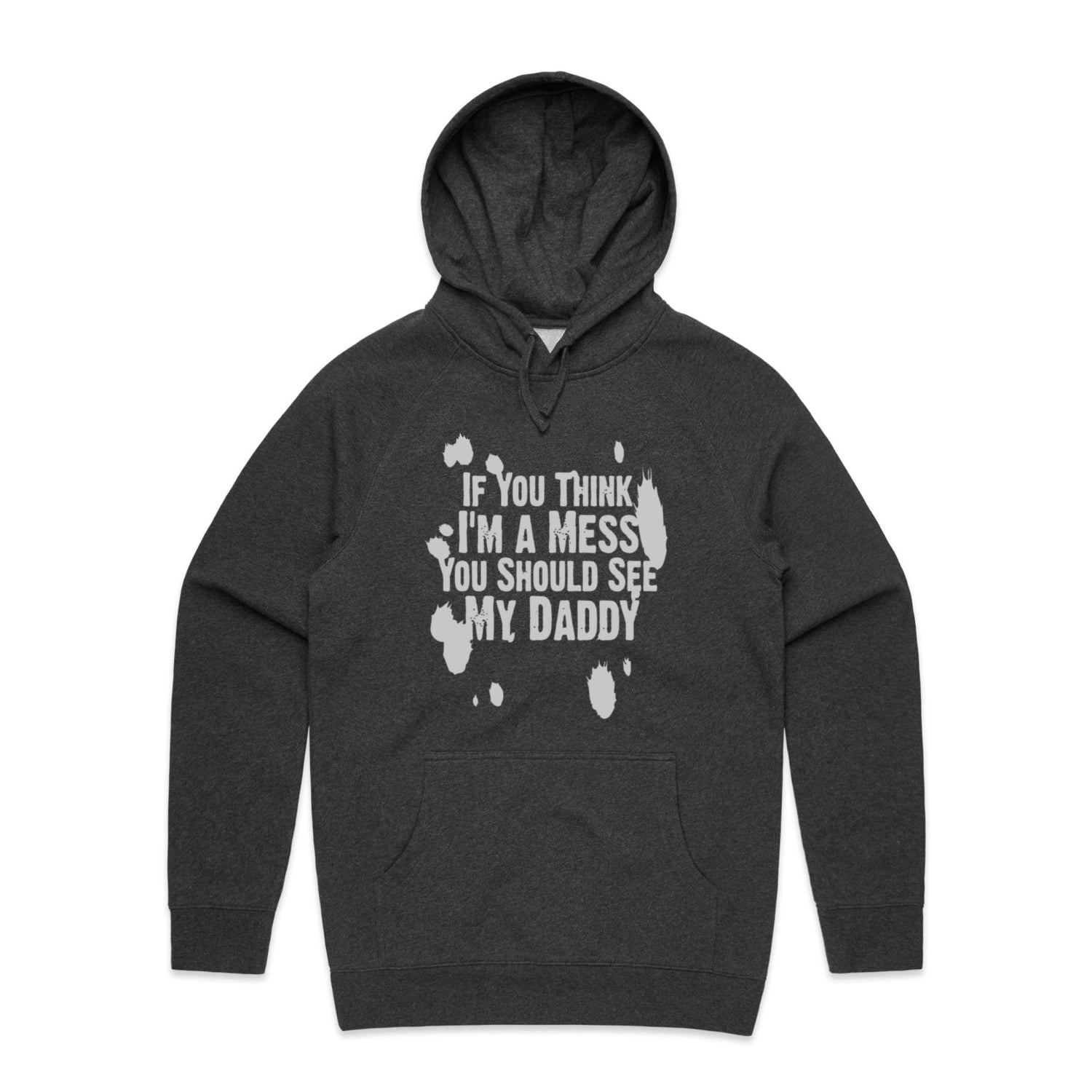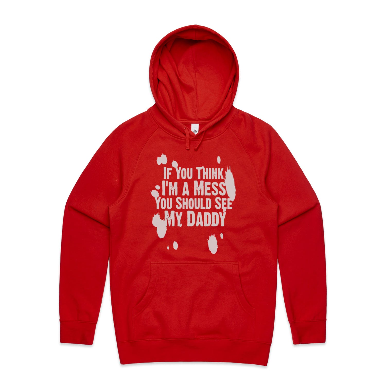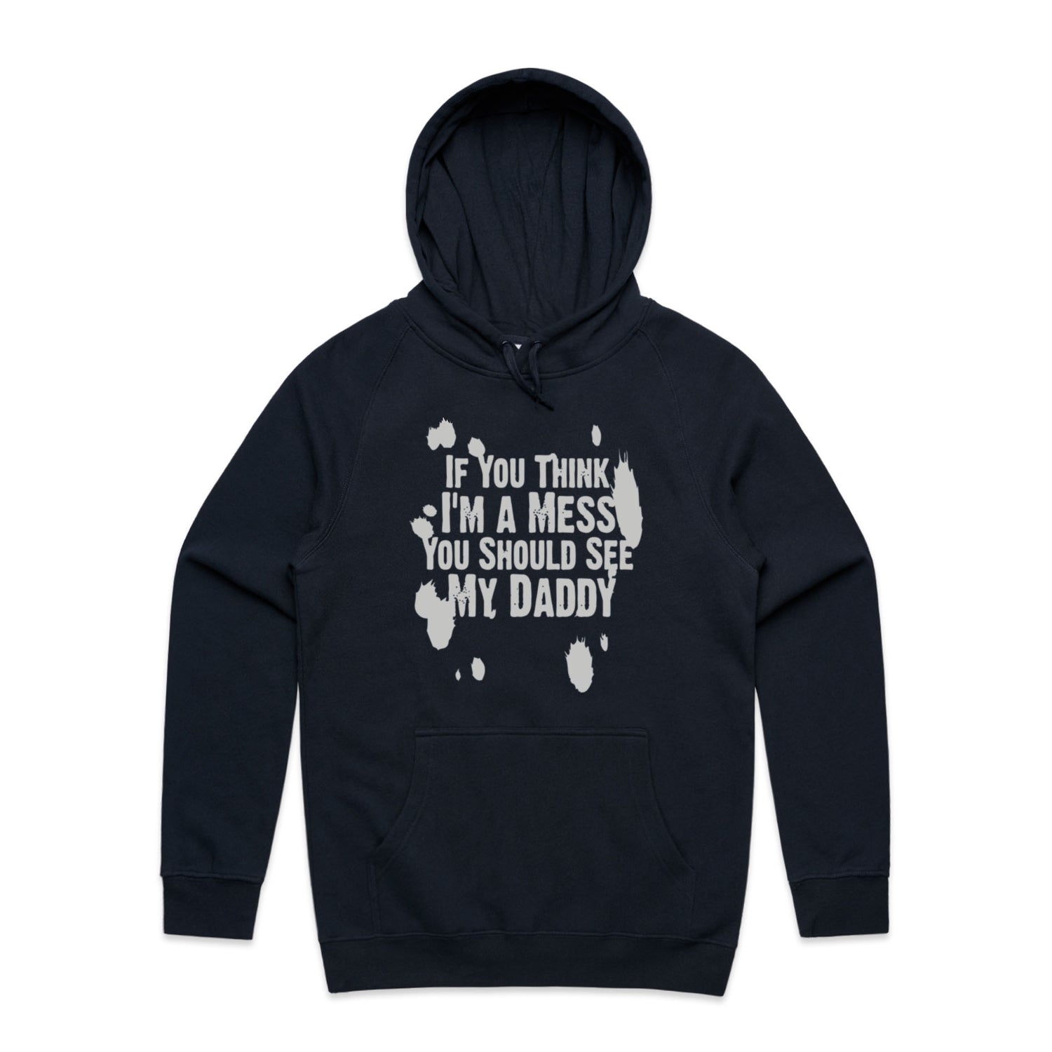 The Hoodies Kid, I'm a Mess – Men's Hooded Sweatshirt is a high-quality men's hooded sweatshirt, printed with light grey ink on the trusted AS Colour Supply Hood 5101. With a regular fit and mid-weight feel, it's crafted from a premium blend of 80% cotton and 20% polyester anti-pill fleece, making it a durable and comfortable staple for any wardrobe. The pullover design features raglan sleeves, a lined hood with tonal drawcord, ribbed sleeve cuffs, and a roomy kangaroo pocket — all designed to keep you warm while looking effortlessly sharp.