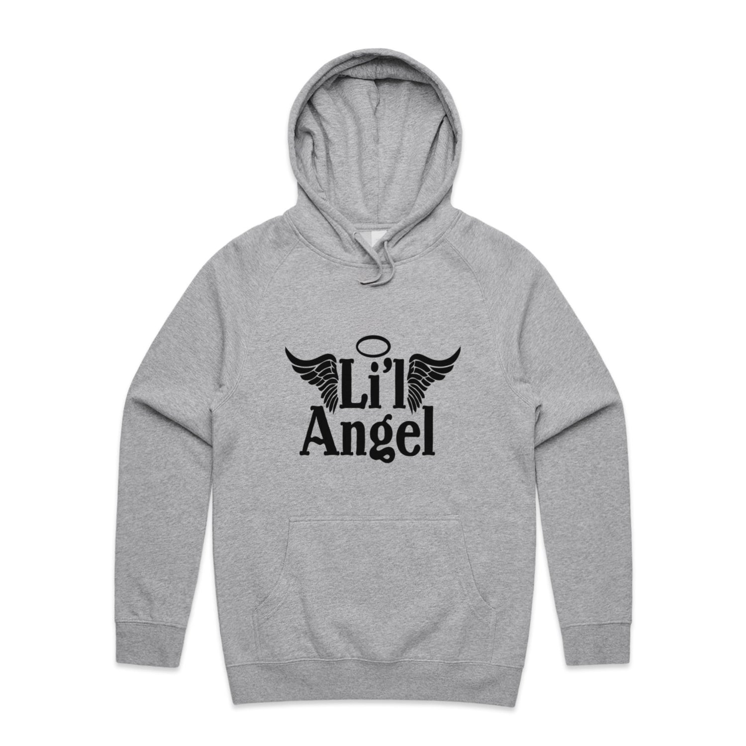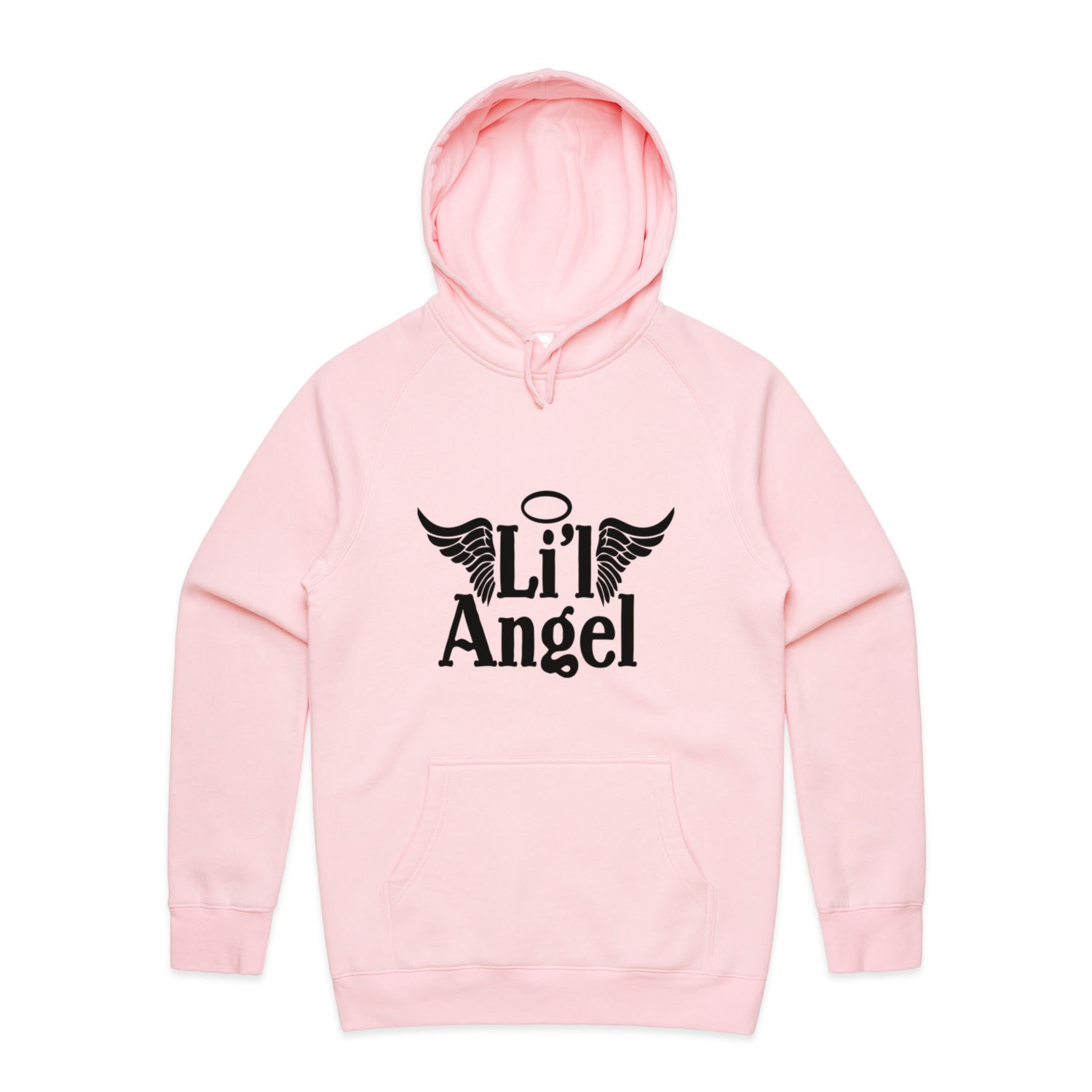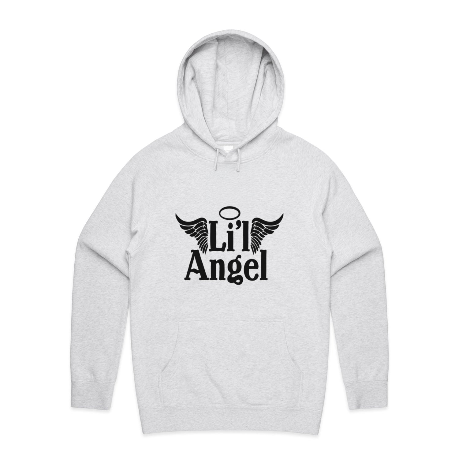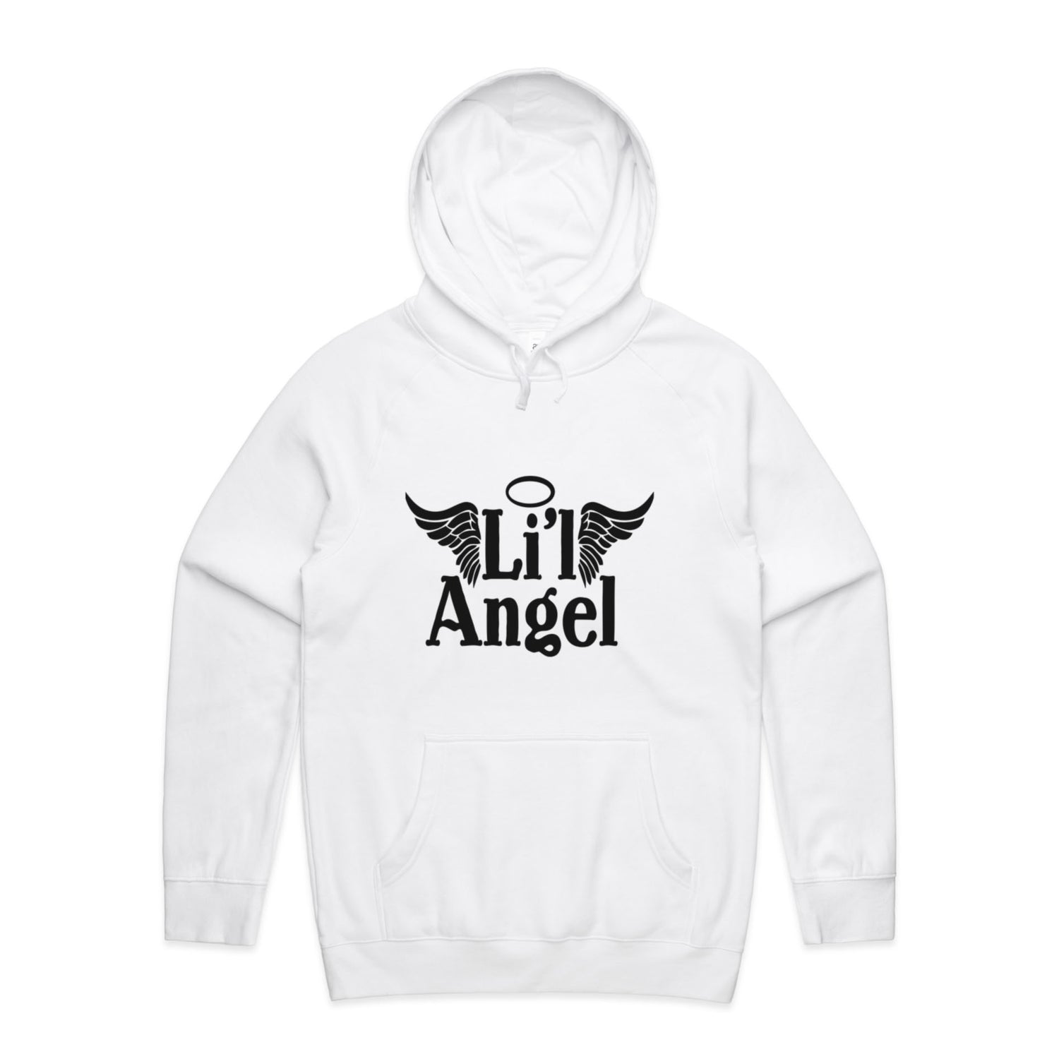 The Hoodies Kid Lil' Angel – Men's Hooded Sweatshirt is a high-quality men's hooded sweatshirt, printed with black ink on the trusted AS Colour Supply Hood 5101. With a regular fit and mid-weight feel, it's crafted from a premium blend of 80% cotton and 20% polyester anti-pill fleece, making it a durable and comfortable staple for any wardrobe. The pullover design features raglan sleeves, a lined hood with tonal drawcord, ribbed sleeve cuffs, and a roomy kangaroo pocket — all designed to keep you warm while looking effortlessly sharp.