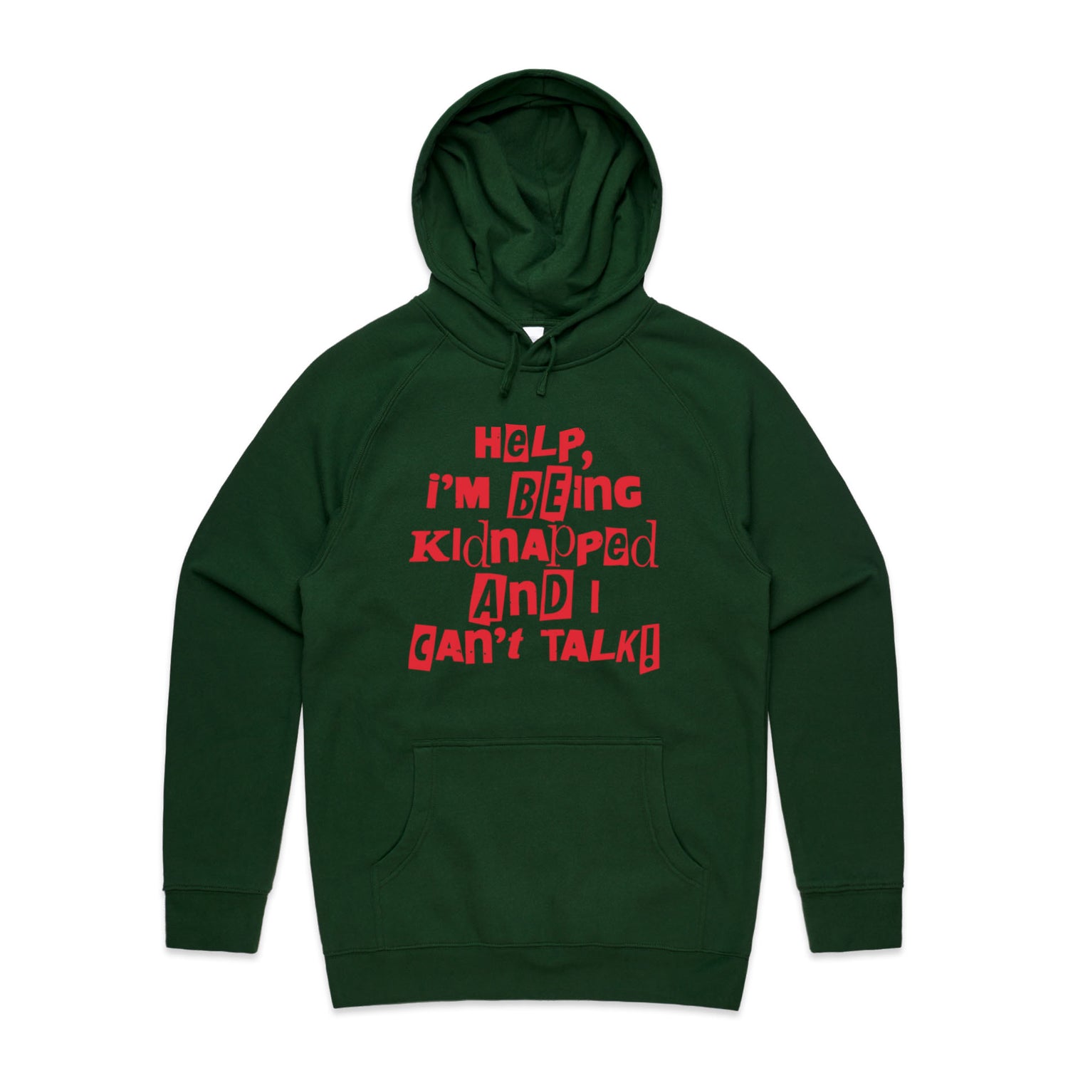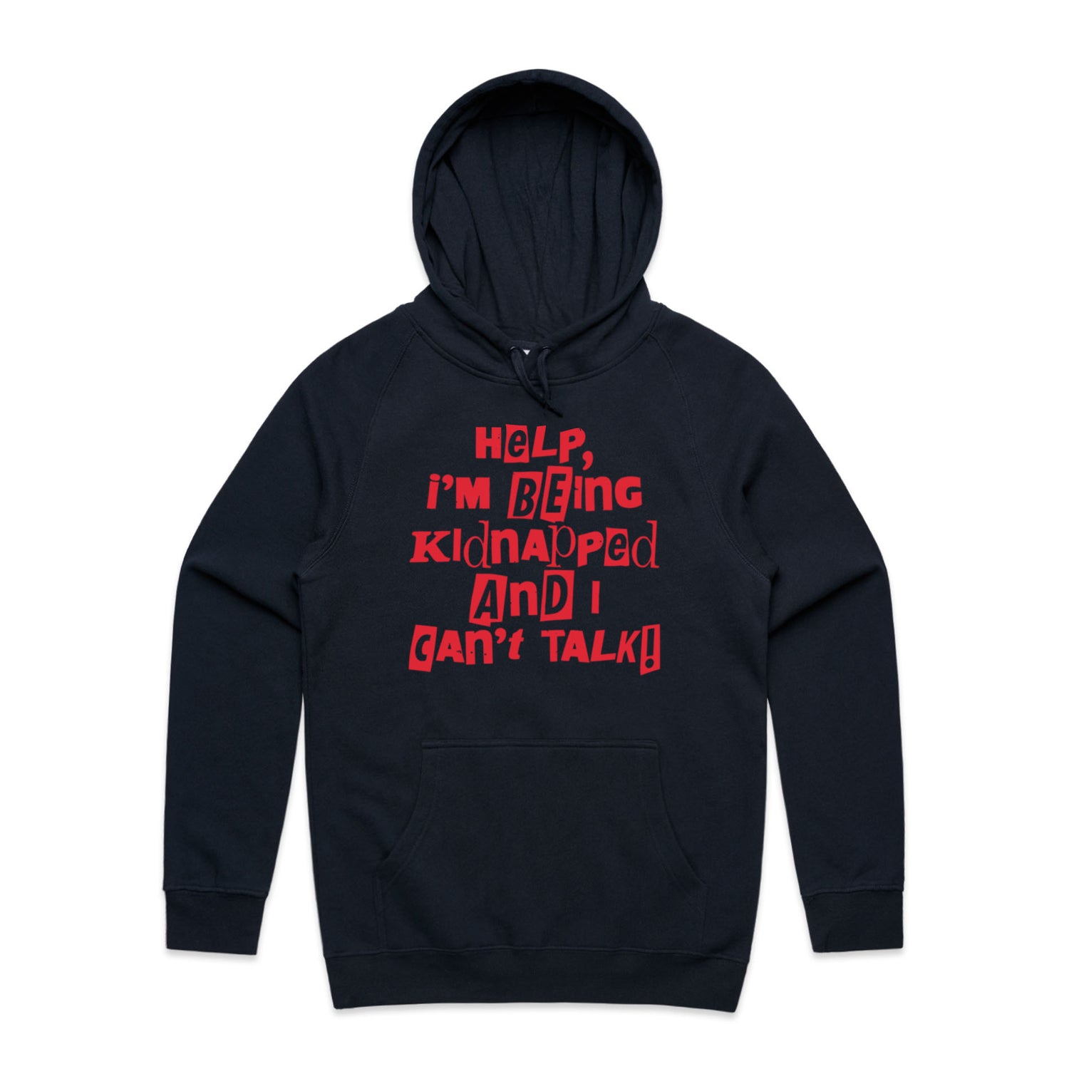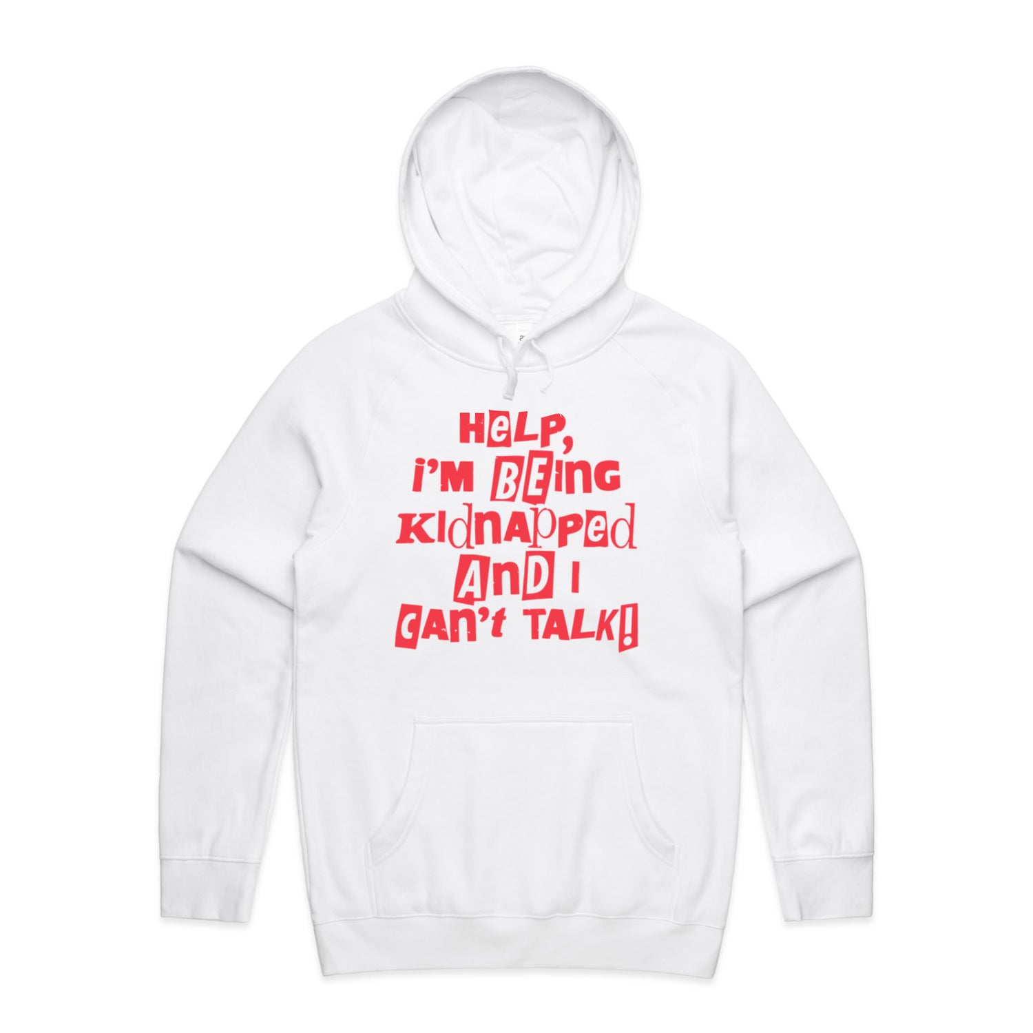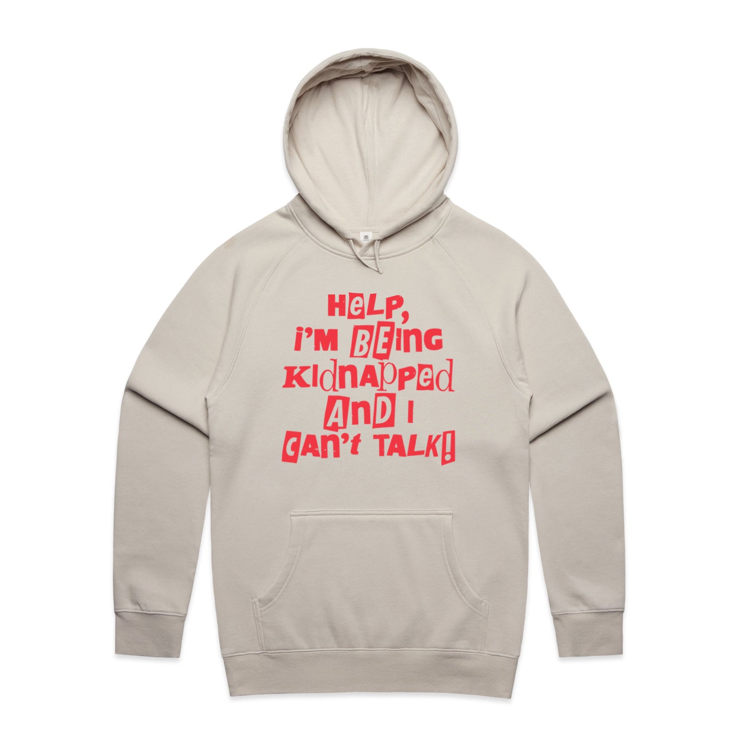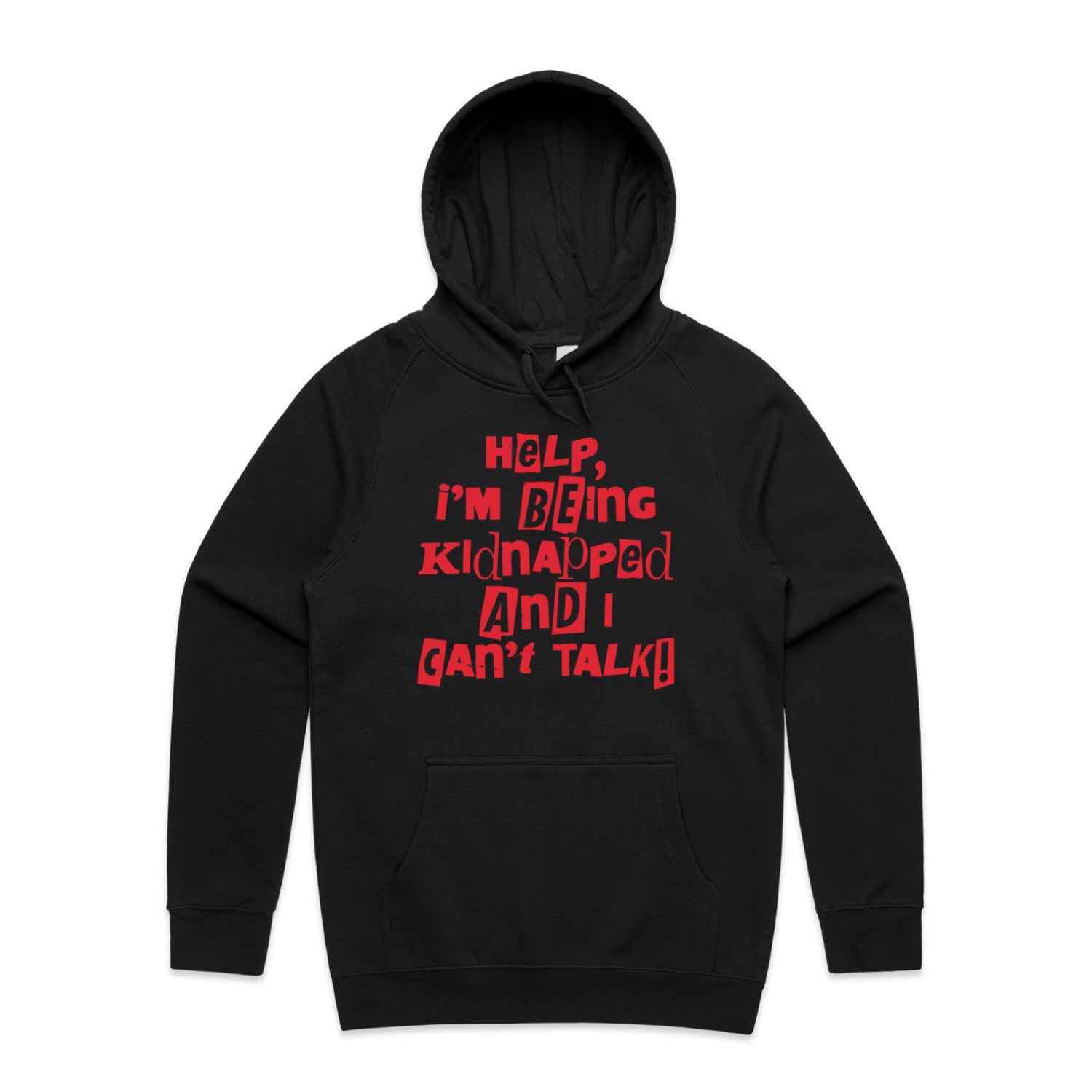 The Hoodies Kidnapped – Men's Hooded Sweatshirt is a high-quality men's hooded sweatshirt, printed with red ink on the trusted AS Colour Supply Hood 5101. With a regular fit and mid-weight feel, it's crafted from a premium blend of 80% cotton and 20% polyester anti-pill fleece, making it a durable and comfortable staple for any wardrobe. The pullover design features raglan sleeves, a lined hood with tonal drawcord, ribbed sleeve cuffs, and a roomy kangaroo pocket — all designed to keep you warm while looking effortlessly sharp.