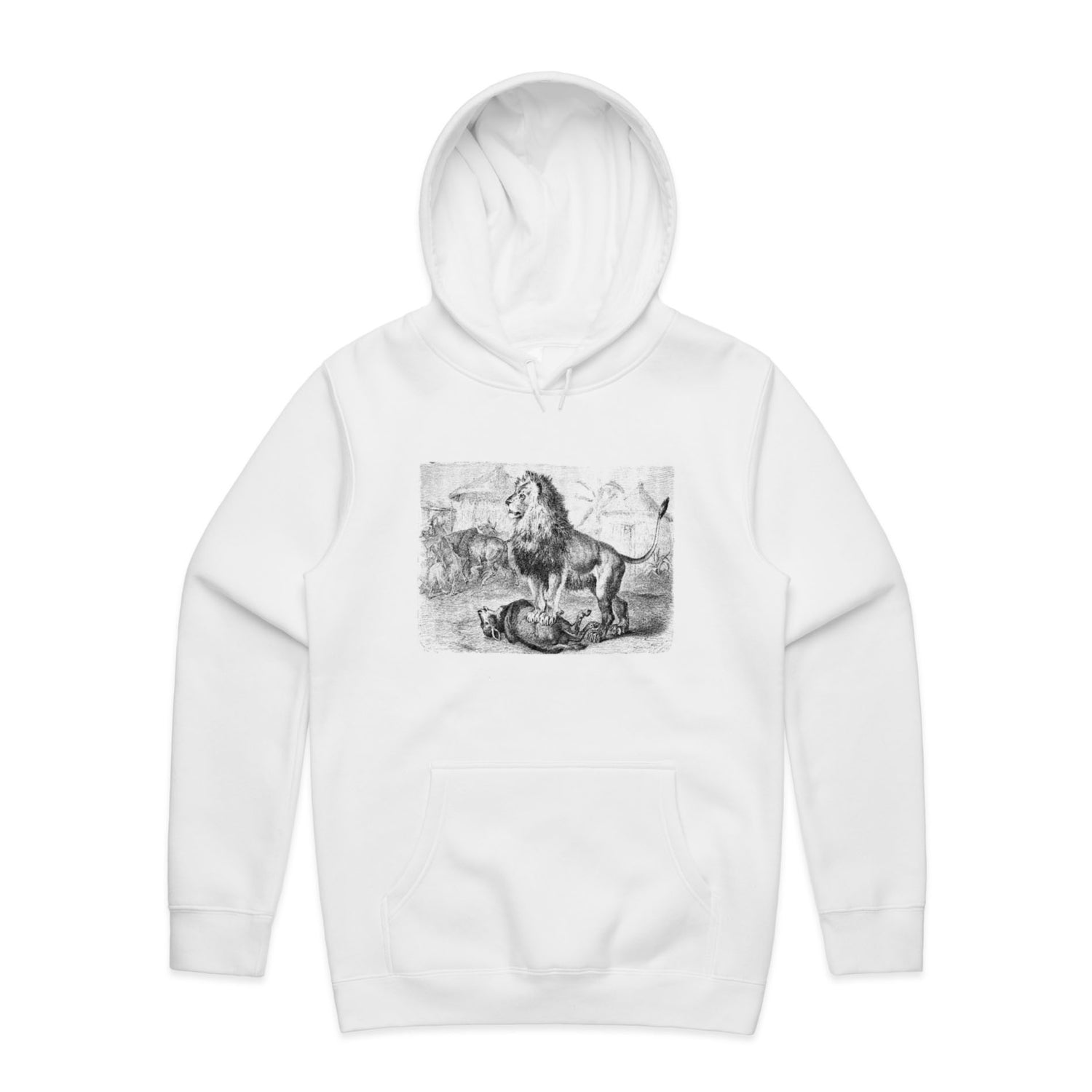 Roar into style with TheHoodie's Lion with Prey - Unisex Hooded Sweatshirt, where fierceness meets fashion! This hoodie comes in sleek black and is crafted from a wicked blend of cotton and recycled polyester that'll keep you cosy while doing your bit for the planet. Perfect for lounging around or hitting the streets, it features a pullover hood, kangaroo pocket for your snacks, and a lined hood for maximum comfort.