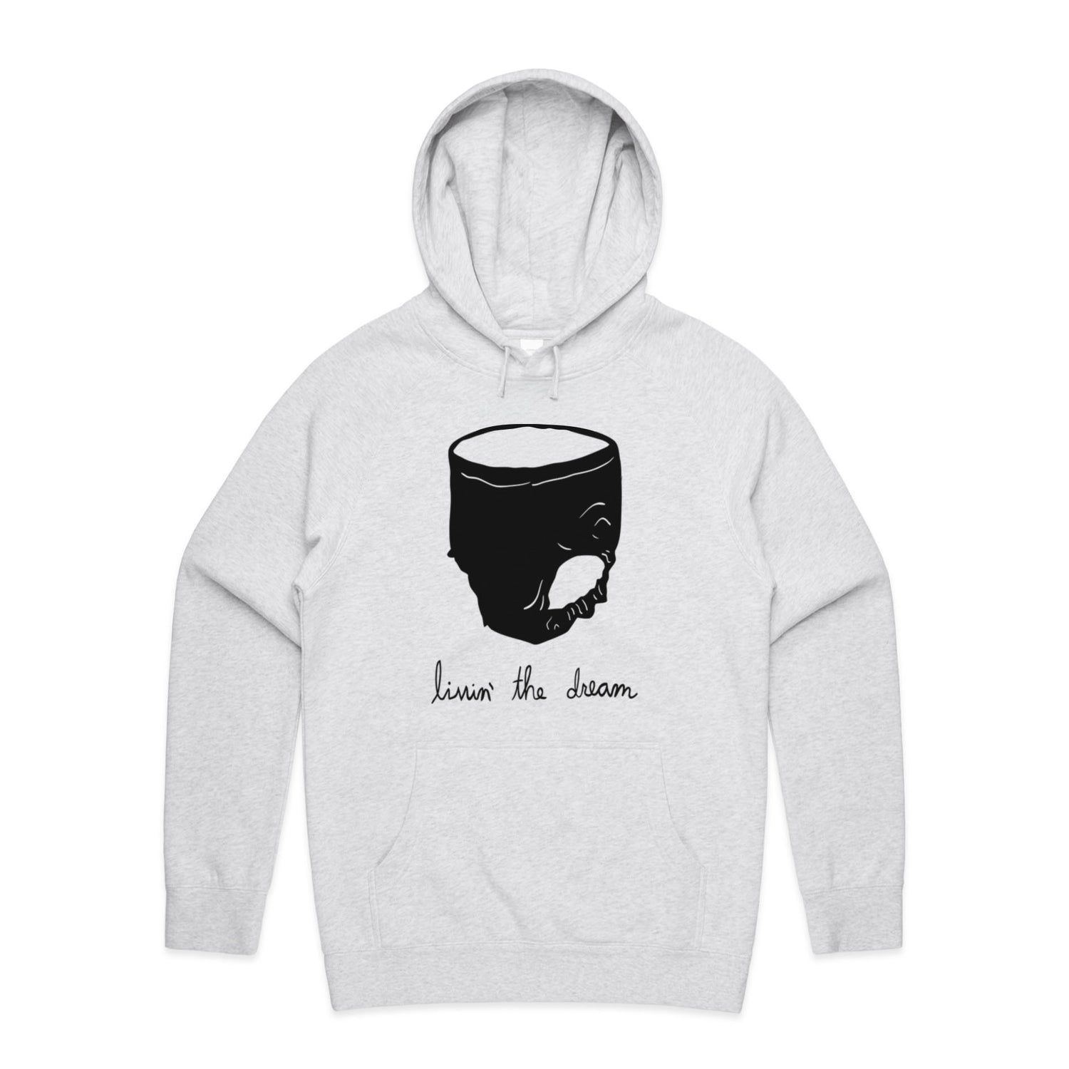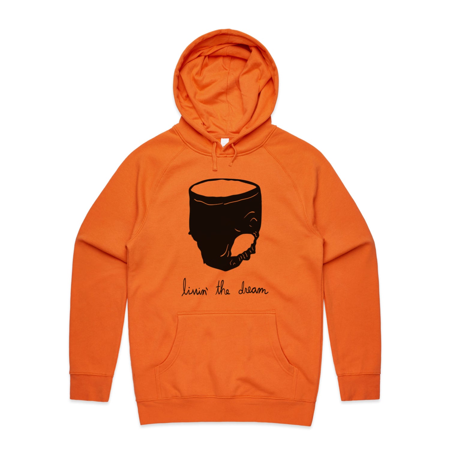 The Hoodies Livin' the Dream – Men's Hooded Sweatshirt is a high-quality men's hooded sweatshirt, printed with black ink on the trusted AS Colour Supply Hood 5101. With a regular fit and mid-weight feel, it's crafted from a premium blend of 80% cotton and 20% polyester anti-pill fleece, making it a durable and comfortable staple for any wardrobe. The pullover design features raglan sleeves, a lined hood with tonal drawcord, ribbed sleeve cuffs, and a roomy kangaroo pocket — all designed to keep you warm while looking effortlessly sharp.