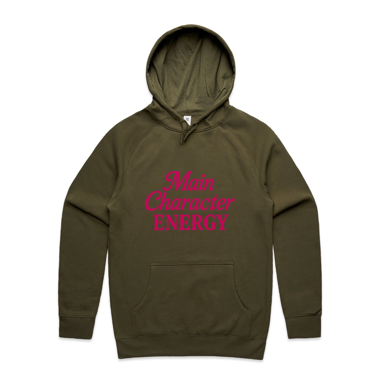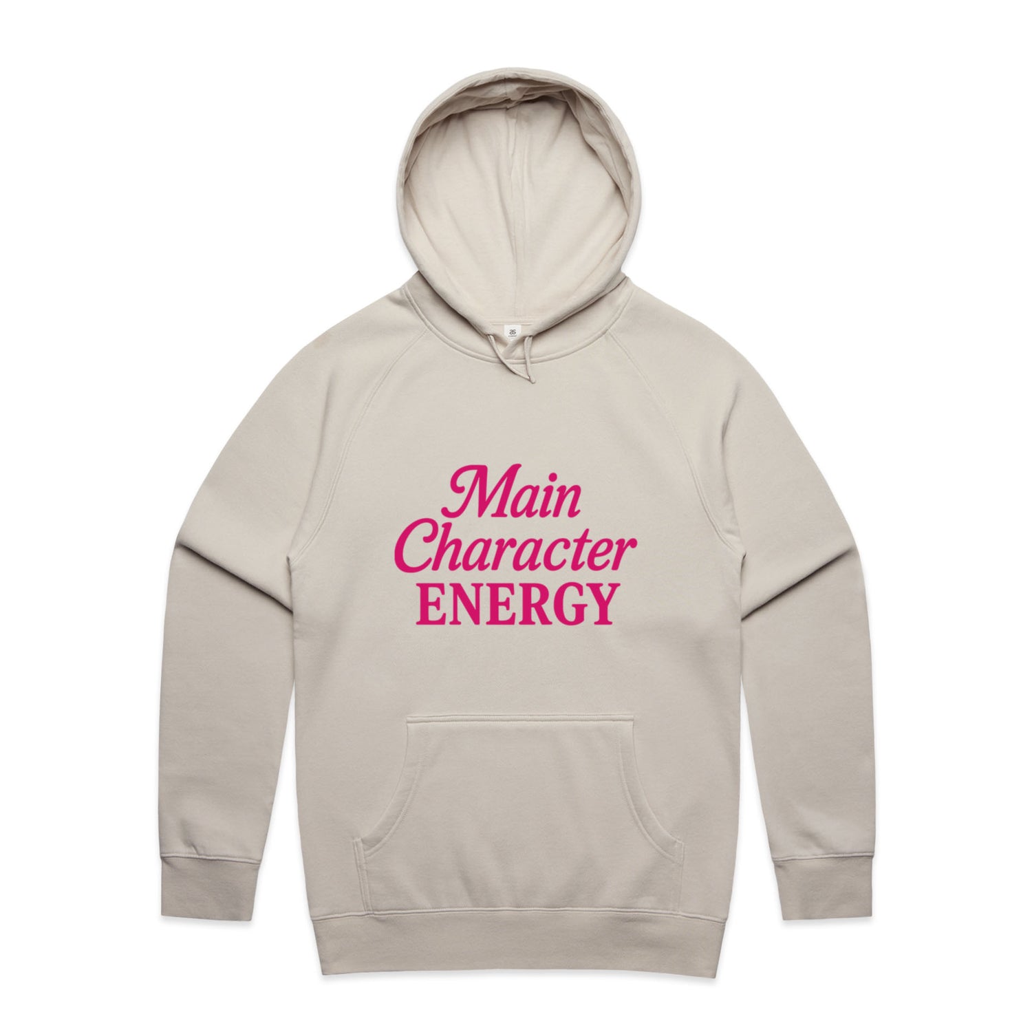 The Hoodies Main Character Energy – Men's Hooded Sweatshirt is a high-quality men's hooded sweatshirt, printed with pink ink on the trusted AS Colour Supply Hood 5101. With a regular fit and mid-weight feel, it's crafted from a premium blend of 80% cotton and 20% polyester anti-pill fleece, making it a durable and comfortable staple for any wardrobe. The pullover design features raglan sleeves, a lined hood with tonal drawcord, ribbed sleeve cuffs, and a roomy kangaroo pocket — all designed to keep you warm while looking effortlessly sharp.