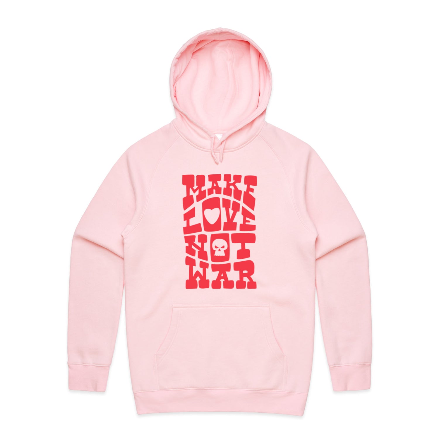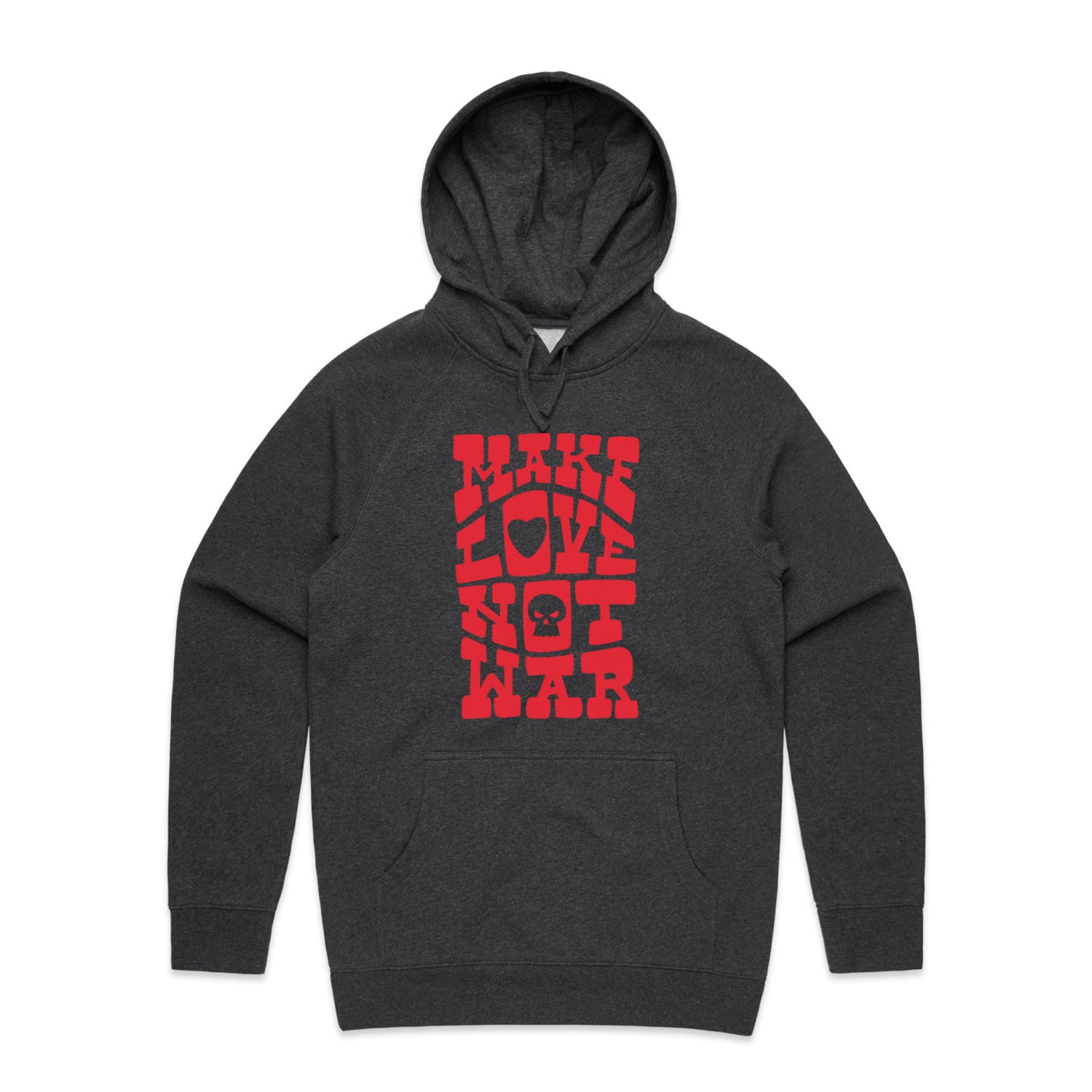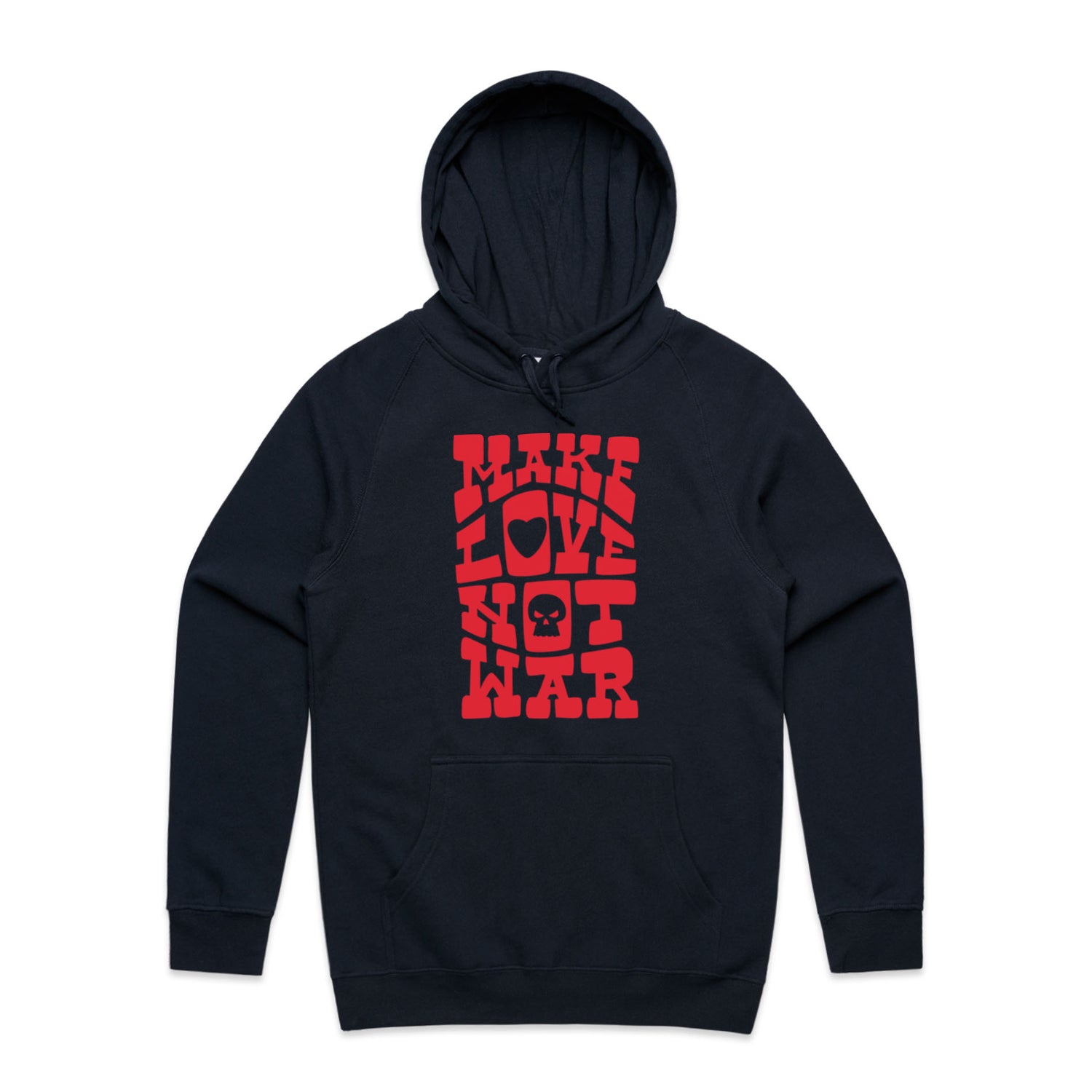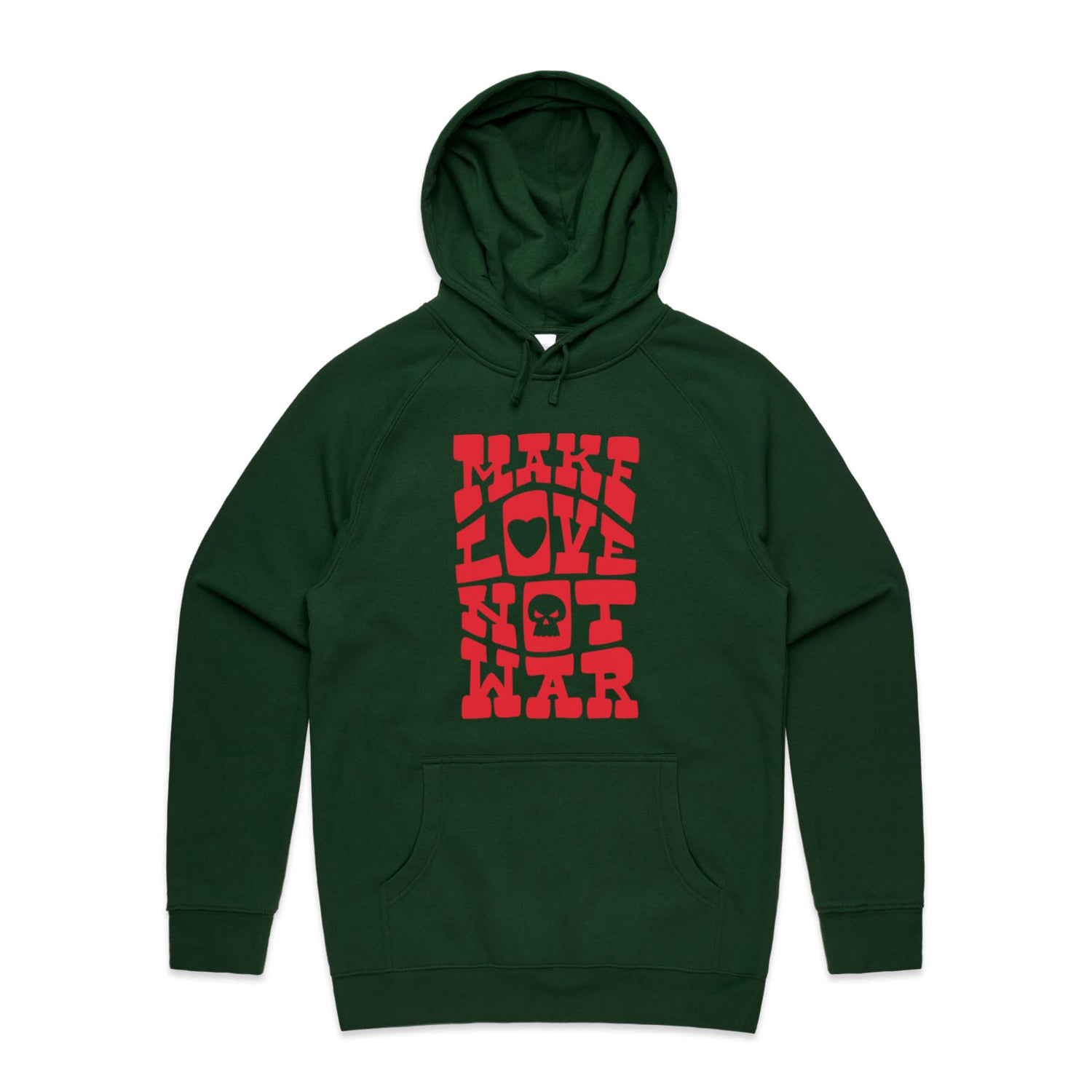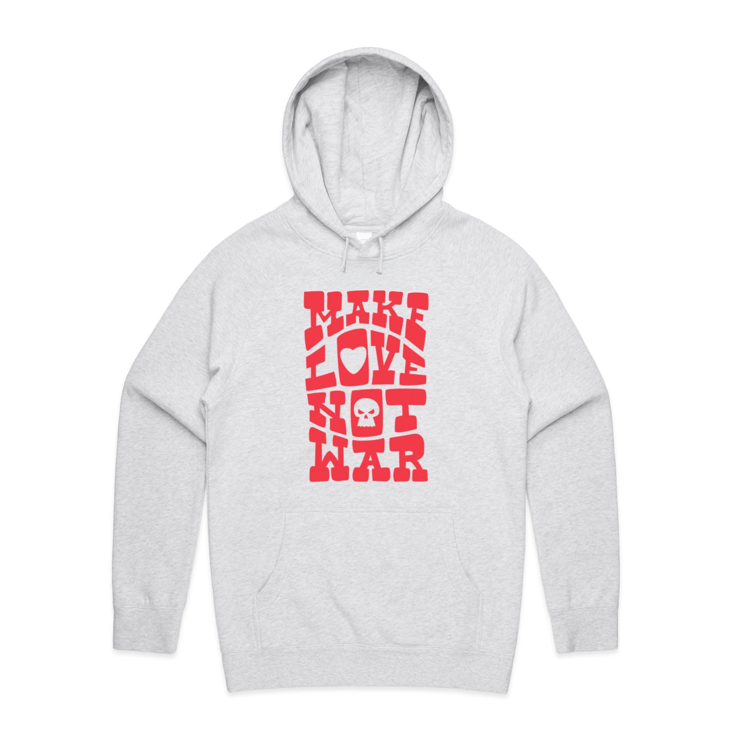 The Hoodies Make Love Not War – Men's Hooded Sweatshirt is a high-quality men's hooded sweatshirt, printed with red ink on the trusted AS Colour Supply Hood 5101. With a regular fit and mid-weight feel, it's crafted from a premium blend of 80% cotton and 20% polyester anti-pill fleece, making it a durable and comfortable staple for any wardrobe. The pullover design features raglan sleeves, a lined hood with tonal drawcord, ribbed sleeve cuffs, and a roomy kangaroo pocket — all designed to keep you warm while looking effortlessly sharp.