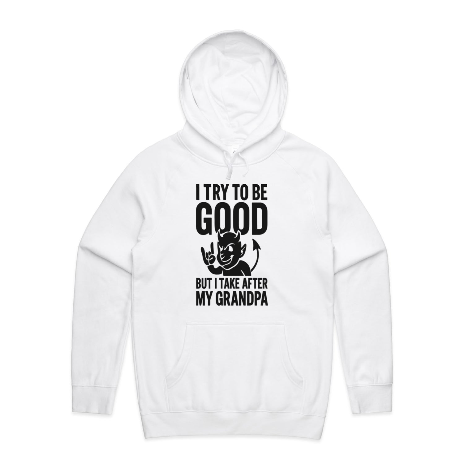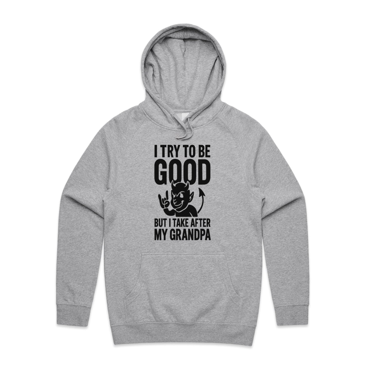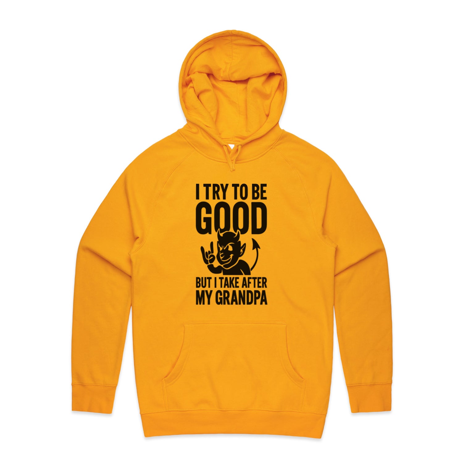 Mischievous Devil and Bold Words – Men's Hooded Sweatshirt