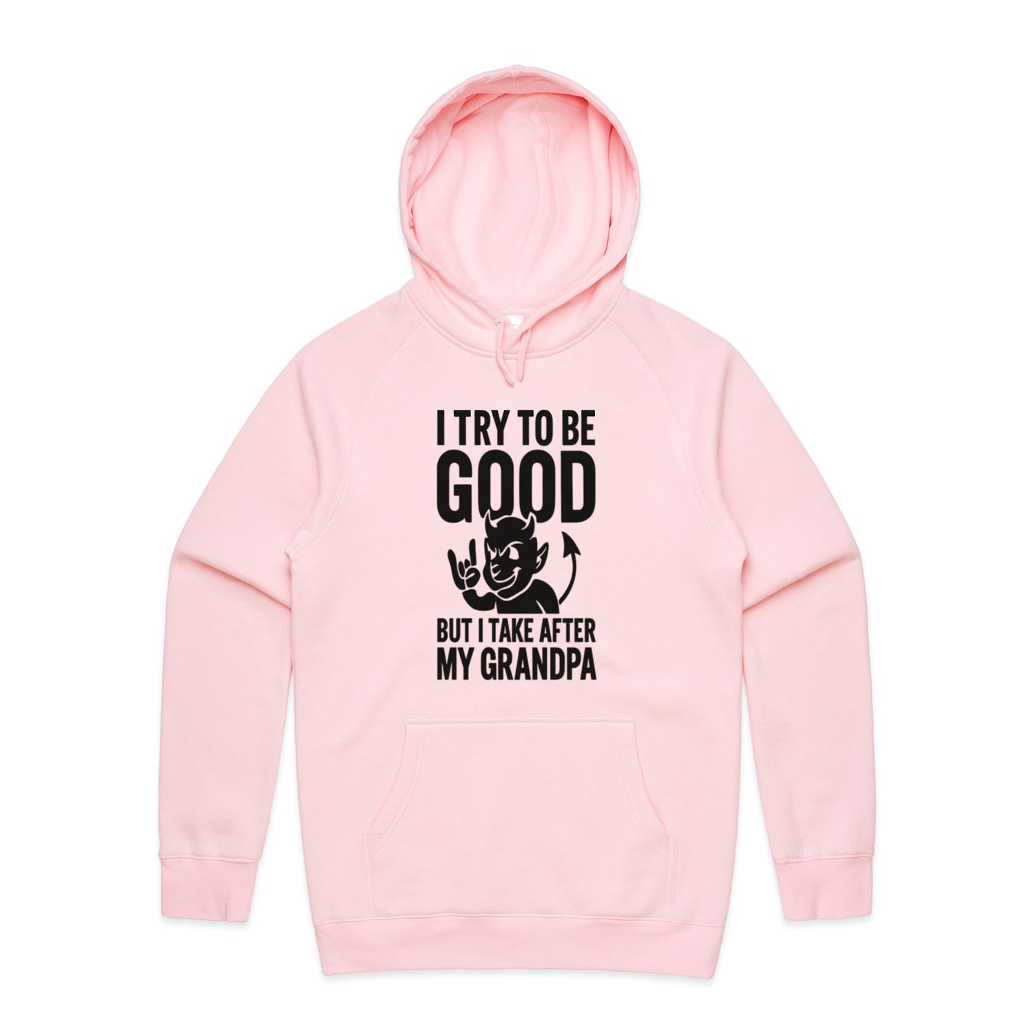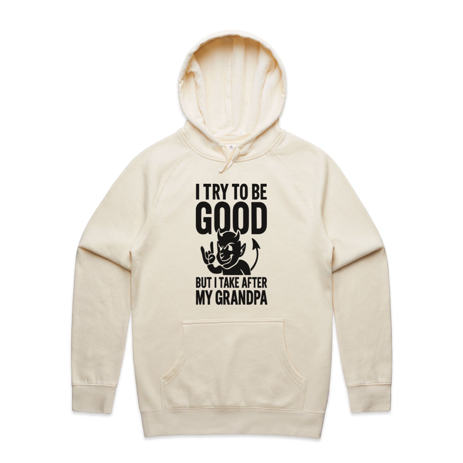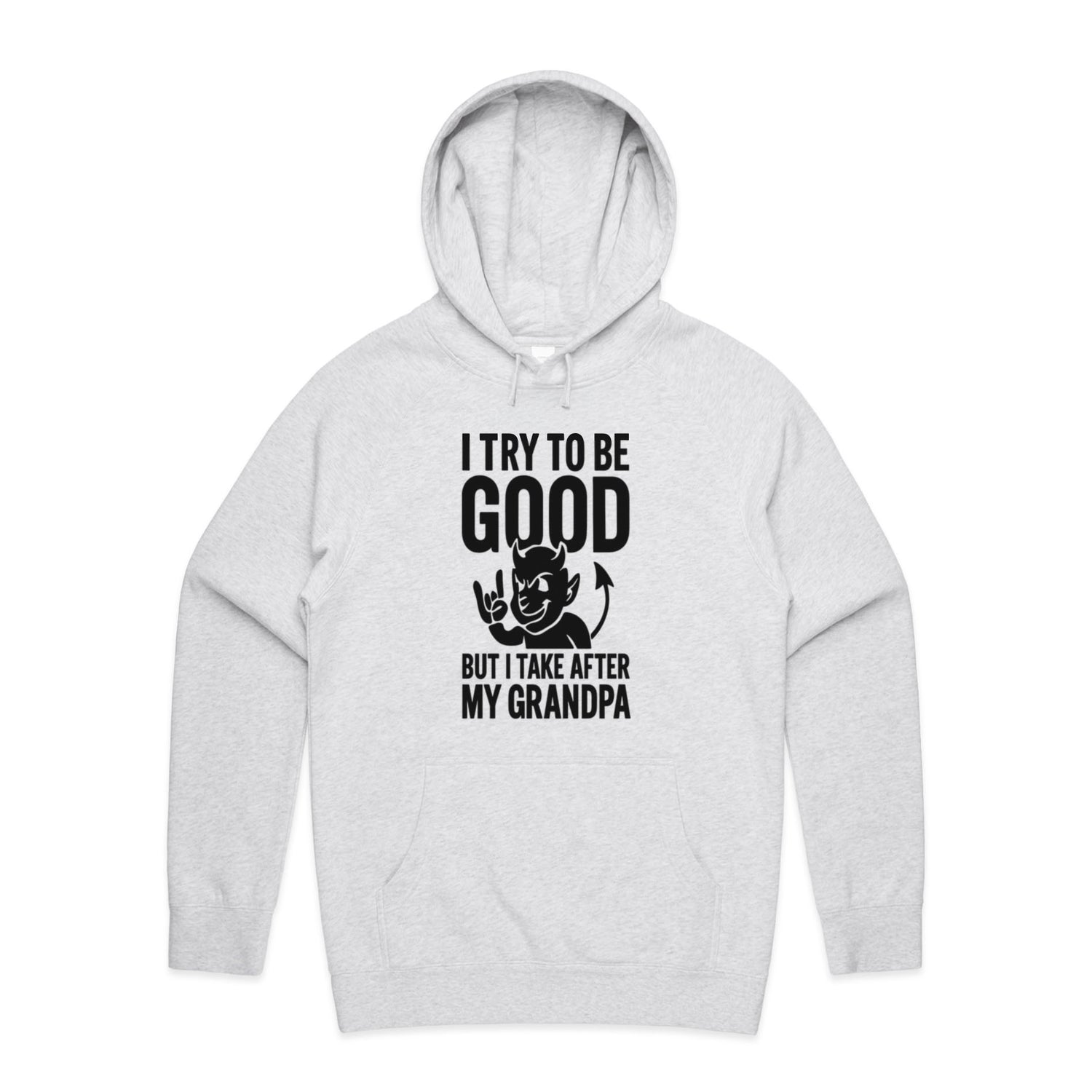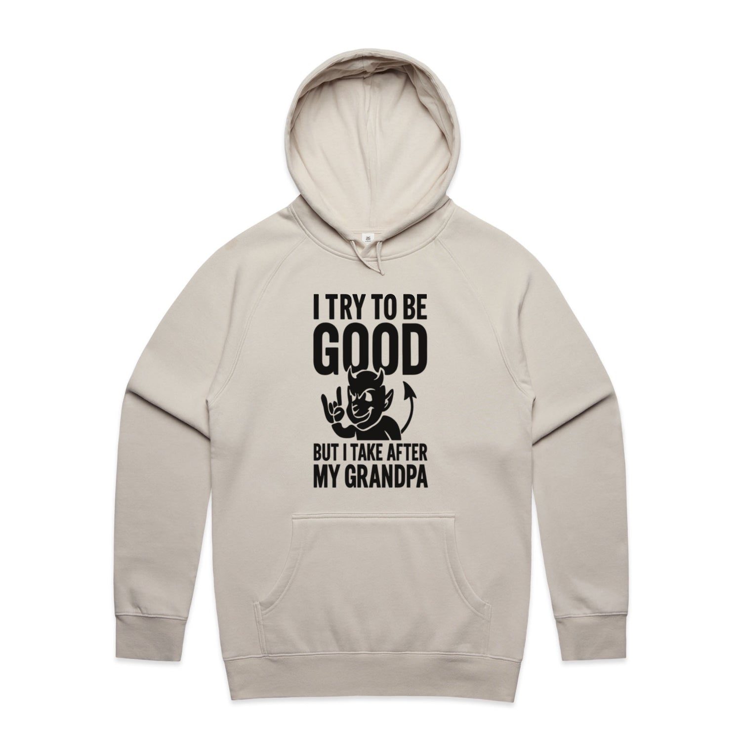Mischievous Devil and Bold Words – Men's Hooded Sweatshirt