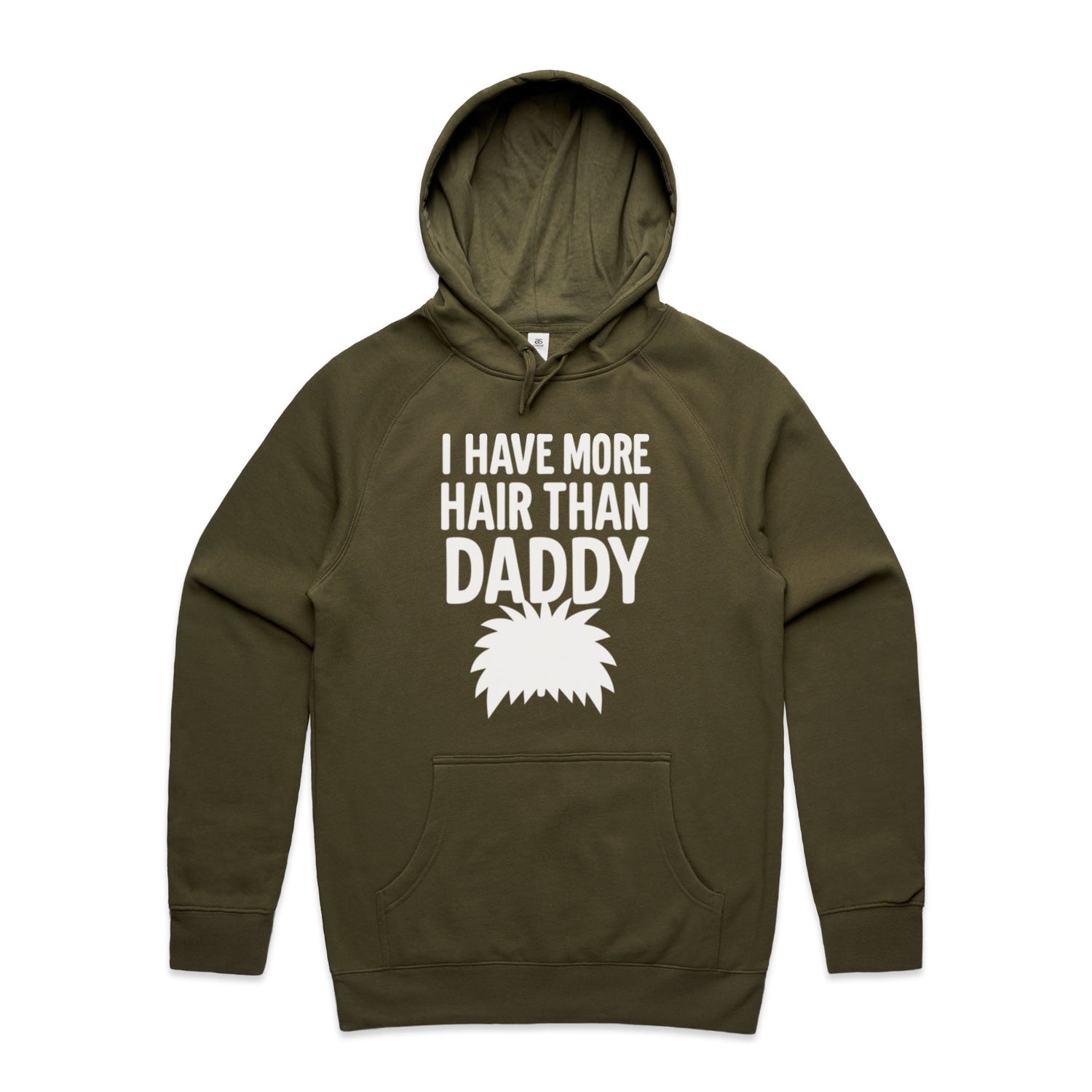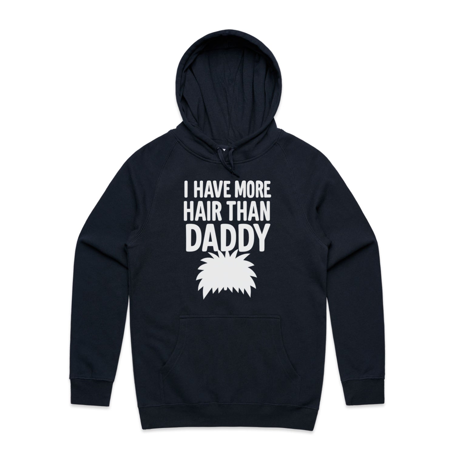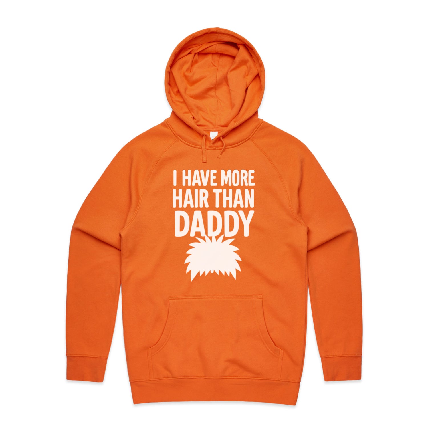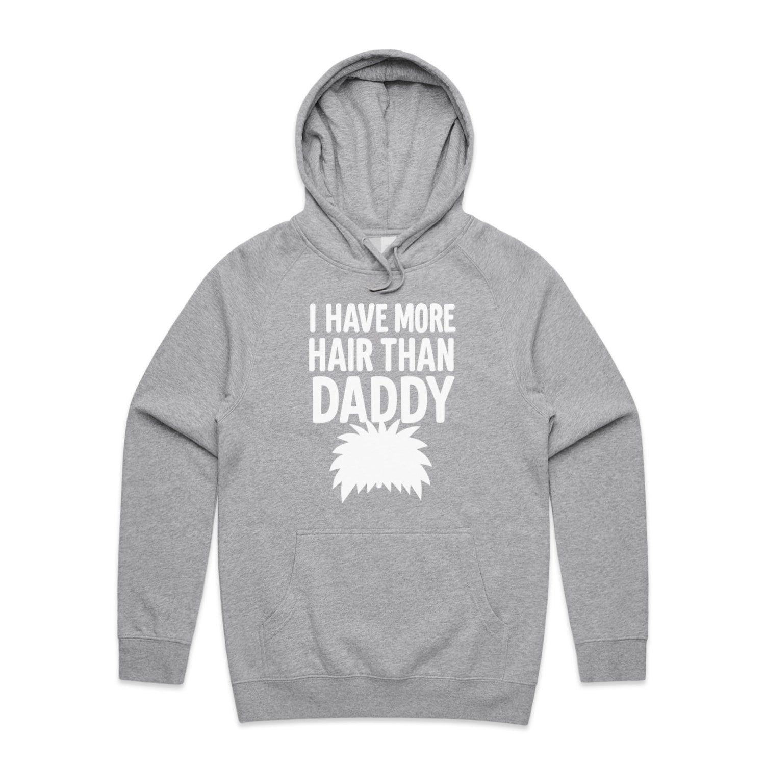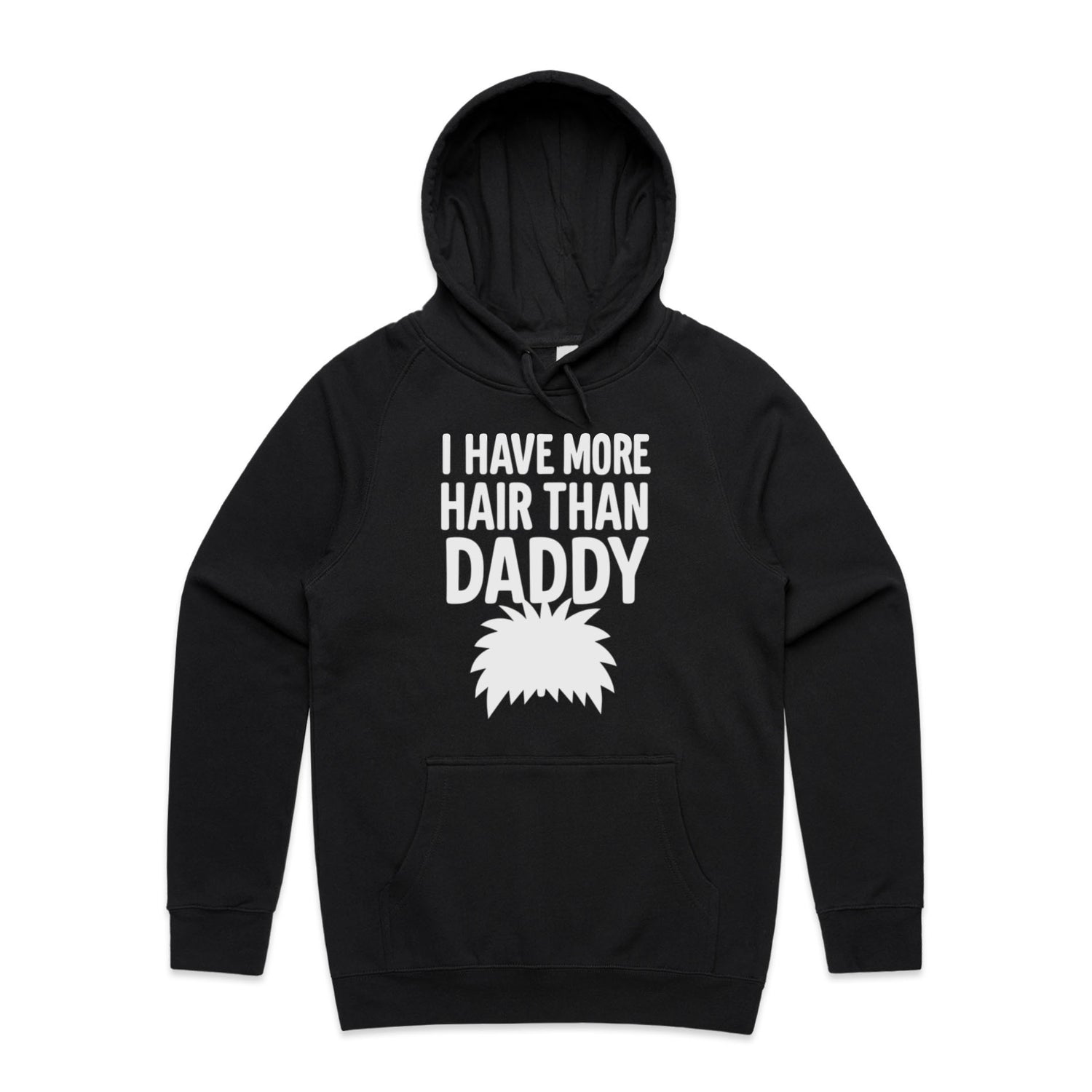 The Hoodies More Hair Than Daddy! – Men's Hooded Sweatshirt is a high-quality men's hooded sweatshirt, printed with white ink on the trusted AS Colour Supply Hood 5101. With a regular fit and mid-weight feel, it's crafted from a premium blend of 80% cotton and 20% polyester anti-pill fleece, making it a durable and comfortable staple for any wardrobe. The pullover design features raglan sleeves, a lined hood with tonal drawcord, ribbed sleeve cuffs, and a roomy kangaroo pocket — all designed to keep you warm while looking effortlessly sharp.