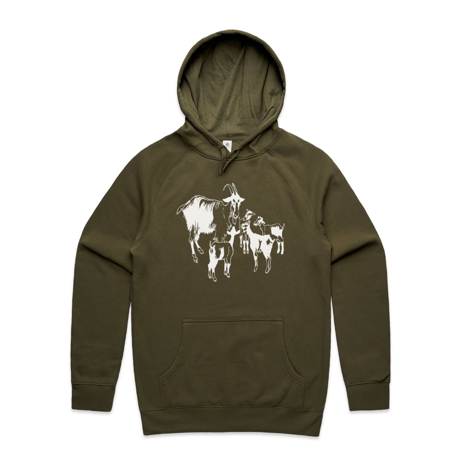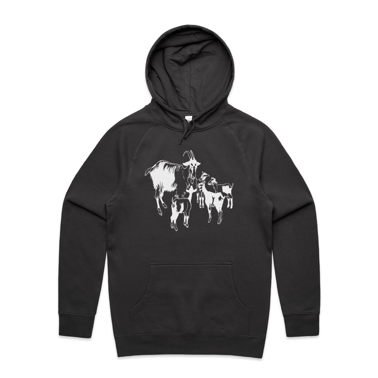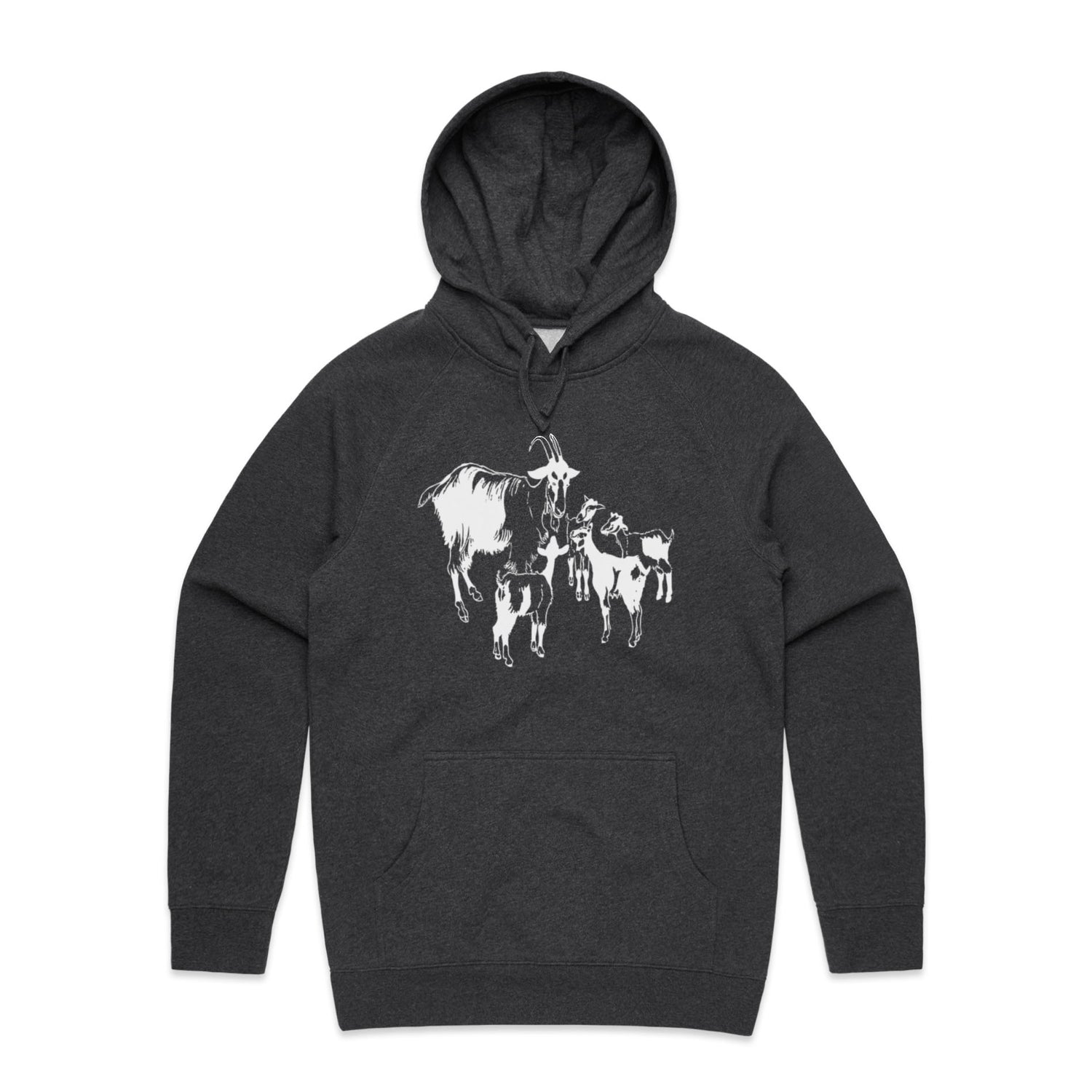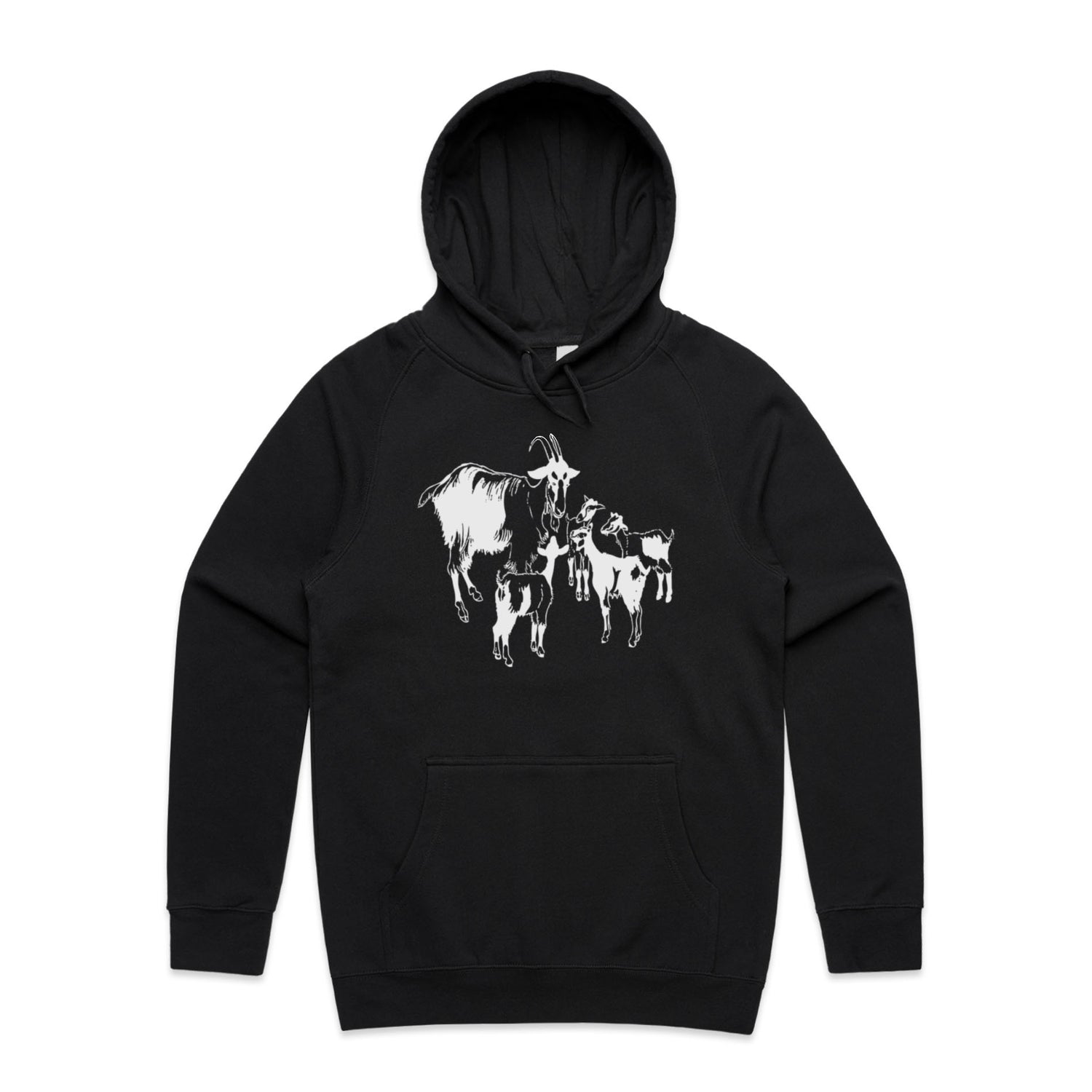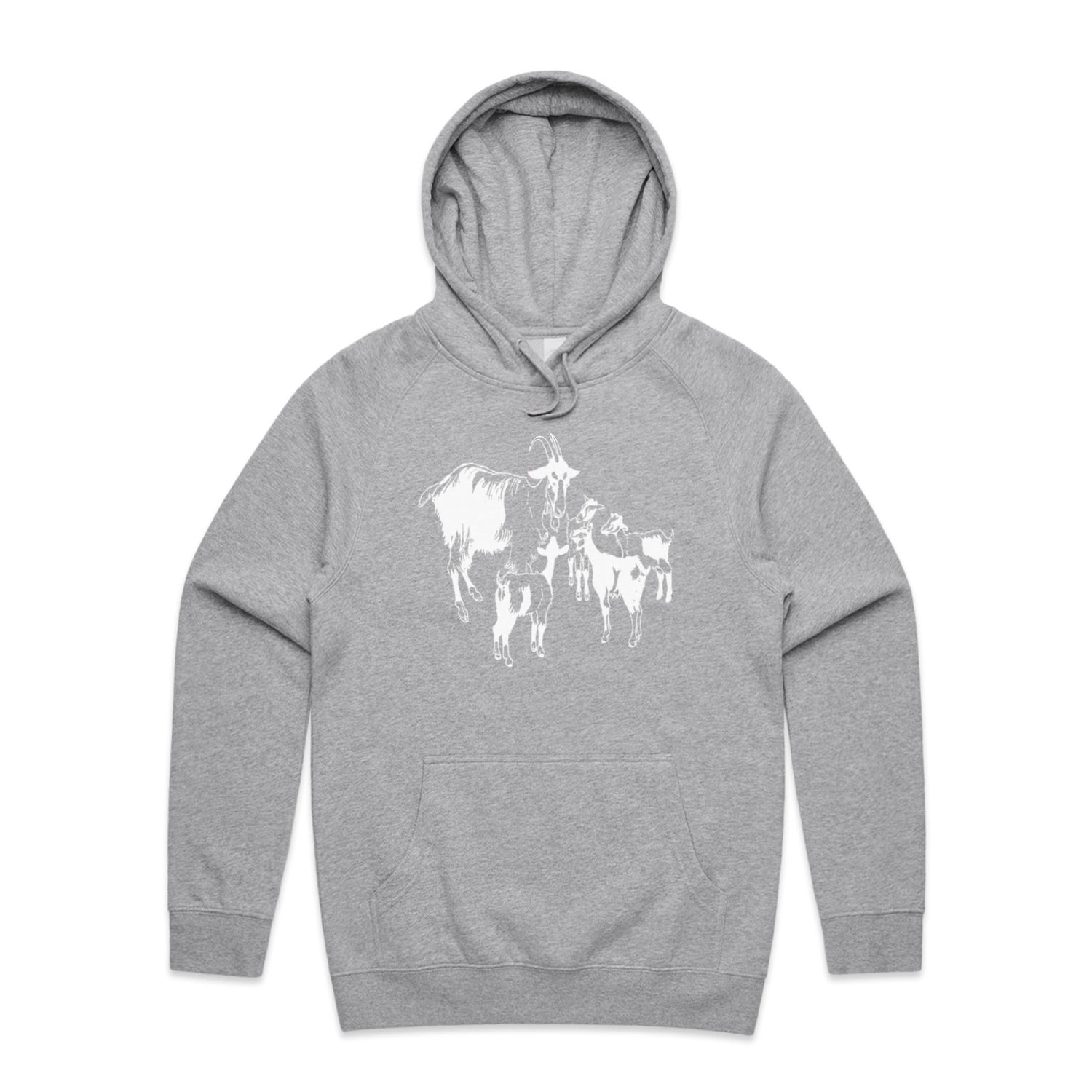 The Hoodies Mountain Goat and Kids – Men's Hooded Sweatshirt is a high-quality men's hooded sweatshirt, printed with white ink on the trusted AS Colour Supply Hood 5101. With a regular fit and mid-weight feel, it's crafted from a premium blend of 80% cotton and 20% polyester anti-pill fleece, making it a durable and comfortable staple for any wardrobe. The pullover design features raglan sleeves, a lined hood with tonal drawcord, ribbed sleeve cuffs, and a roomy kangaroo pocket — all designed to keep you warm while looking effortlessly sharp.