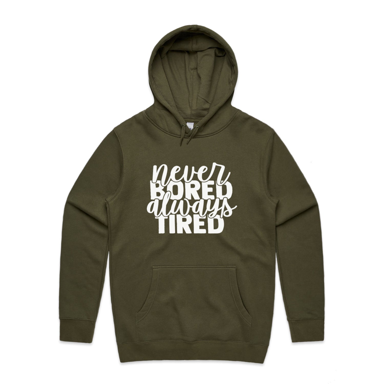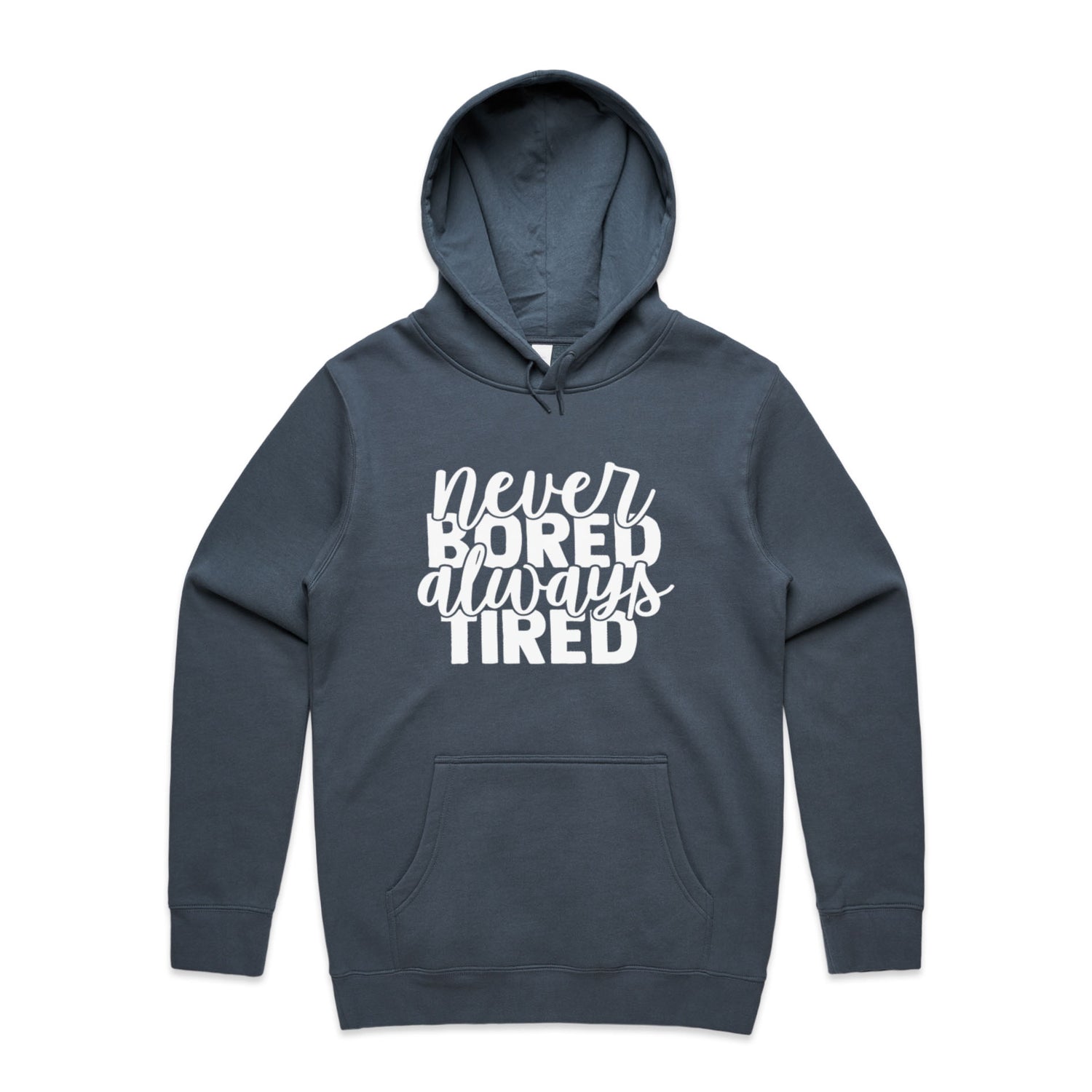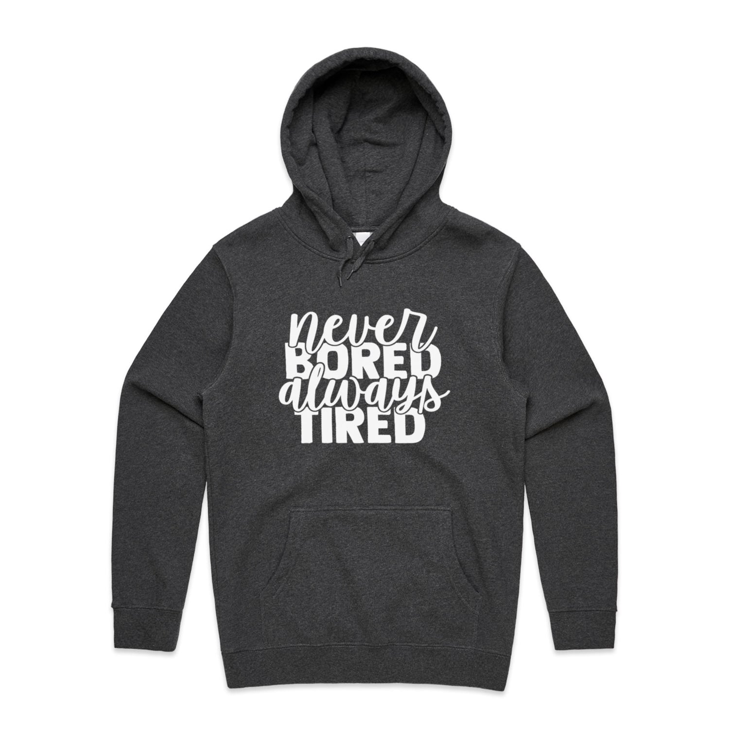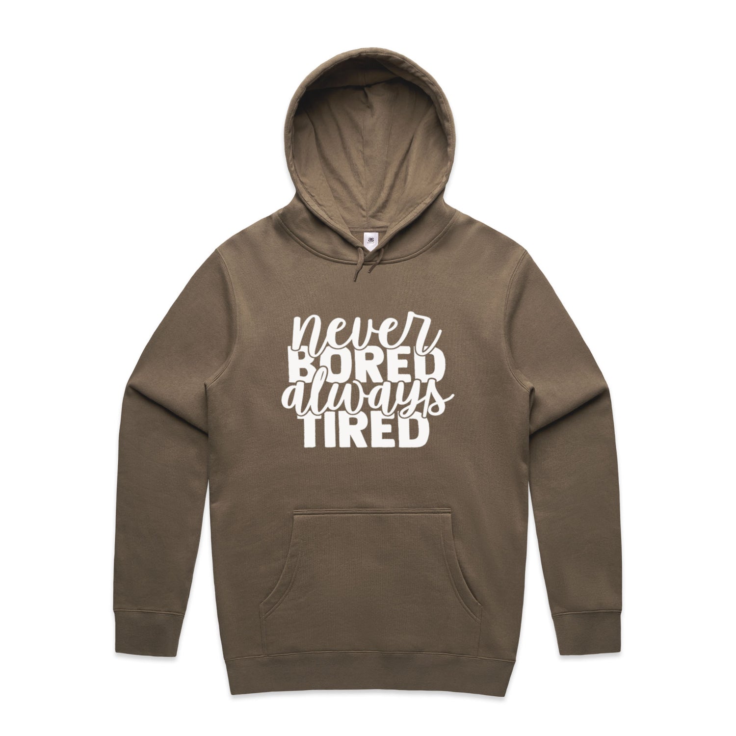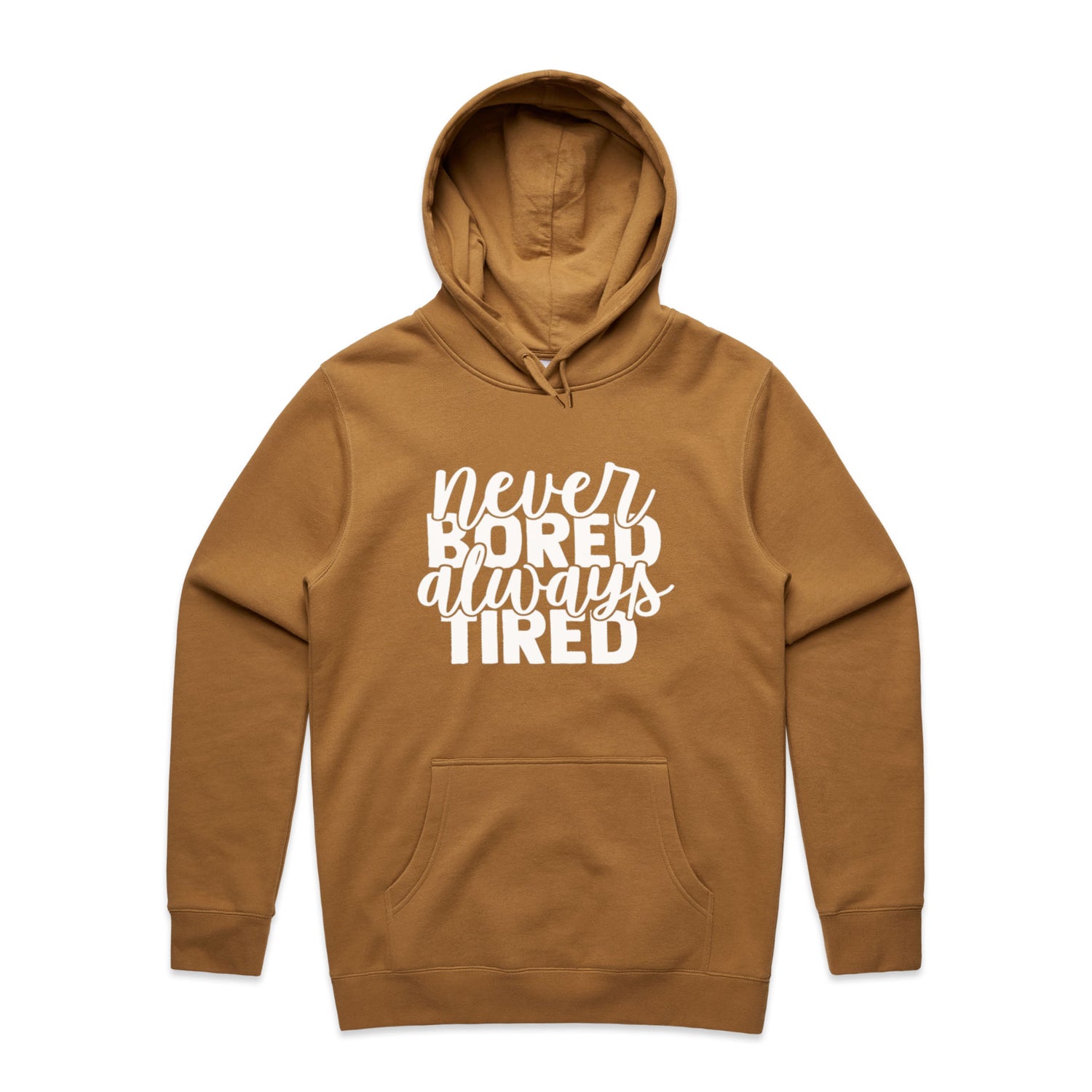 Unlock the secret combo of comfort and cheek with our Never Bored Tired Unisex Hooded Sweatshirt! Perfect for the legend who loves a good laugh, this hoodie’s got your back—literally—with a snappy quote that'll keep the vibes high and the yawns low. Lovingly slapped onto AS Colour's Stencil series, this bad boy's got a comfy regular fit, a handy kangaroo pocket for all your bits-n-bobs, and a lined hood for when you're hitting the snooze button on style.