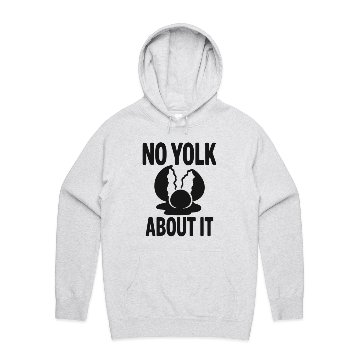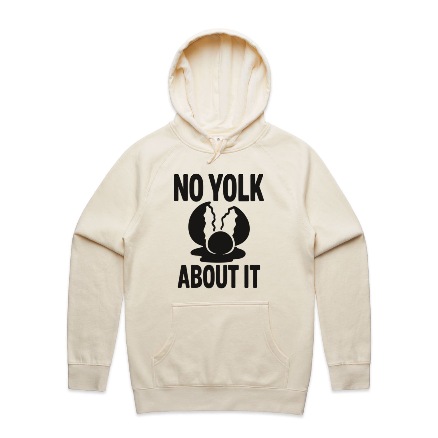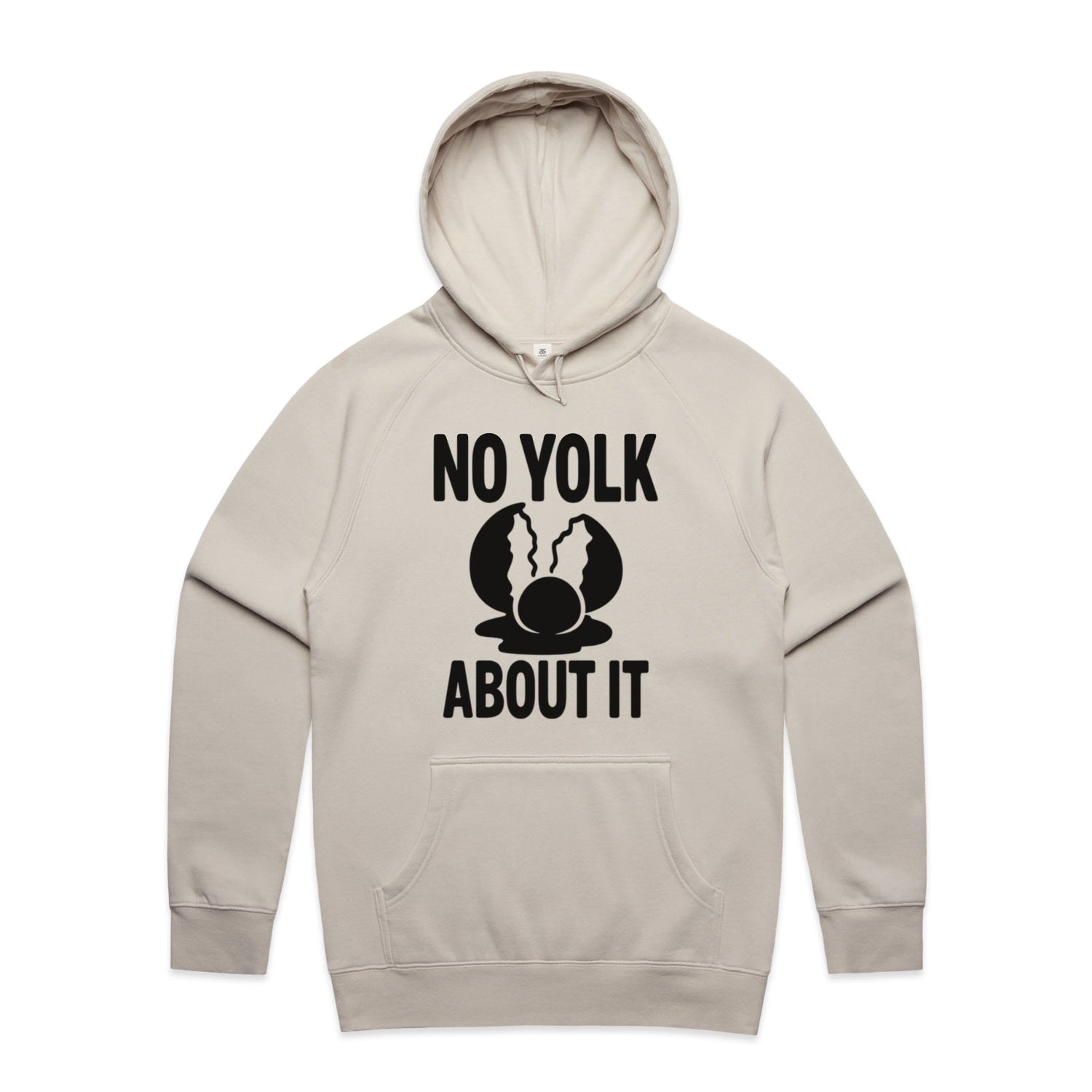 The Hoodies No Yolk, Just About It – Men's Hooded Sweatshirt is a high-quality men's hooded sweatshirt, printed with black ink on the trusted AS Colour Supply Hood 5101. With a regular fit and mid-weight feel, it's crafted from a premium blend of 80% cotton and 20% polyester anti-pill fleece, making it a durable and comfortable staple for any wardrobe. The pullover design features raglan sleeves, a lined hood with tonal drawcord, ribbed sleeve cuffs, and a roomy kangaroo pocket — all designed to keep you warm while looking effortlessly sharp.