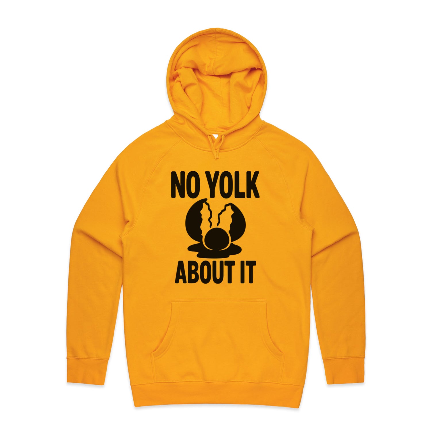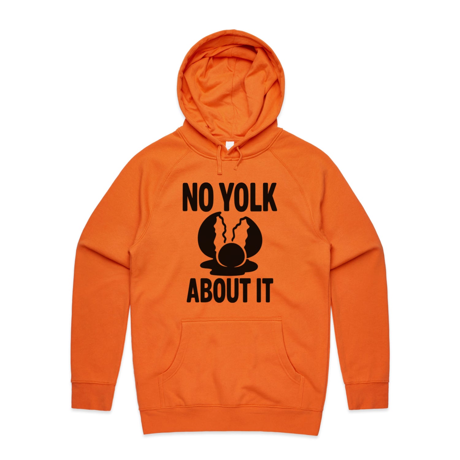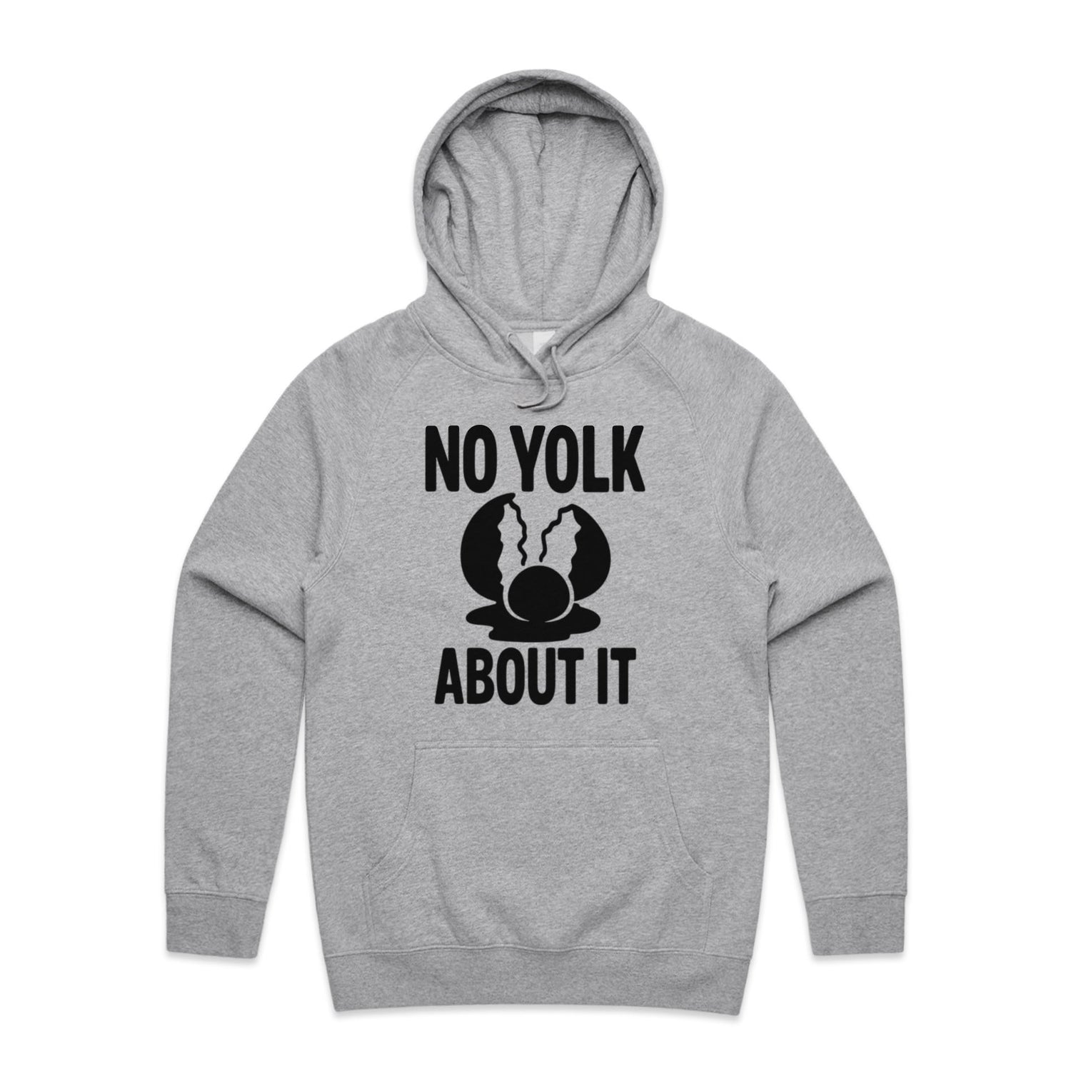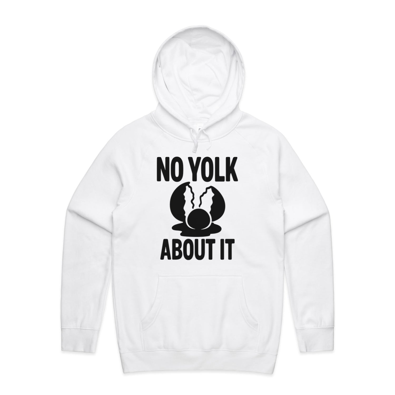 The Hoodies No Yolk, Just About It – Men's Hooded Sweatshirt is a high-quality men's hooded sweatshirt, printed with black ink on the trusted AS Colour Supply Hood 5101. With a regular fit and mid-weight feel, it's crafted from a premium blend of 80% cotton and 20% polyester anti-pill fleece, making it a durable and comfortable staple for any wardrobe. The pullover design features raglan sleeves, a lined hood with tonal drawcord, ribbed sleeve cuffs, and a roomy kangaroo pocket — all designed to keep you warm while looking effortlessly sharp.