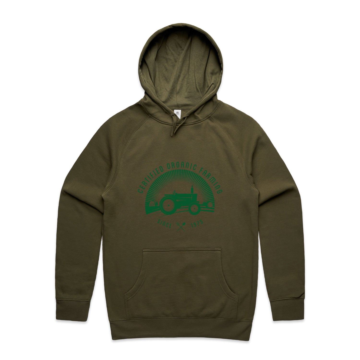 The Hoodies Organic Farming – Men's Hooded Sweatshirt is a high-quality men's hooded sweatshirt, printed with green ink on the trusted AS Colour Supply Hood 5101. With a regular fit and mid-weight feel, it's crafted from a premium blend of 80% cotton and 20% polyester anti-pill fleece, making it a durable and comfortable staple for any wardrobe. The pullover design features raglan sleeves, a lined hood with tonal drawcord, ribbed sleeve cuffs, and a roomy kangaroo pocket — all designed to keep you warm while looking effortlessly sharp.