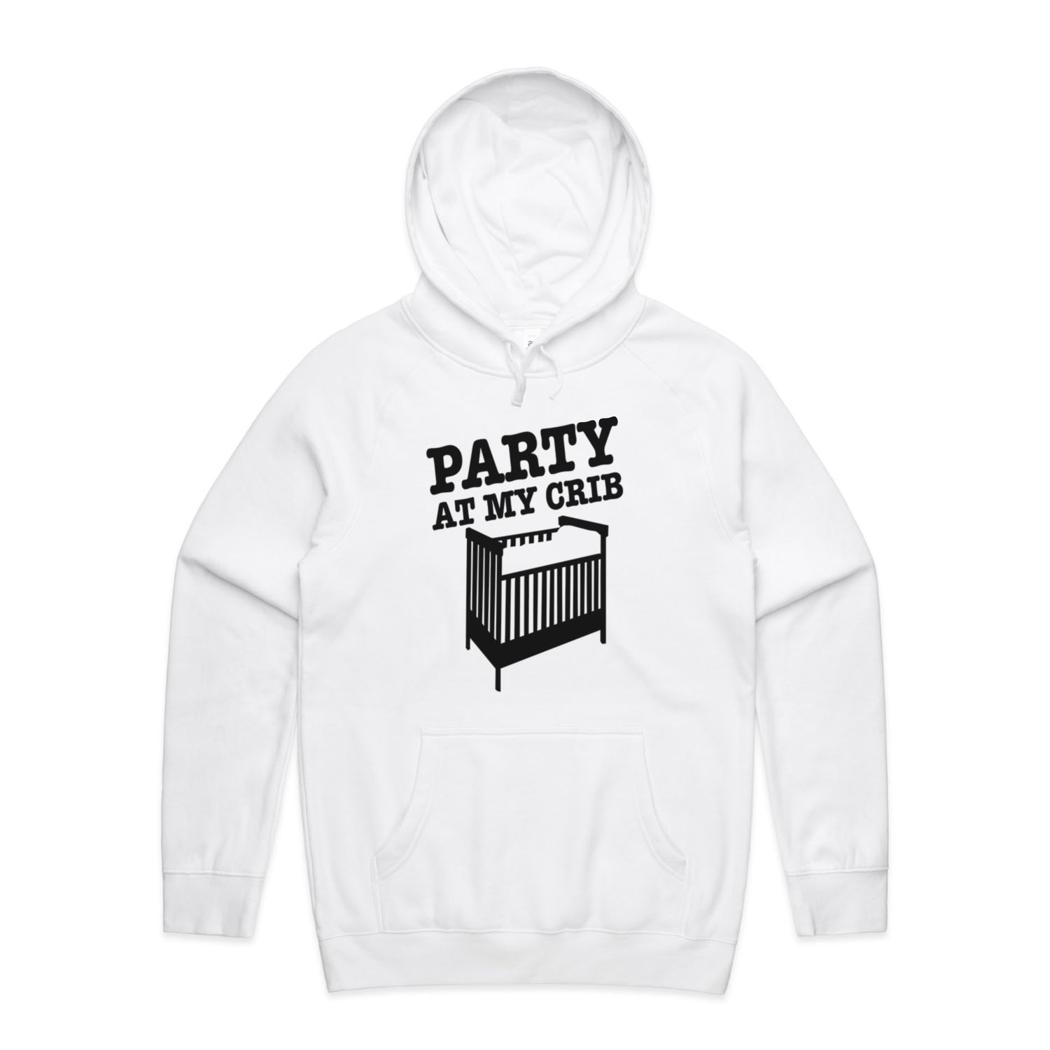 The Hoodies Party Crib – Men's Hooded Sweatshirt is a high-quality men's hooded sweatshirt, printed with black ink on the trusted AS Colour Supply Hood 5101. With a regular fit and mid-weight feel, it's crafted from a premium blend of 80% cotton and 20% polyester anti-pill fleece, making it a durable and comfortable staple for any wardrobe. The pullover design features raglan sleeves, a lined hood with tonal drawcord, ribbed sleeve cuffs, and a roomy kangaroo pocket — all designed to keep you warm while looking effortlessly sharp.