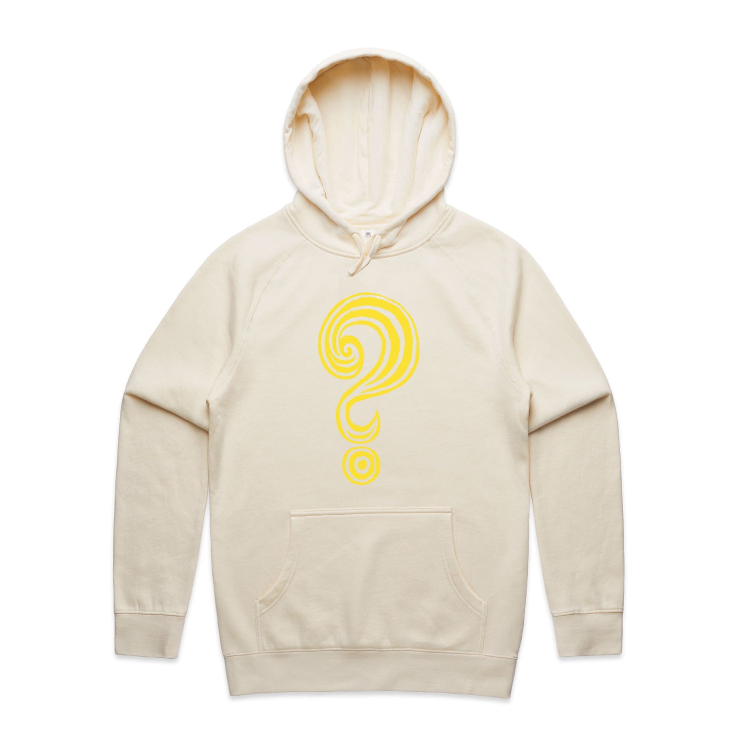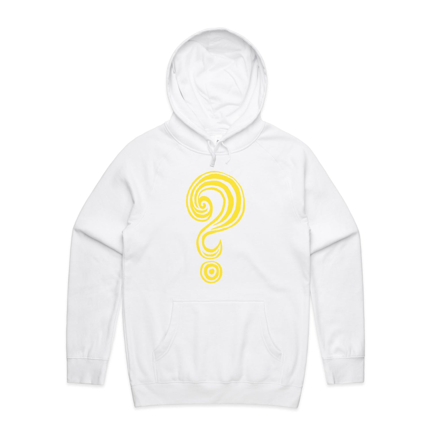 The Hoodies Question Mark – Men's Hooded Sweatshirt is a high-quality men's hooded sweatshirt, printed with lemon yellow ink on the trusted AS Colour Supply Hood 5101. With a regular fit and mid-weight feel, it's crafted from a premium blend of 80% cotton and 20% polyester anti-pill fleece, making it a durable and comfortable staple for any wardrobe. The pullover design features raglan sleeves, a lined hood with tonal drawcord, ribbed sleeve cuffs, and a roomy kangaroo pocket — all designed to keep you warm while looking effortlessly sharp.