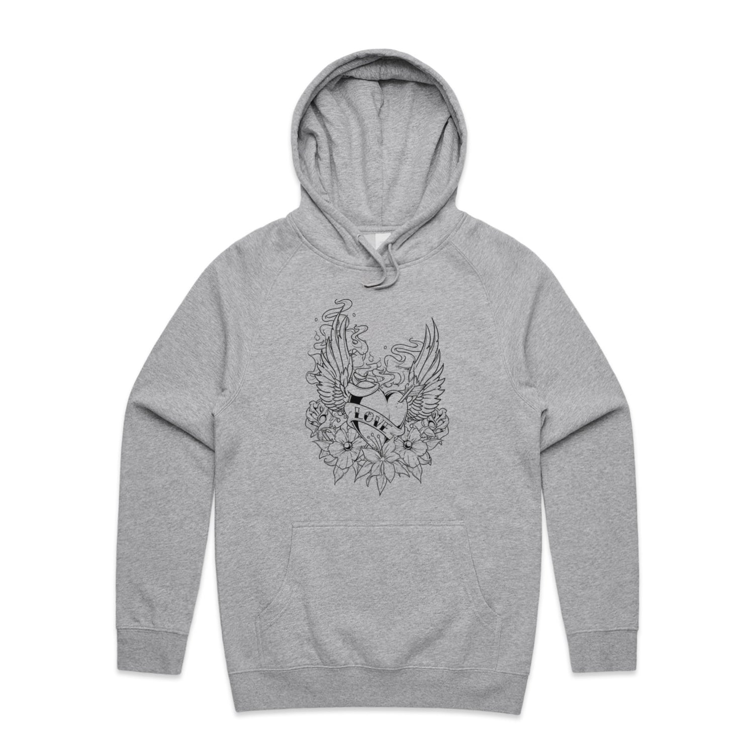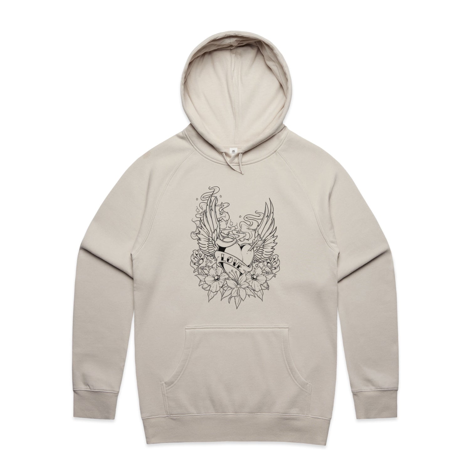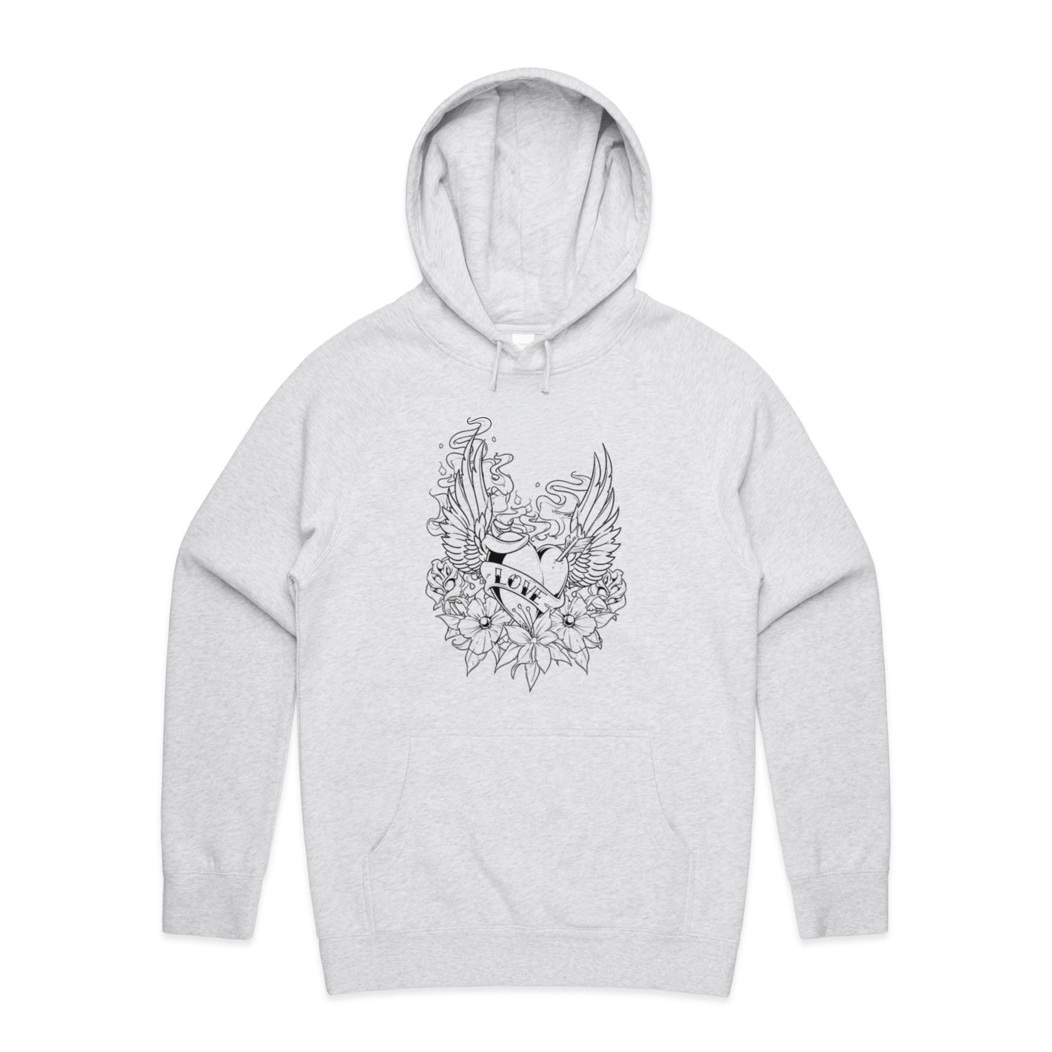 The Hoodies Retro Heart Tattoo – Men's Hooded Sweatshirt is a high-quality men's hooded sweatshirt, printed with black ink on the trusted AS Colour Supply Hood 5101. With a regular fit and mid-weight feel, it's crafted from a premium blend of 80% cotton and 20% polyester anti-pill fleece, making it a durable and comfortable staple for any wardrobe. The pullover design features raglan sleeves, a lined hood with tonal drawcord, ribbed sleeve cuffs, and a roomy kangaroo pocket — all designed to keep you warm while looking effortlessly sharp.