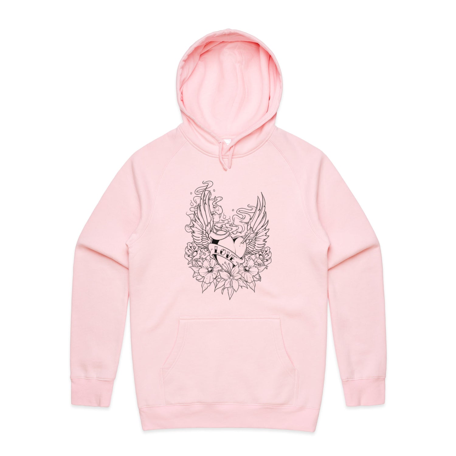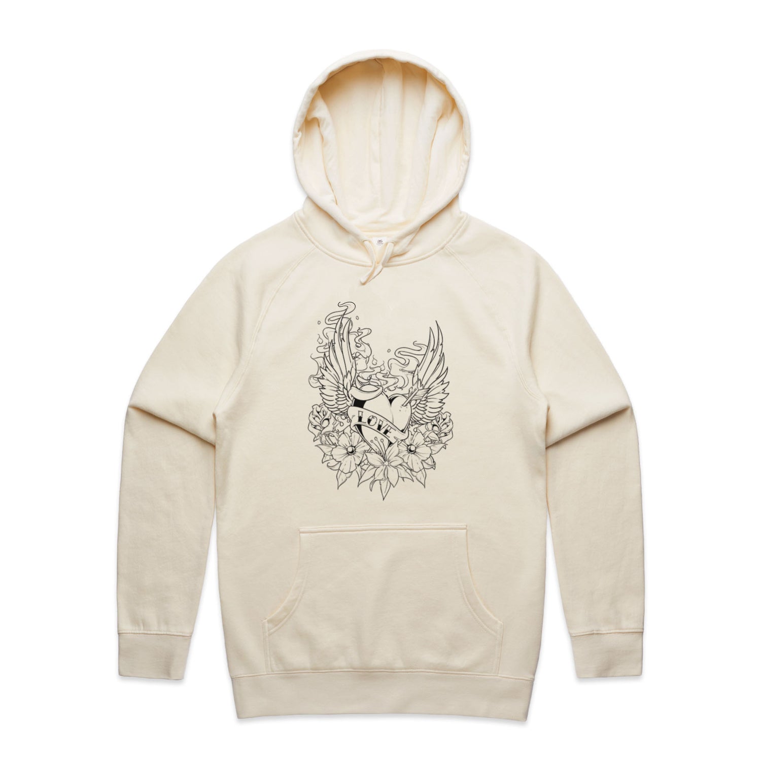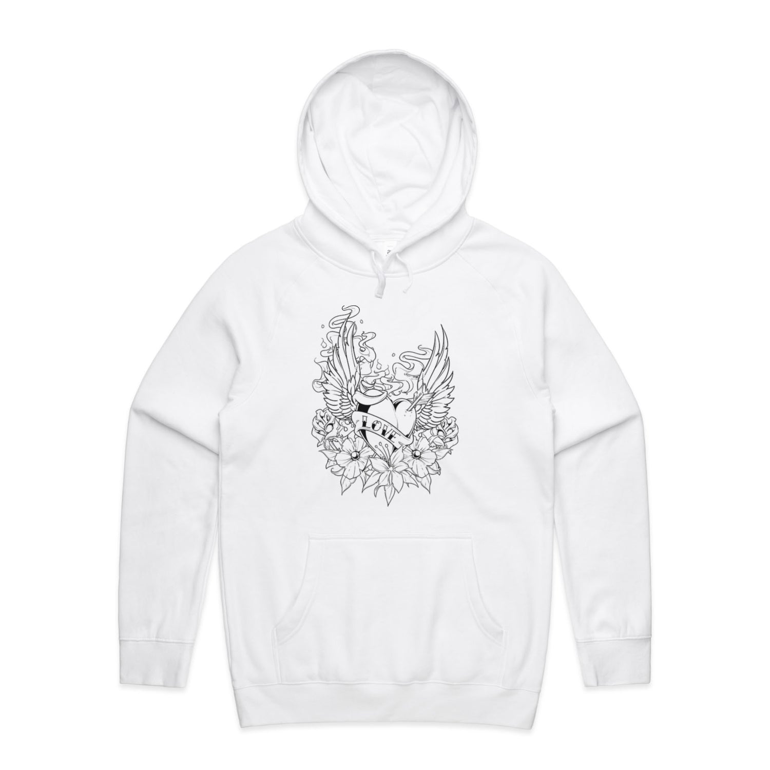 The Hoodies Retro Heart Tattoo – Men's Hooded Sweatshirt is a high-quality men's hooded sweatshirt, printed with black ink on the trusted AS Colour Supply Hood 5101. With a regular fit and mid-weight feel, it's crafted from a premium blend of 80% cotton and 20% polyester anti-pill fleece, making it a durable and comfortable staple for any wardrobe. The pullover design features raglan sleeves, a lined hood with tonal drawcord, ribbed sleeve cuffs, and a roomy kangaroo pocket — all designed to keep you warm while looking effortlessly sharp.