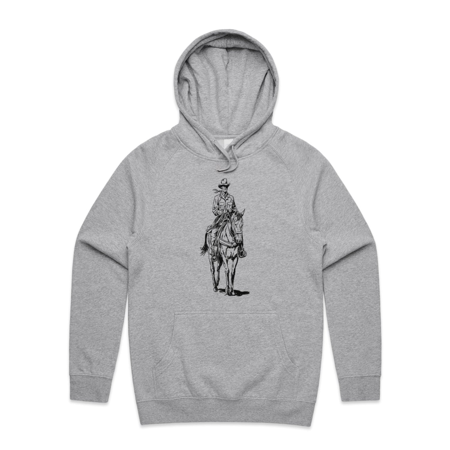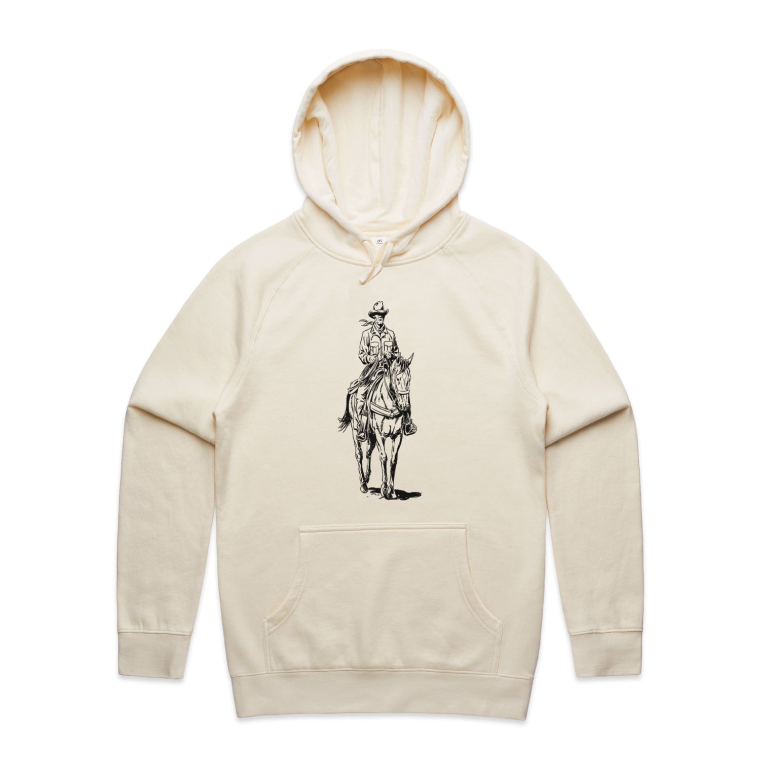 The Hoodies Rugged Cowboy Rider – Men's Hooded Sweatshirt is a high-quality men's hooded sweatshirt, printed with black ink on the trusted AS Colour Supply Hood 5101. With a regular fit and mid-weight feel, it's crafted from a premium blend of 80% cotton and 20% polyester anti-pill fleece, making it a durable and comfortable staple for any wardrobe. The pullover design features raglan sleeves, a lined hood with tonal drawcord, ribbed sleeve cuffs, and a roomy kangaroo pocket — all designed to keep you warm while looking effortlessly sharp.