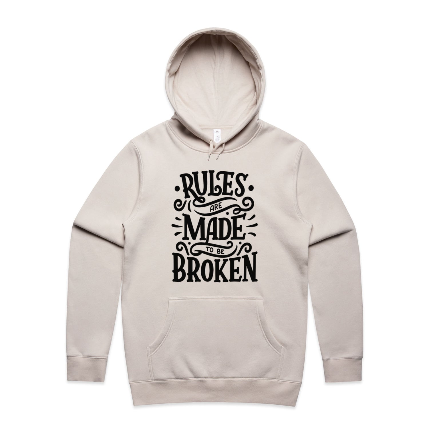 Unleash your inner rebel with TheHoodie's Rules Broken Art unisex hoodie and add a pop of mystery to your day. Perfect for those who tread their own path, this beauty screams edgy with its striking black typography print that'll have your mates doing double takes. Crafted from a comfy as AS Colour Stencil series, this hoodie is pure mid-heavy goodness – ideal for those brisk Aussie evenings or when you're out frolicking in the rain. With a regular fit that’s all about easy-going vibes, throw it on and relish the freedom of that kangaroo pocket, lined hood, and snazzy tonal drawcord. Whether you're hitting the streets or chilling at home, this iconic black hoodie is your new best mate. Stay inspired, stay bold, stay you!