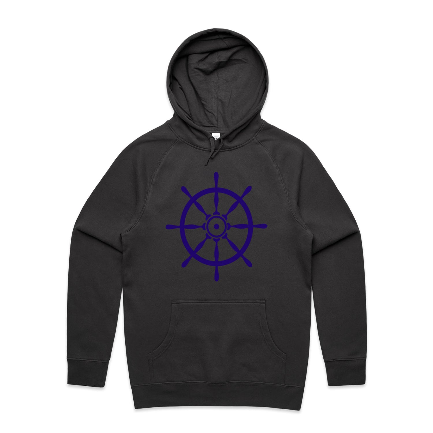 The Hoodies Ships Wheel – Men's Hooded Sweatshirt is a high-quality men's hooded sweatshirt, printed with blue ink on the trusted AS Colour Supply Hood 5101. With a regular fit and mid-weight feel, it's crafted from a premium blend of 80% cotton and 20% polyester anti-pill fleece, making it a durable and comfortable staple for any wardrobe. The pullover design features raglan sleeves, a lined hood with tonal drawcord, ribbed sleeve cuffs, and a roomy kangaroo pocket — all designed to keep you warm while looking effortlessly sharp.