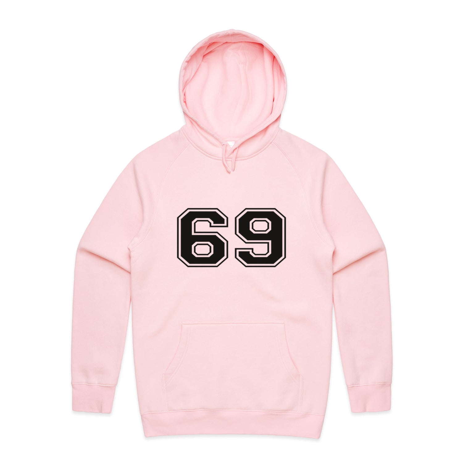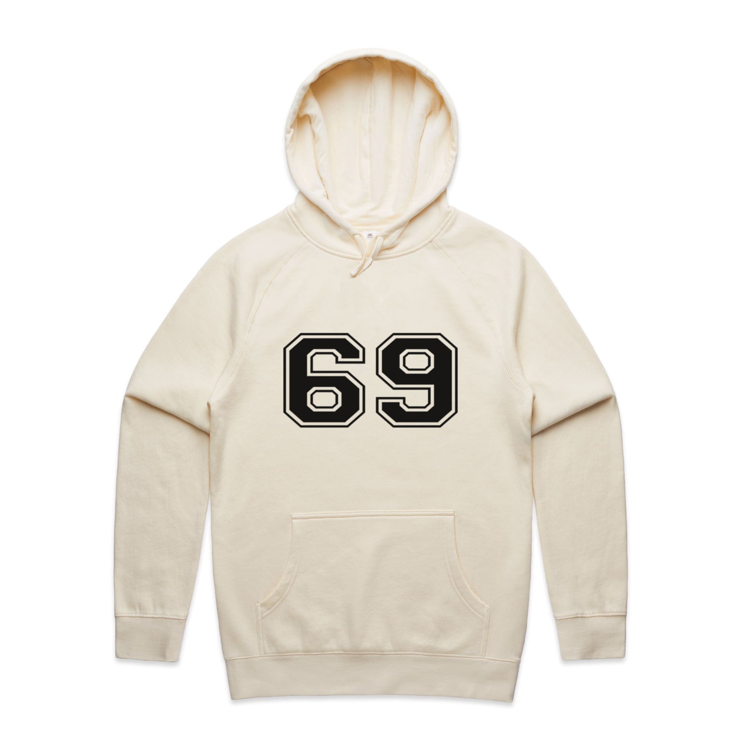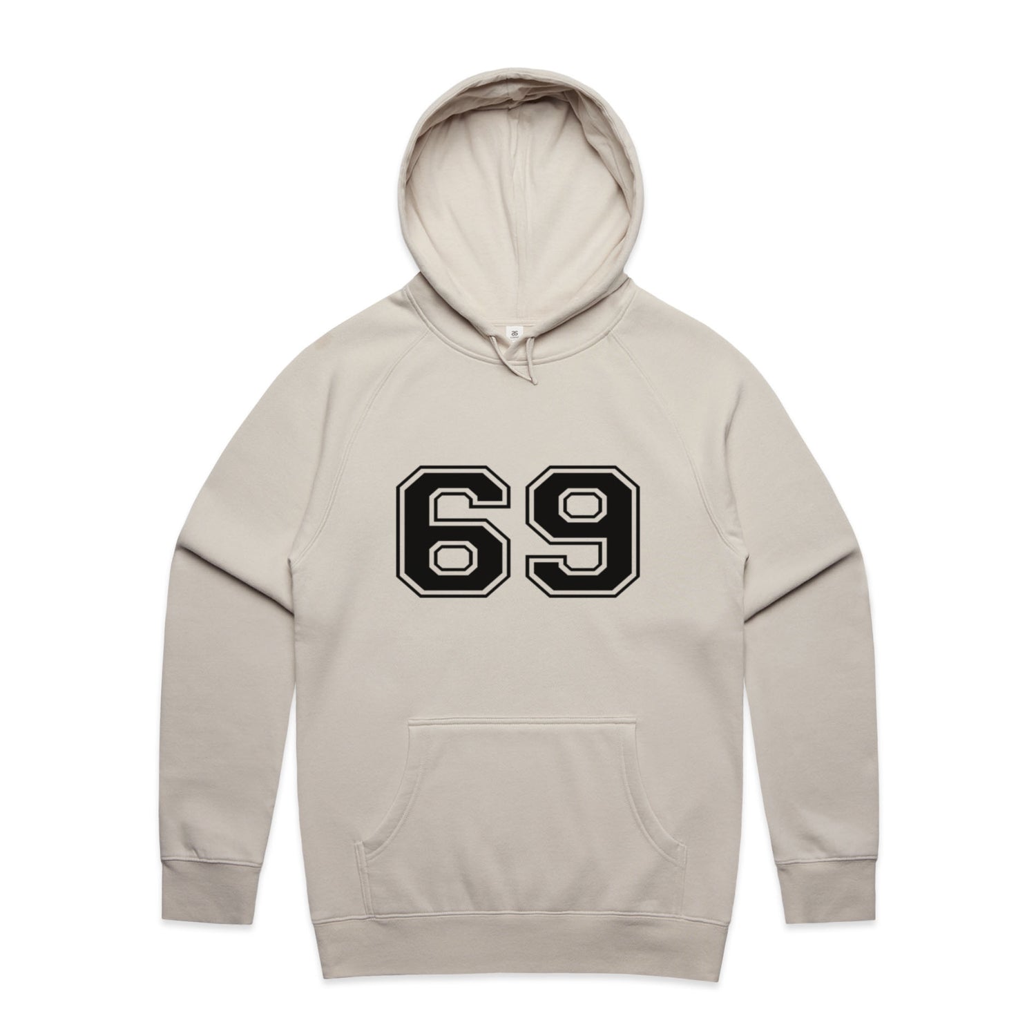 The Hoodies Sport Numbers 69 – Men's Hooded Sweatshirt is a high-quality men's hooded sweatshirt, printed with black ink on the trusted AS Colour Supply Hood 5101. With a regular fit and mid-weight feel, it's crafted from a premium blend of 80% cotton and 20% polyester anti-pill fleece, making it a durable and comfortable staple for any wardrobe. The pullover design features raglan sleeves, a lined hood with tonal drawcord, ribbed sleeve cuffs, and a roomy kangaroo pocket — all designed to keep you warm while looking effortlessly sharp.