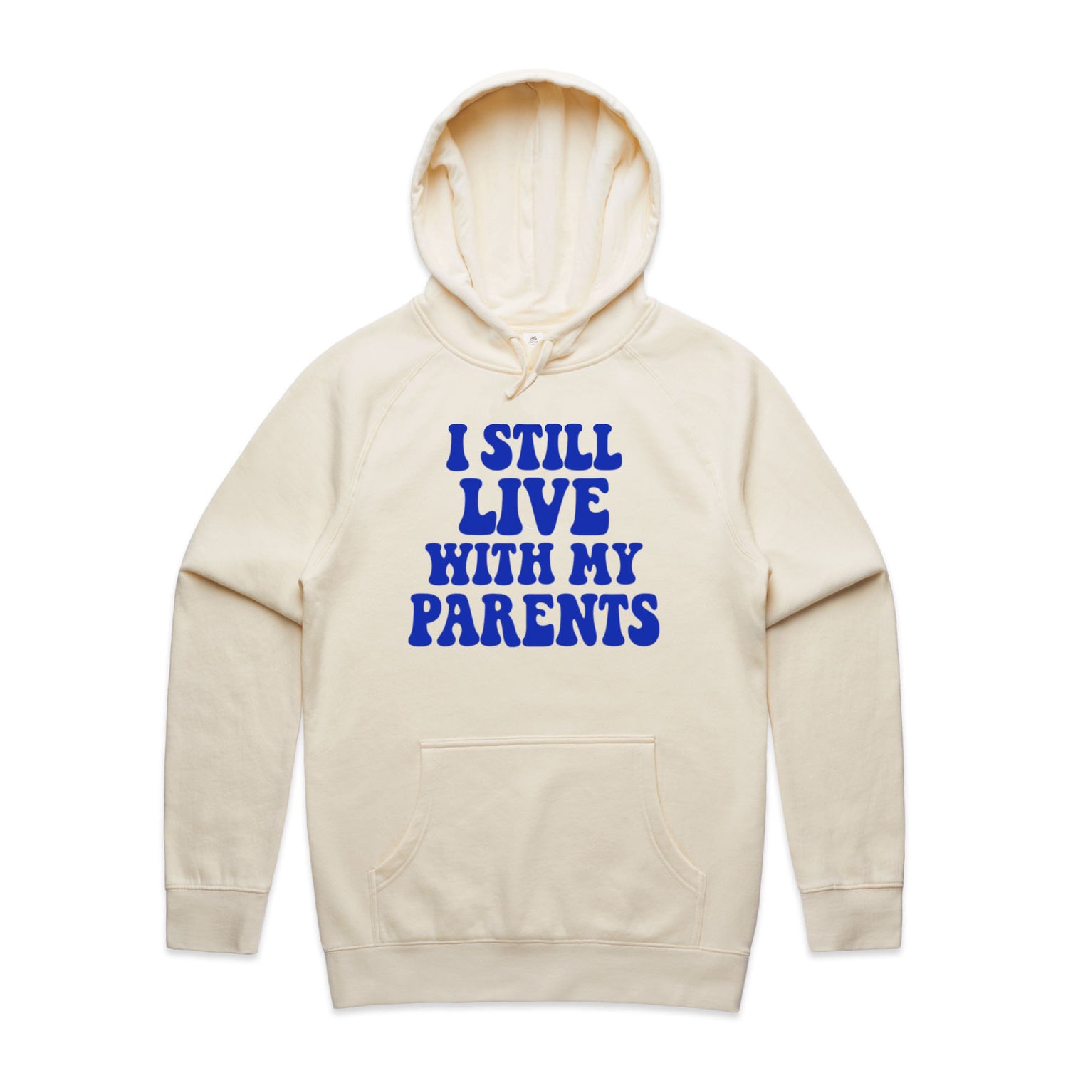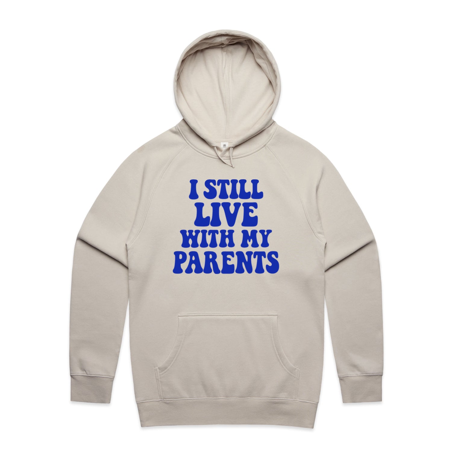 The Hoodies Still Living with Parents – Men's Hooded Sweatshirt is a high-quality men's hooded sweatshirt, printed with blue ink on the trusted AS Colour Supply Hood 5101. With a regular fit and mid-weight feel, it's crafted from a premium blend of 80% cotton and 20% polyester anti-pill fleece, making it a durable and comfortable staple for any wardrobe. The pullover design features raglan sleeves, a lined hood with tonal drawcord, ribbed sleeve cuffs, and a roomy kangaroo pocket — all designed to keep you warm while looking effortlessly sharp.