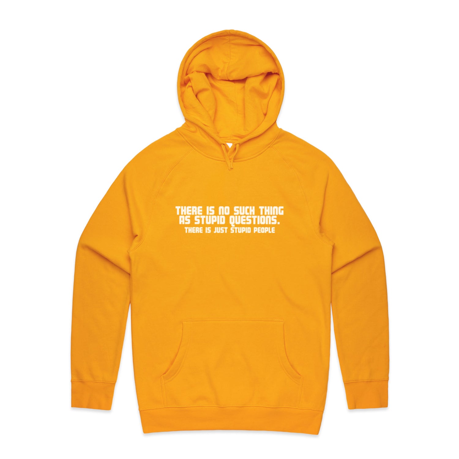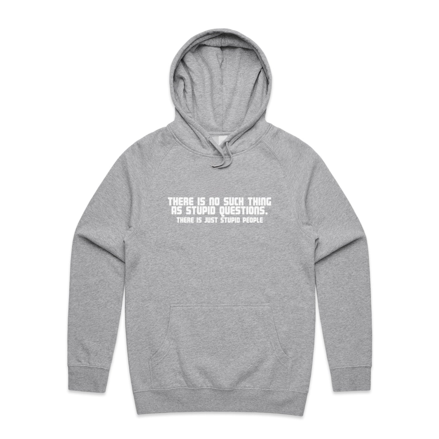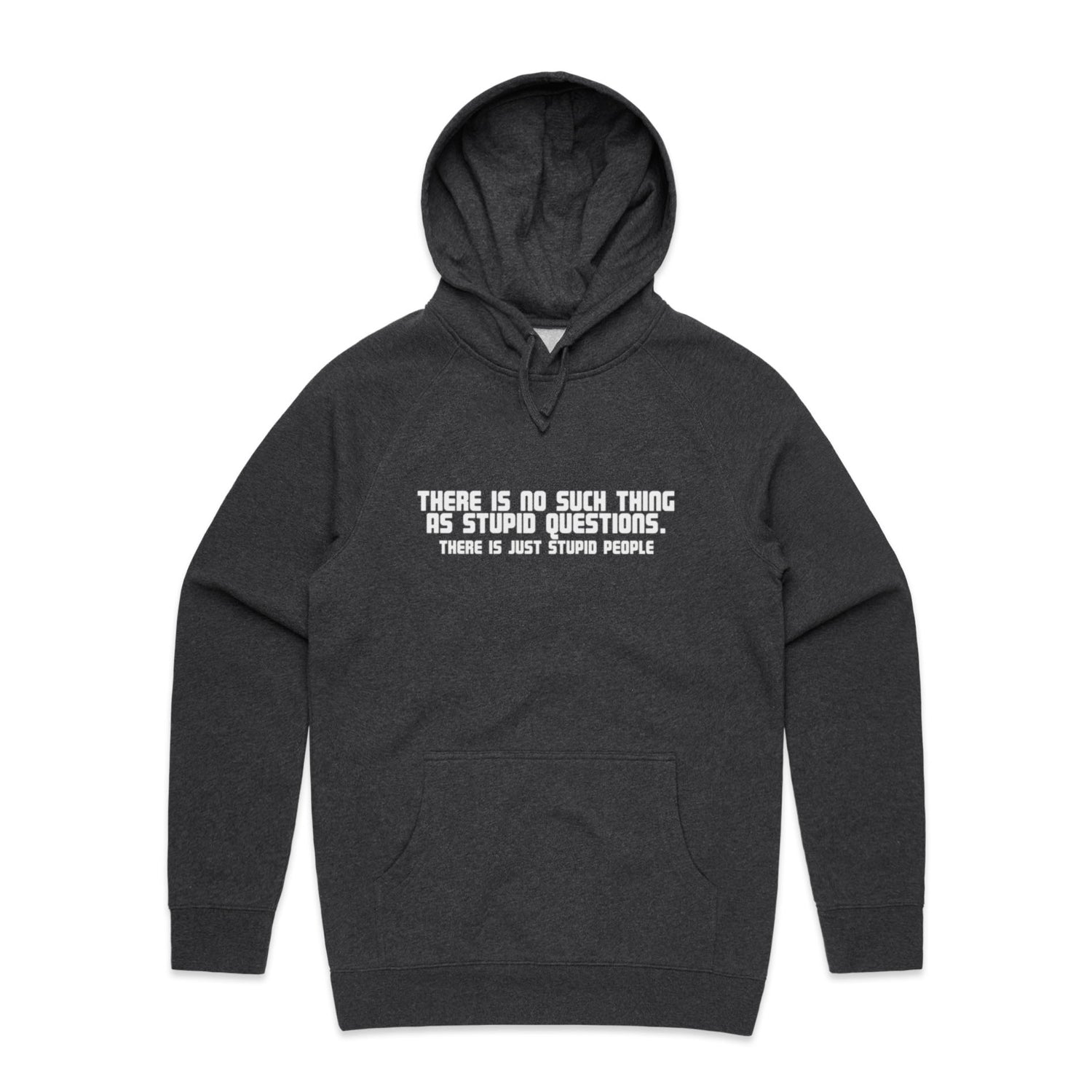 The Hoodies Stupid Questions, Stupid People – Men's Hooded Sweatshirt is a high-quality men's hooded sweatshirt, printed with white ink on the trusted AS Colour Supply Hood 5101. With a regular fit and mid-weight feel, it's crafted from a premium blend of 80% cotton and 20% polyester anti-pill fleece, making it a durable and comfortable staple for any wardrobe. The pullover design features raglan sleeves, a lined hood with tonal drawcord, ribbed sleeve cuffs, and a roomy kangaroo pocket — all designed to keep you warm while looking effortlessly sharp.