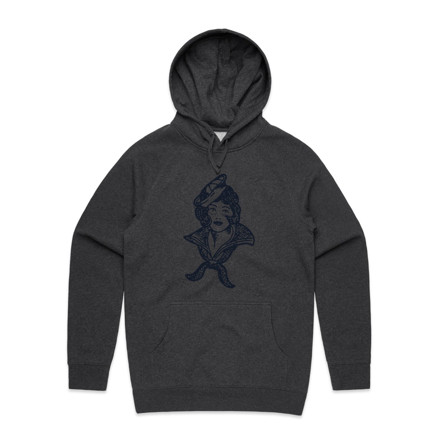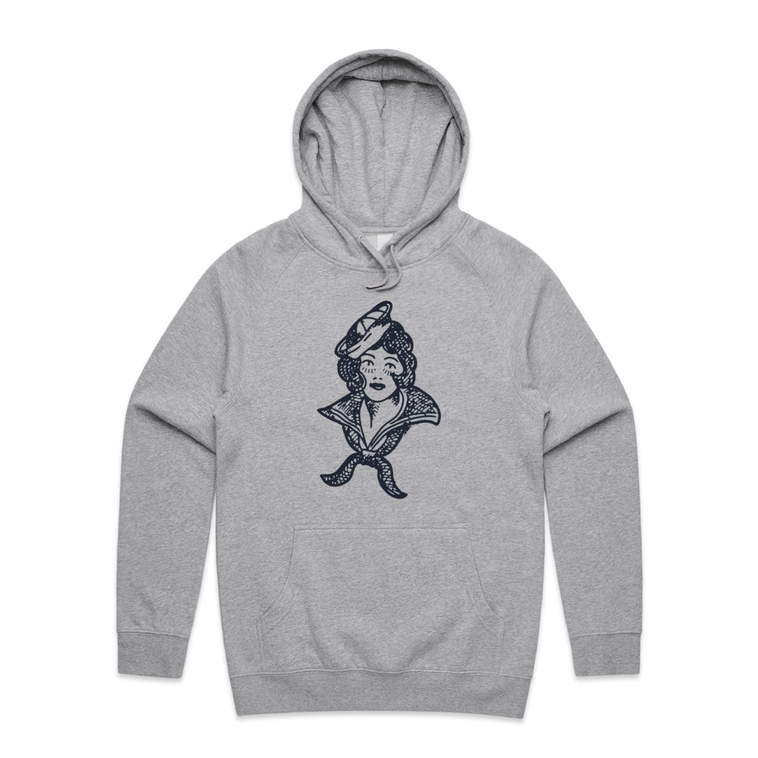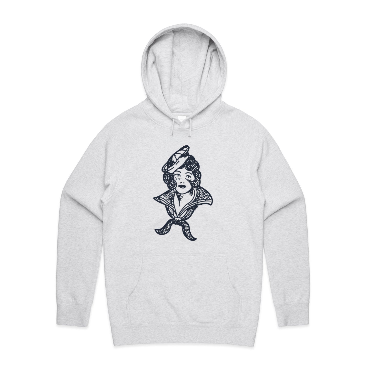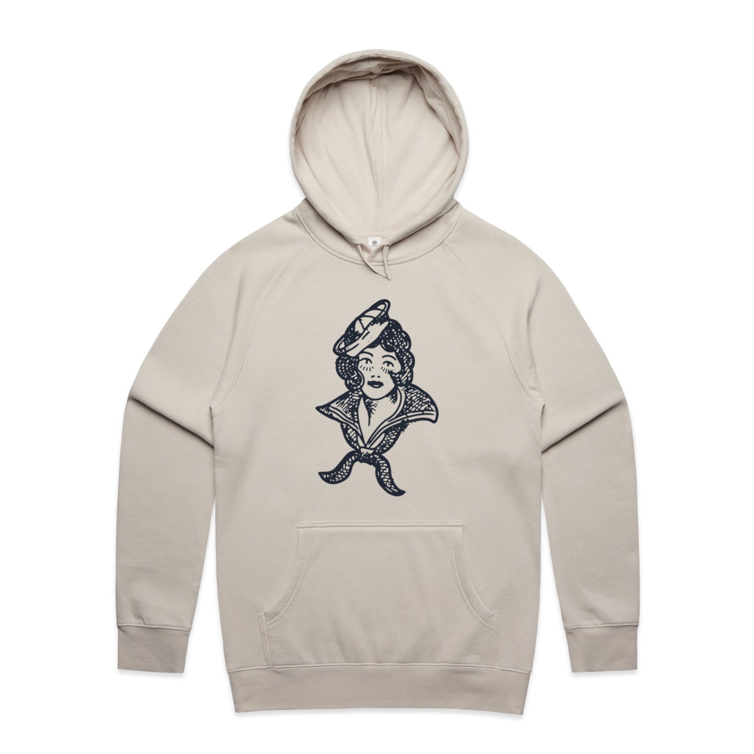 The Hoodies Tattoo Sailor Girl – Men's Hooded Sweatshirt is a high-quality men's hooded sweatshirt, printed with grey ink on the trusted AS Colour Supply Hood 5101. With a regular fit and mid-weight feel, it's crafted from a premium blend of 80% cotton and 20% polyester anti-pill fleece, making it a durable and comfortable staple for any wardrobe. The pullover design features raglan sleeves, a lined hood with tonal drawcord, ribbed sleeve cuffs, and a roomy kangaroo pocket — all designed to keep you warm while looking effortlessly sharp.