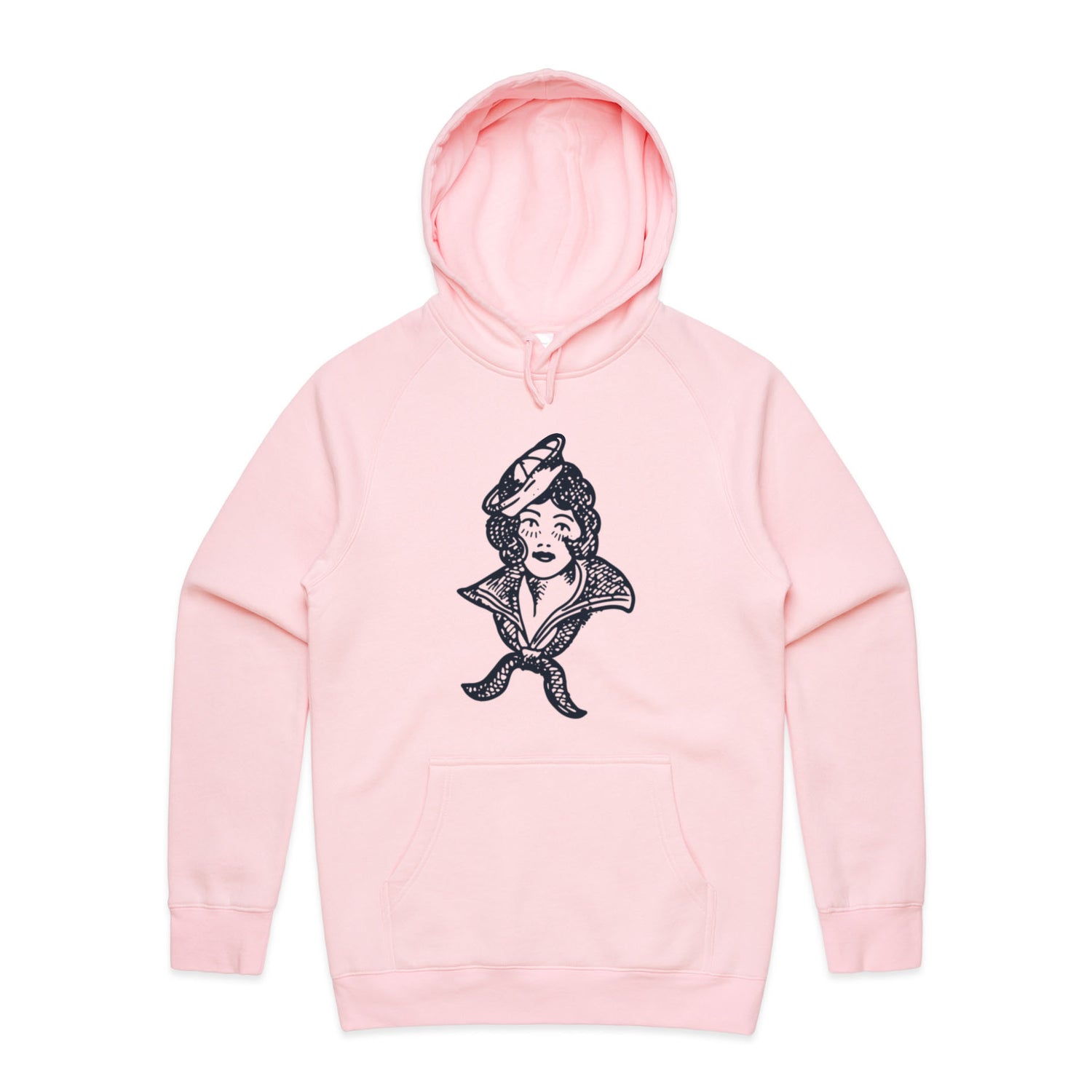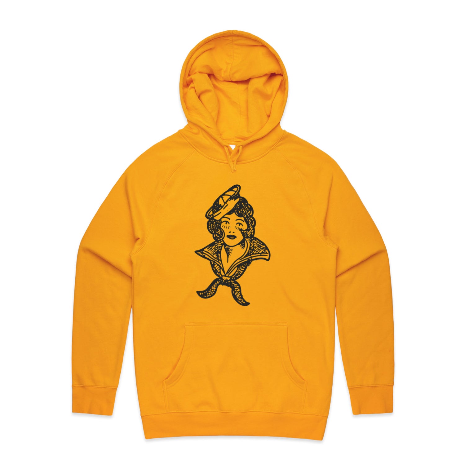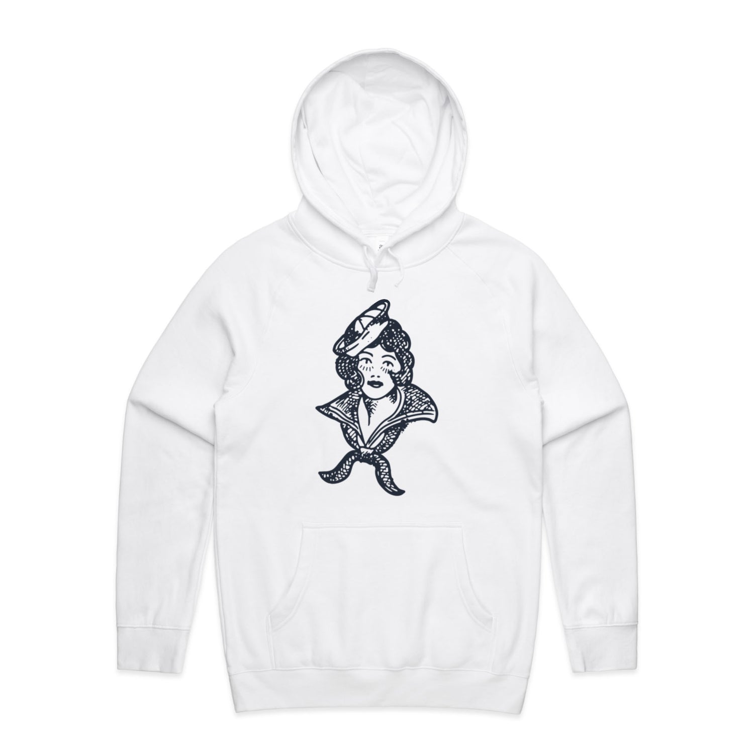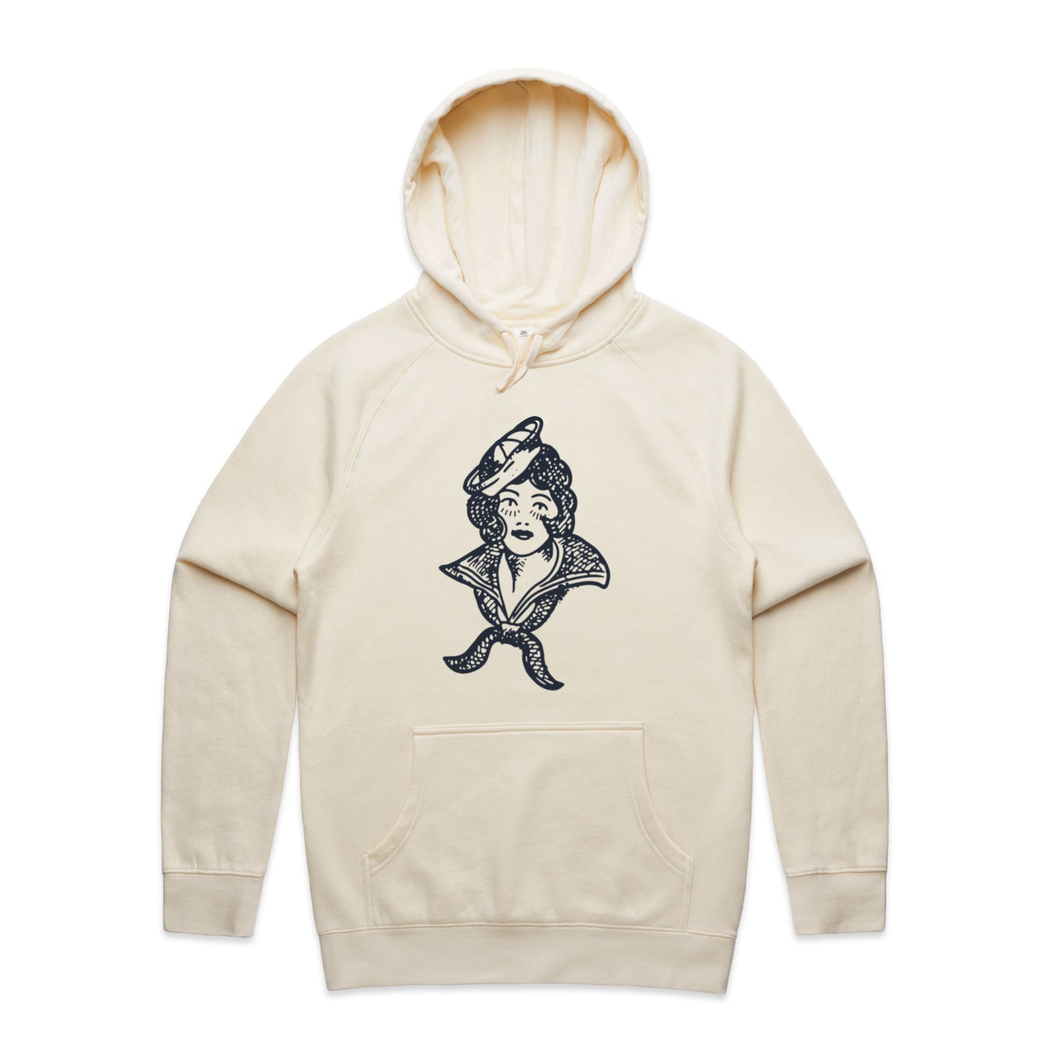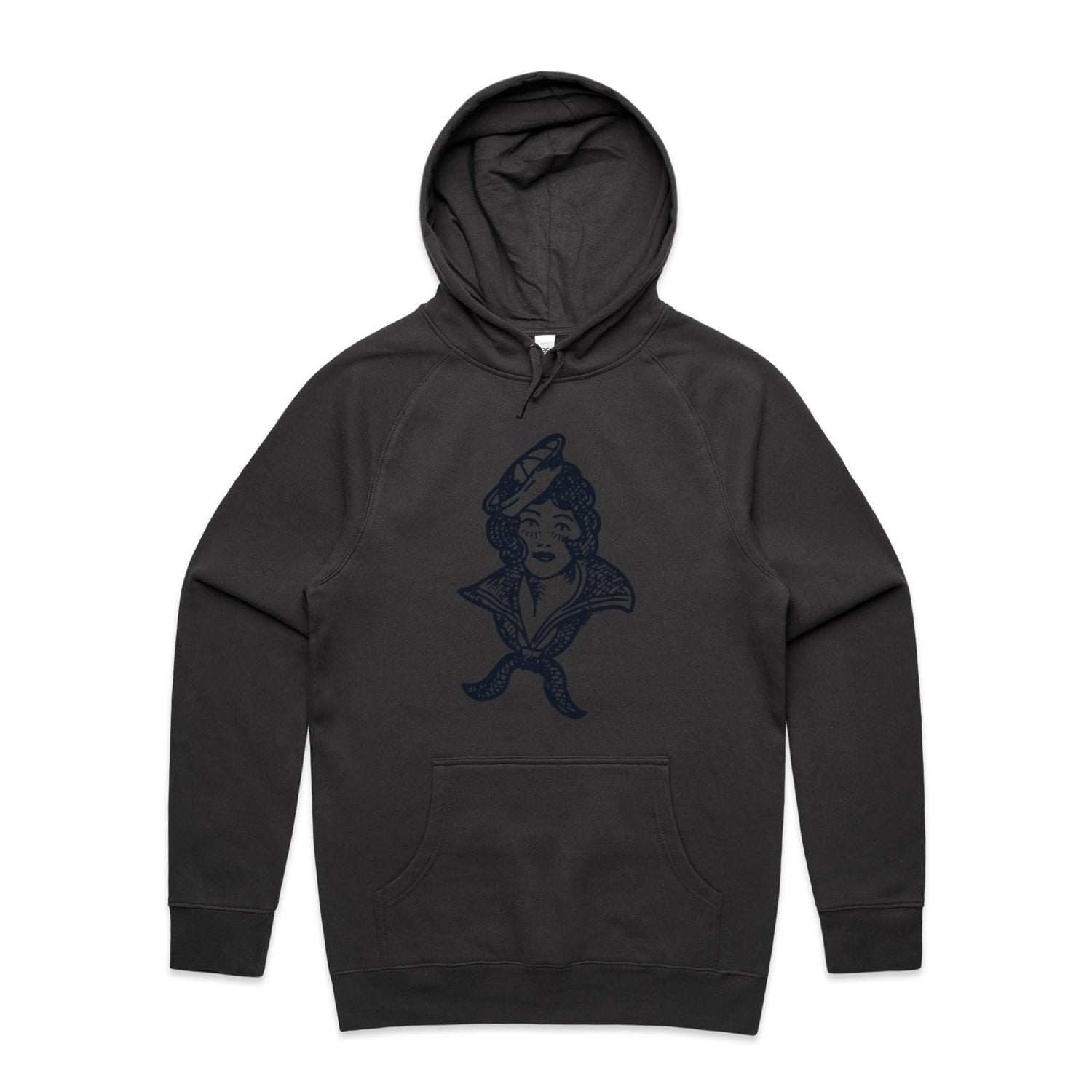 The Hoodies Tattoo Sailor Girl – Men's Hooded Sweatshirt is a high-quality men's hooded sweatshirt, printed with grey ink on the trusted AS Colour Supply Hood 5101. With a regular fit and mid-weight feel, it's crafted from a premium blend of 80% cotton and 20% polyester anti-pill fleece, making it a durable and comfortable staple for any wardrobe. The pullover design features raglan sleeves, a lined hood with tonal drawcord, ribbed sleeve cuffs, and a roomy kangaroo pocket — all designed to keep you warm while looking effortlessly sharp.