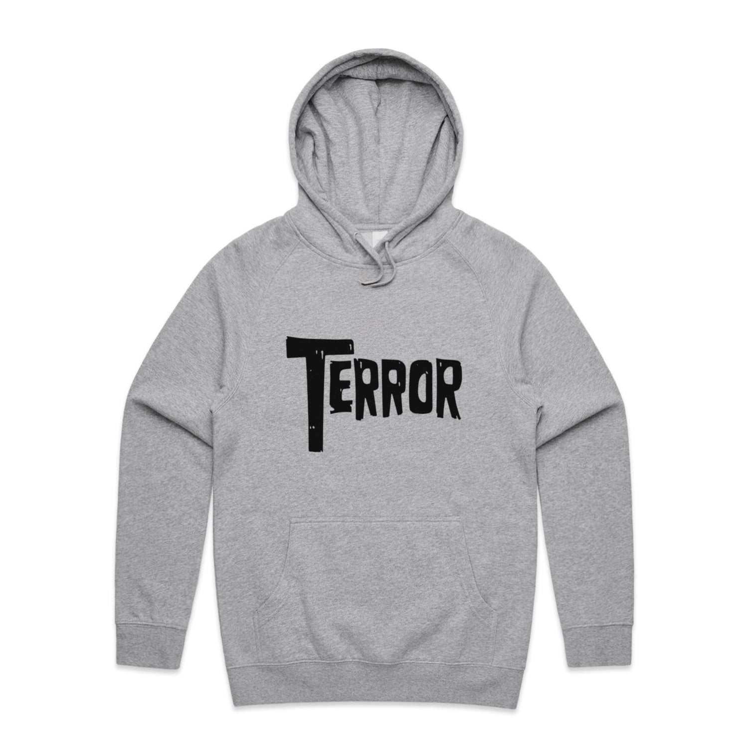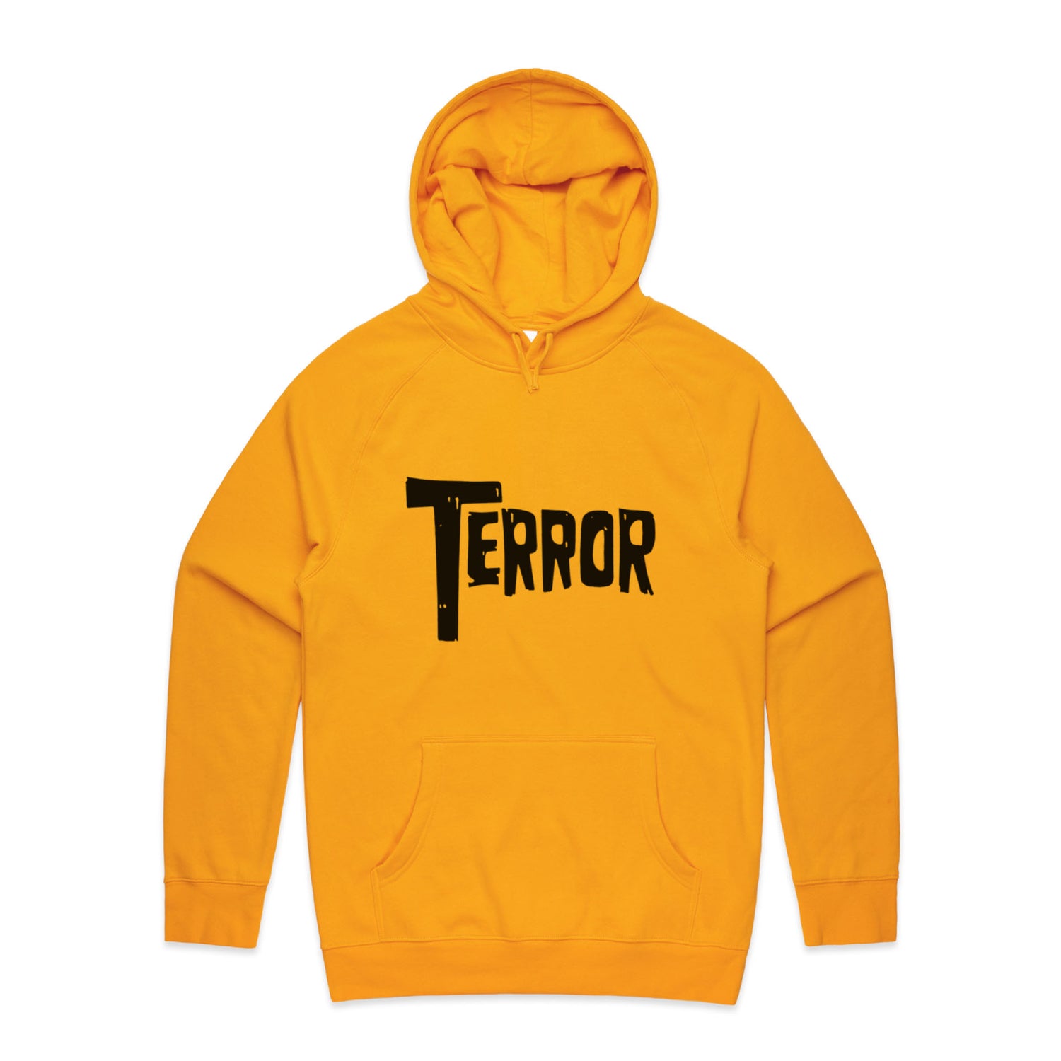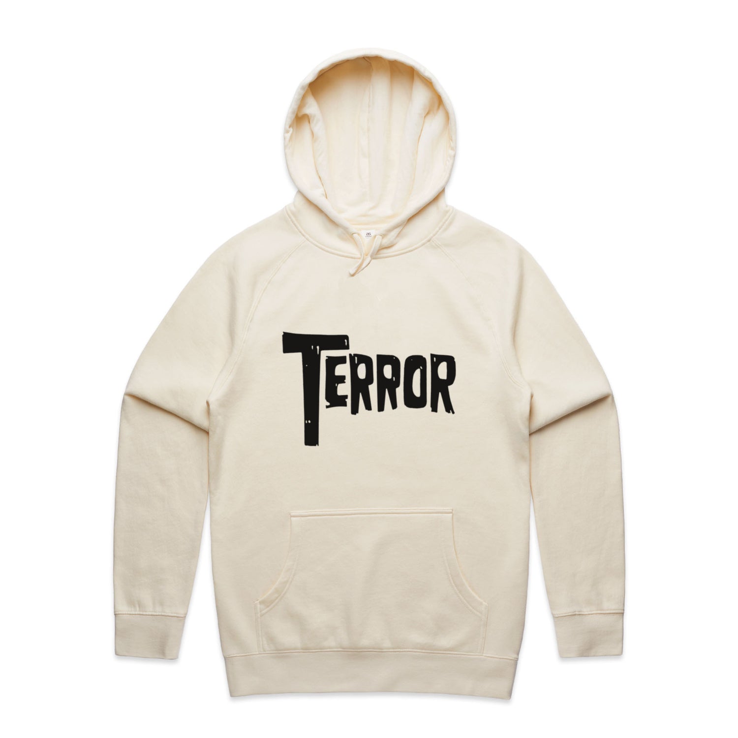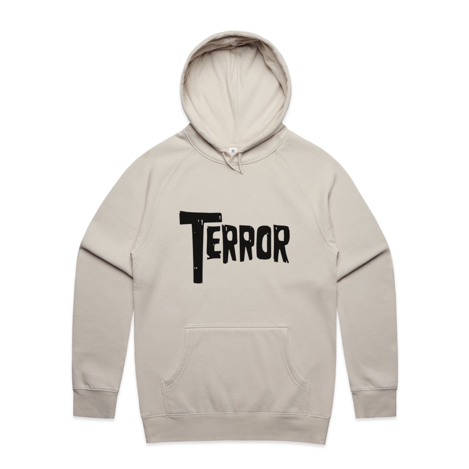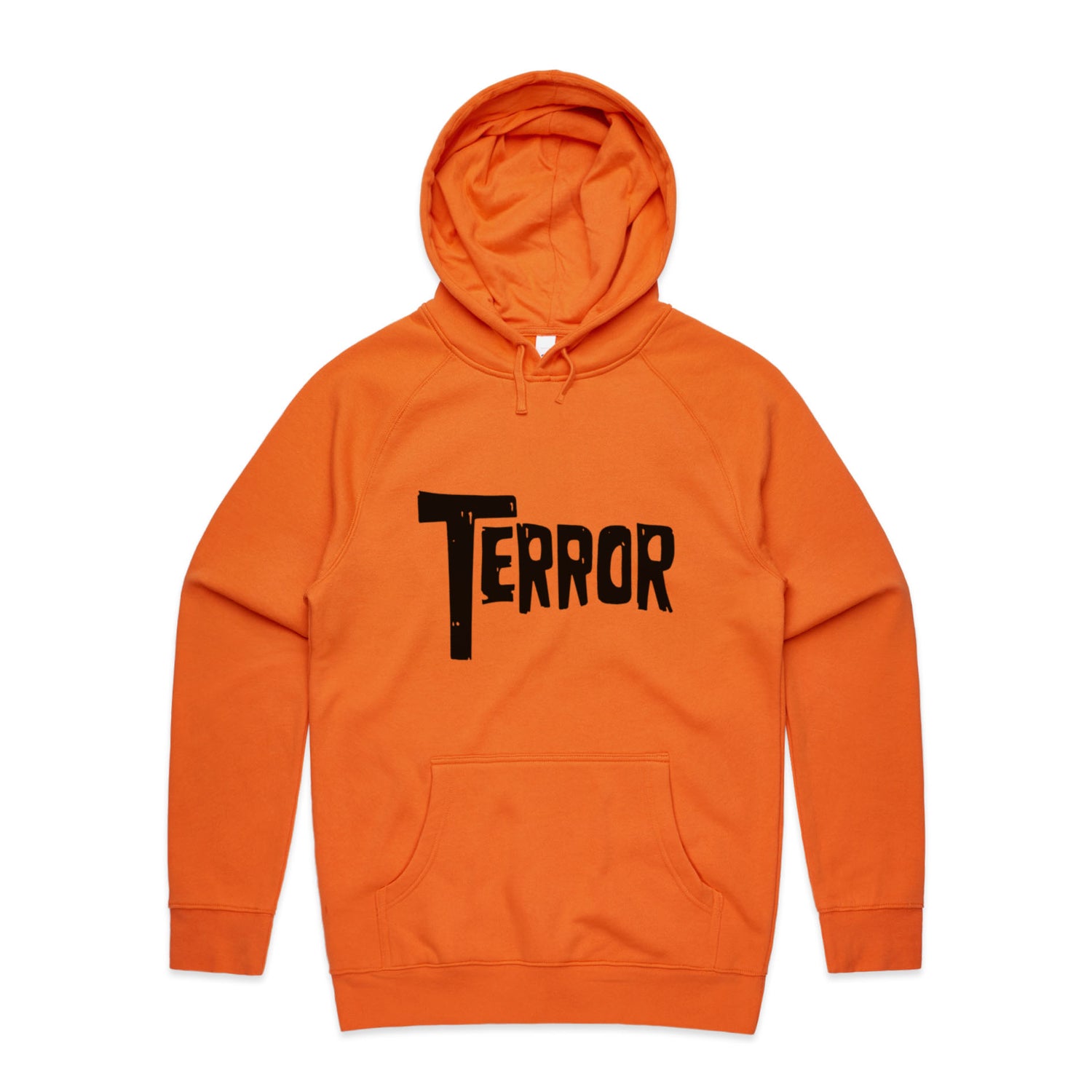 The Hoodies Terror – Men's Hooded Sweatshirt is a high-quality men's hooded sweatshirt, printed with black ink on the trusted AS Colour Supply Hood 5101. With a regular fit and mid-weight feel, it's crafted from a premium blend of 80% cotton and 20% polyester anti-pill fleece, making it a durable and comfortable staple for any wardrobe. The pullover design features raglan sleeves, a lined hood with tonal drawcord, ribbed sleeve cuffs, and a roomy kangaroo pocket — all designed to keep you warm while looking effortlessly sharp.