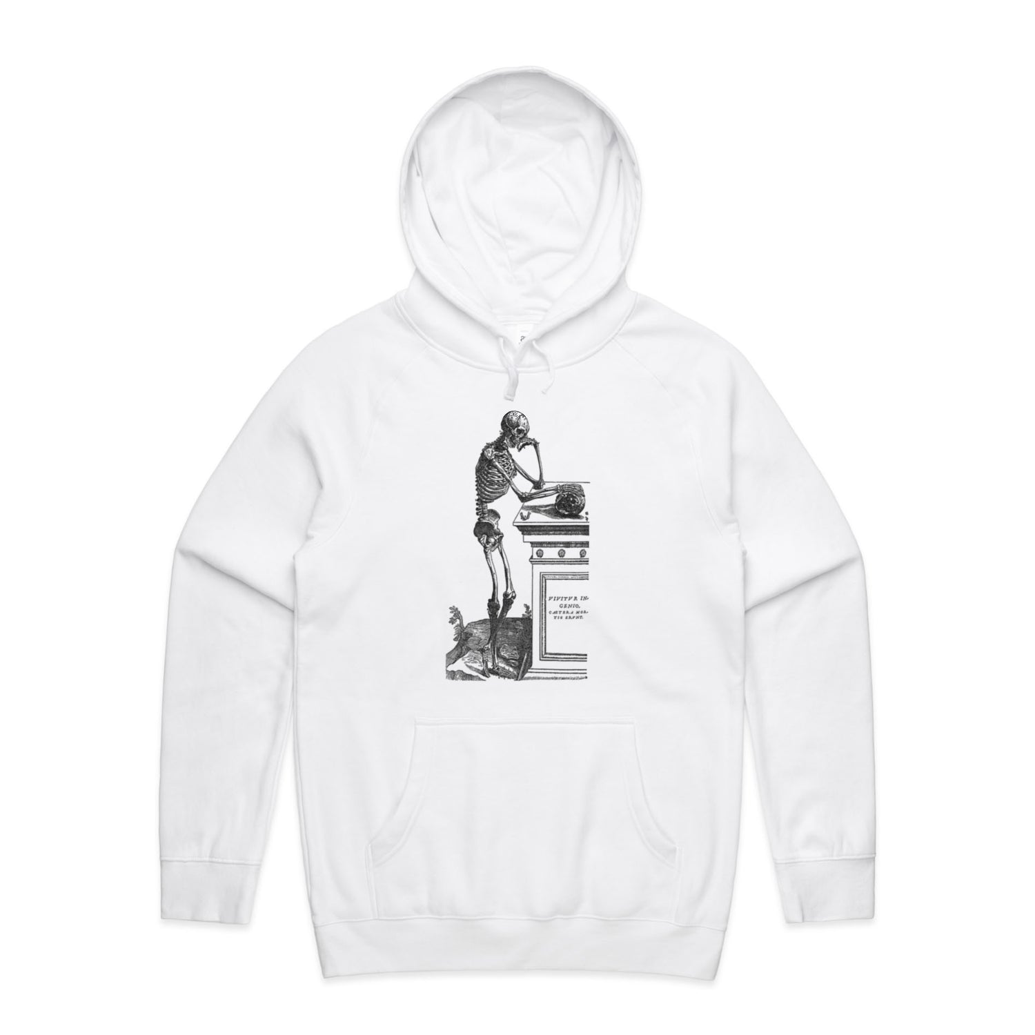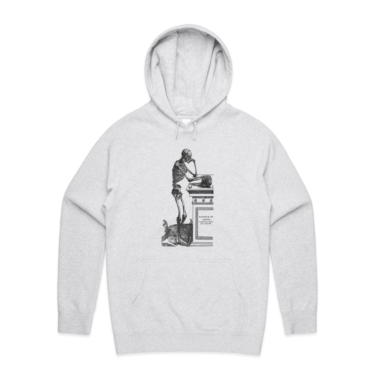 The Hoodies Thinking Skeleton – Men's Hooded Sweatshirt is a high-quality men's hooded sweatshirt, printed with black ink on the trusted AS Colour Supply Hood 5101. With a regular fit and mid-weight feel, it's crafted from a premium blend of 80% cotton and 20% polyester anti-pill fleece, making it a durable and comfortable staple for any wardrobe. The pullover design features raglan sleeves, a lined hood with tonal drawcord, ribbed sleeve cuffs, and a roomy kangaroo pocket — all designed to keep you warm while looking effortlessly sharp.