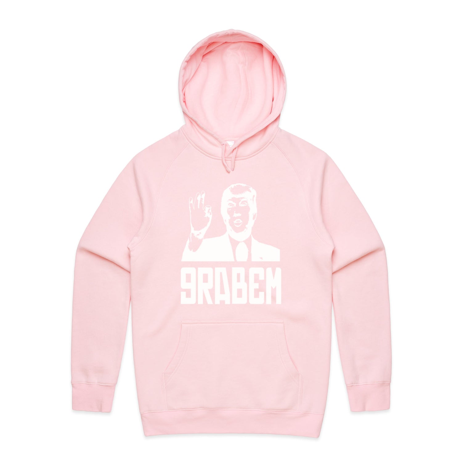 The Hoodies Trump Grab Em – Men's Hooded Sweatshirt is a high-quality men's hooded sweatshirt, printed with white ink on the trusted AS Colour Supply Hood 5101. With a regular fit and mid-weight feel, it's crafted from a premium blend of 80% cotton and 20% polyester anti-pill fleece, making it a durable and comfortable staple for any wardrobe. The pullover design features raglan sleeves, a lined hood with tonal drawcord, ribbed sleeve cuffs, and a roomy kangaroo pocket — all designed to keep you warm while looking effortlessly sharp.