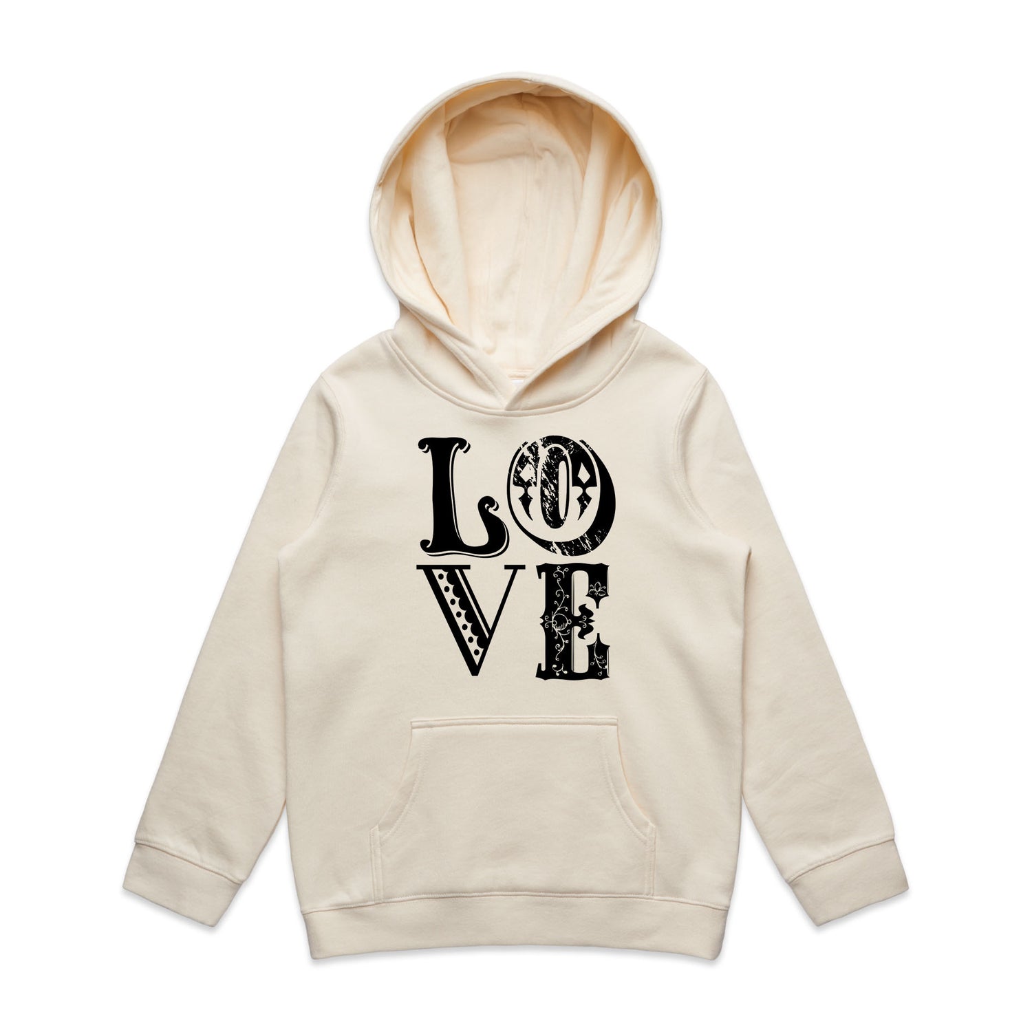 Vintage Love Typography – Kid's Hooded Sweatshirt
