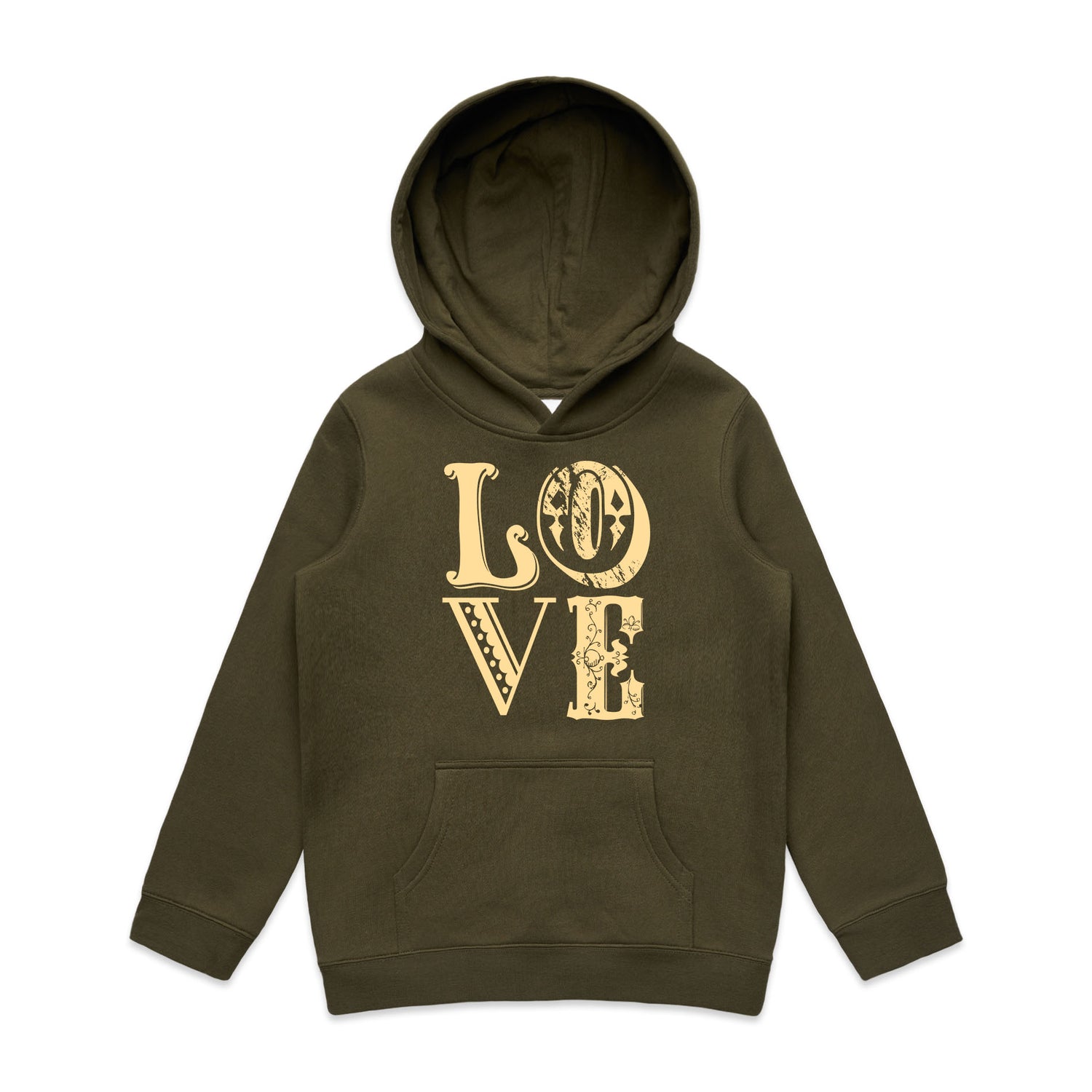 Vintage Love Typography – Kid's Hooded Sweatshirt