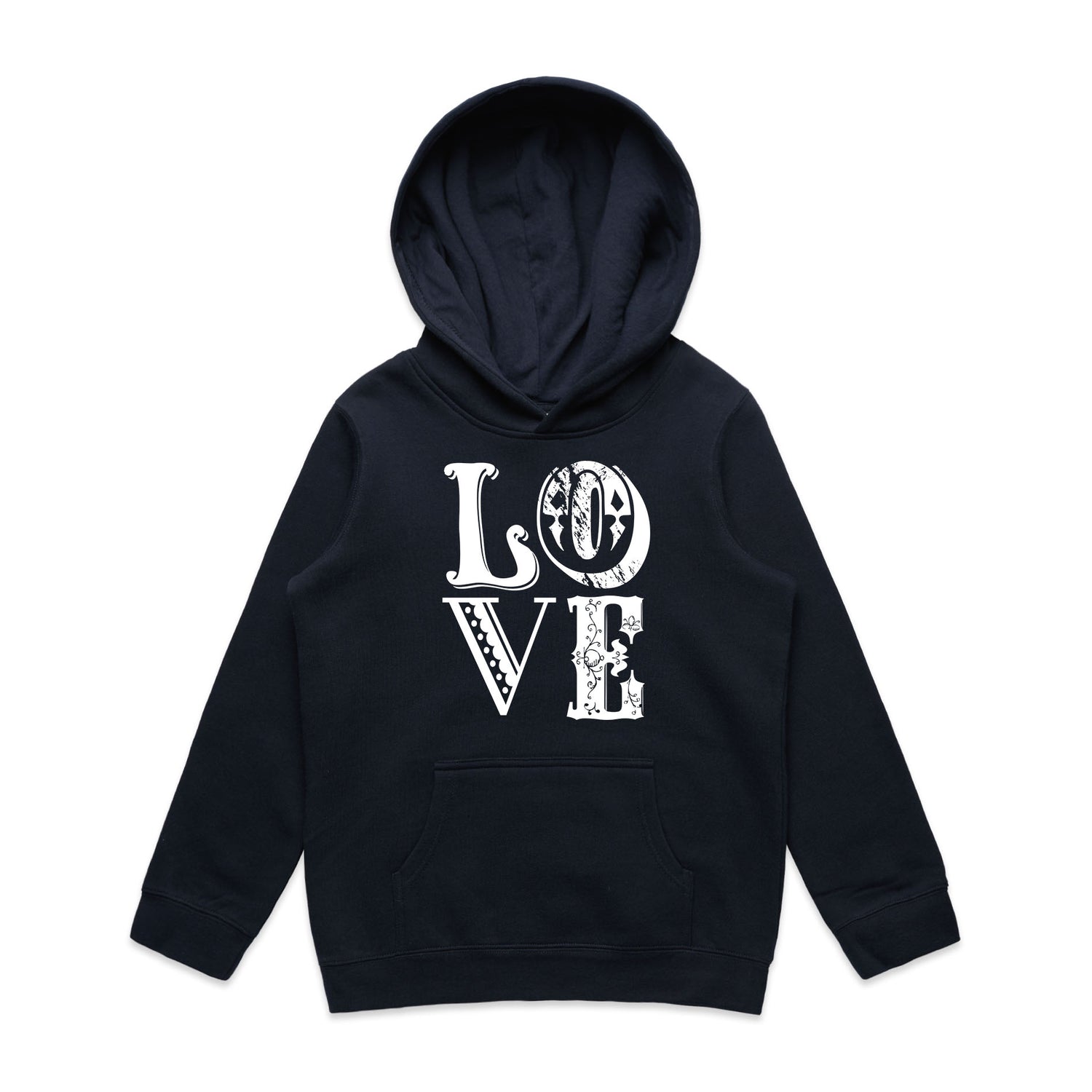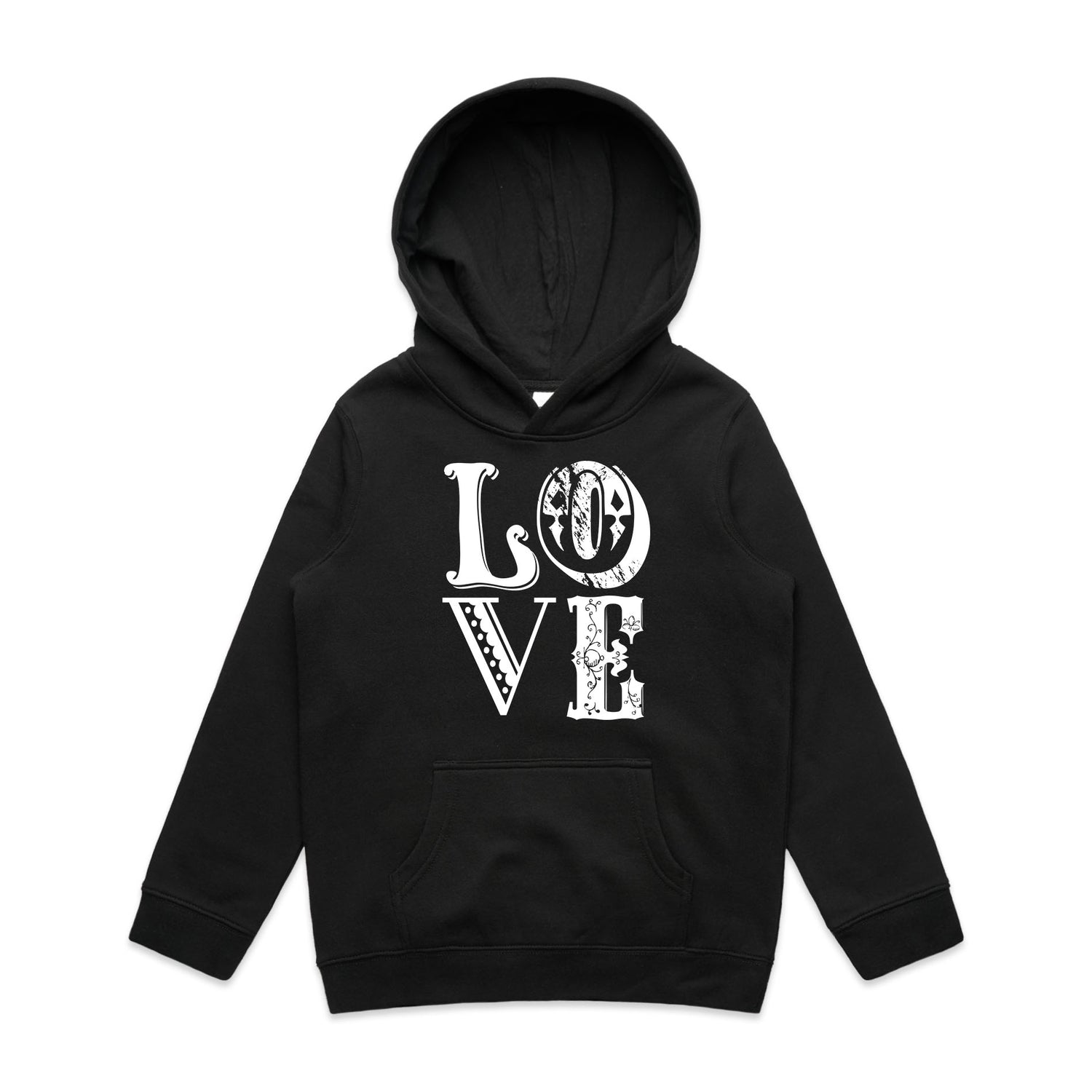 Vintage Love Typography – Kid's Hooded Sweatshirt