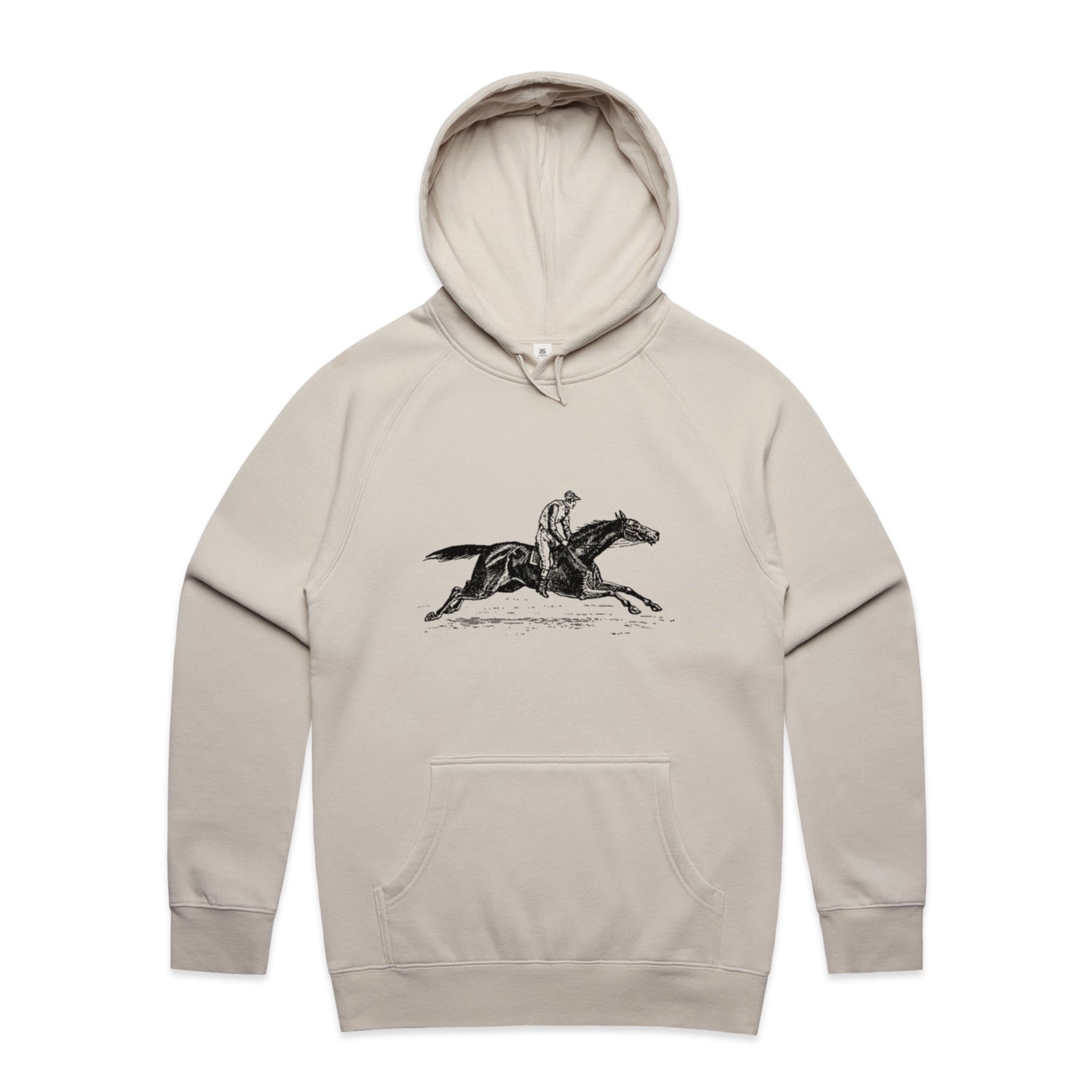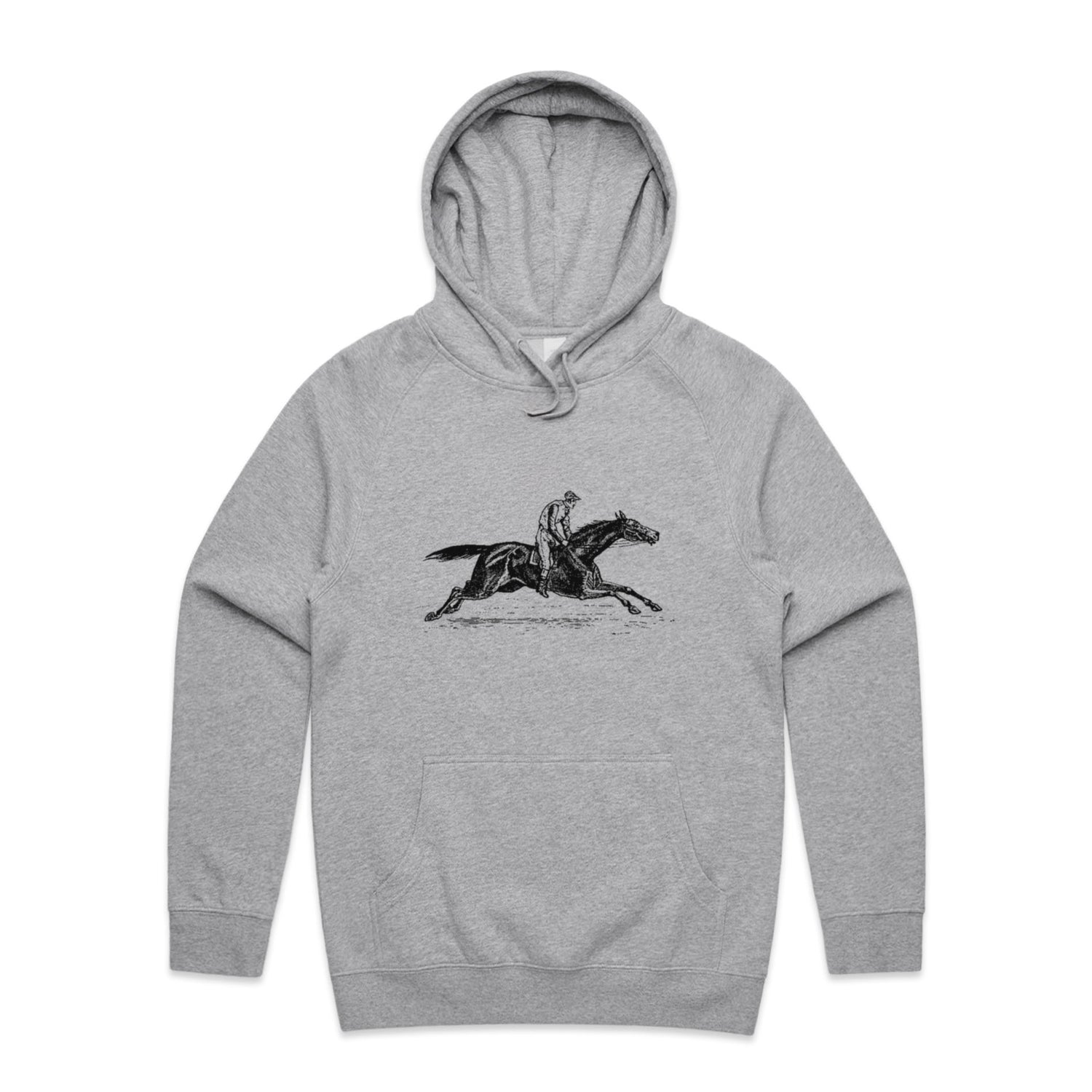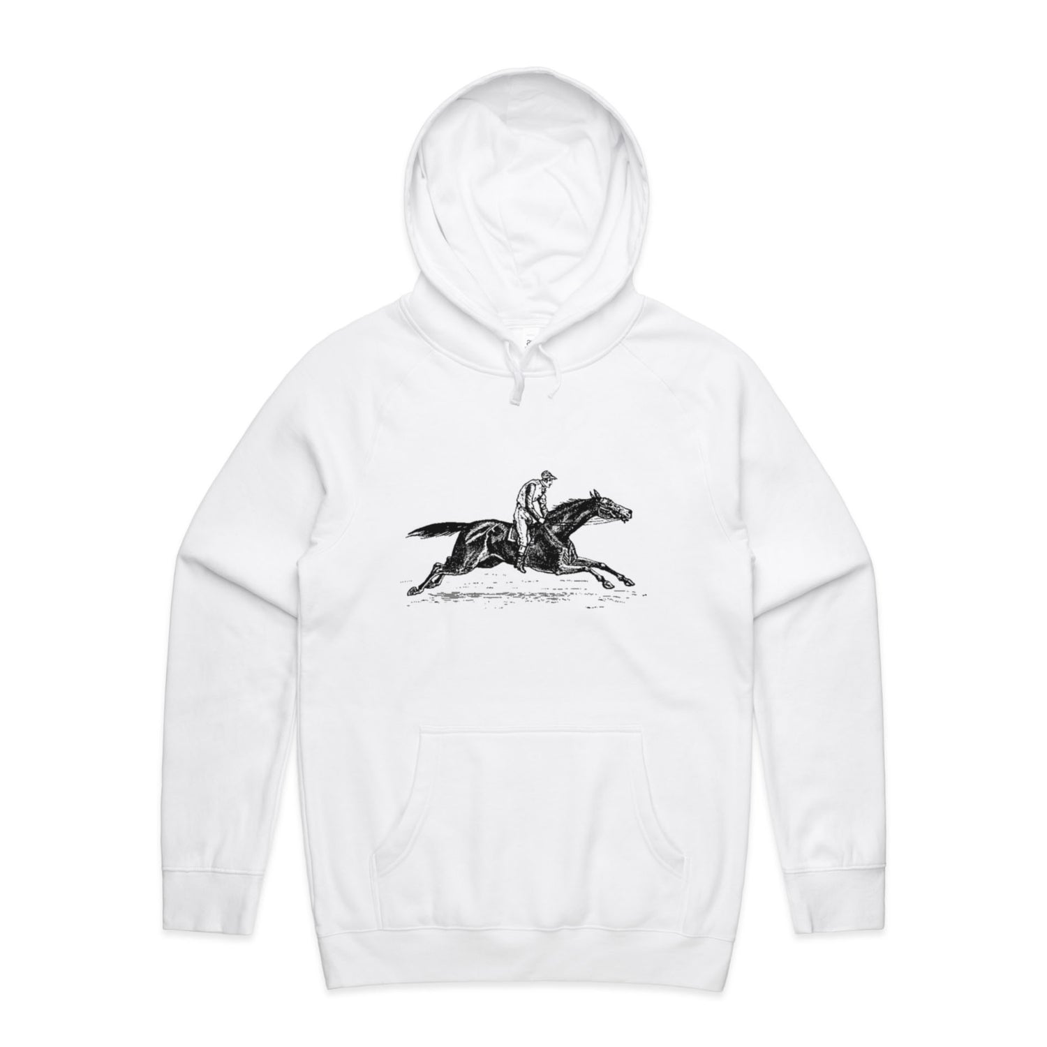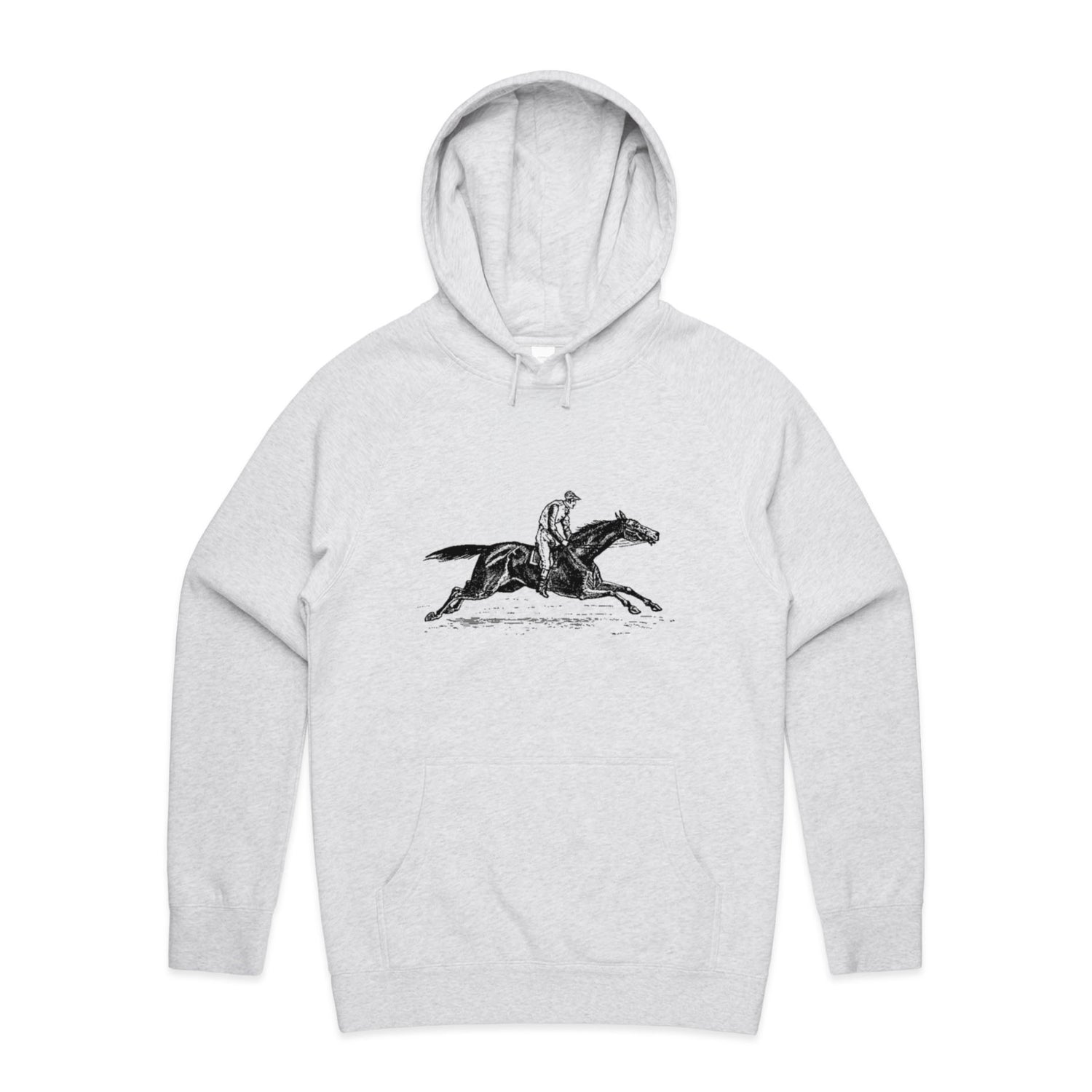 The Hoodies Vintage Race Horse – Men's Hooded Sweatshirt is a high-quality men's hooded sweatshirt, printed with black ink on the trusted AS Colour Supply Hood 5101. With a regular fit and mid-weight feel, it's crafted from a premium blend of 80% cotton and 20% polyester anti-pill fleece, making it a durable and comfortable staple for any wardrobe. The pullover design features raglan sleeves, a lined hood with tonal drawcord, ribbed sleeve cuffs, and a roomy kangaroo pocket — all designed to keep you warm while looking effortlessly sharp.