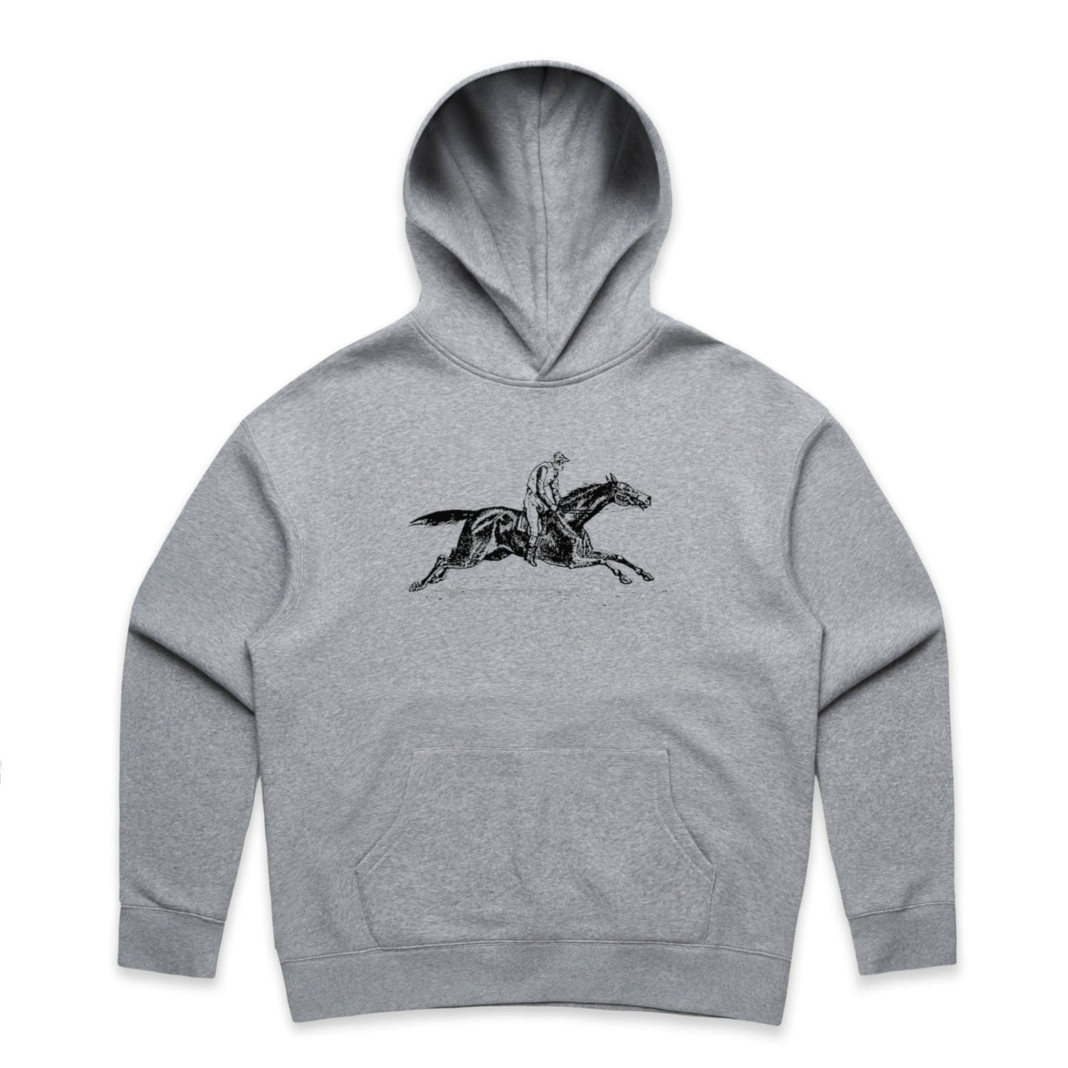Get ready to gallop into comfort with TheHoodie's Vintage Race Horse women’s hooded sweatshirt! This isn’t just any hoodie—it’s your new best mate for those cruisy days and nights. With a vintage black racehorse design plastered across the front, this beauty is bold enough to turn heads but casual enough to keep it laid-back.