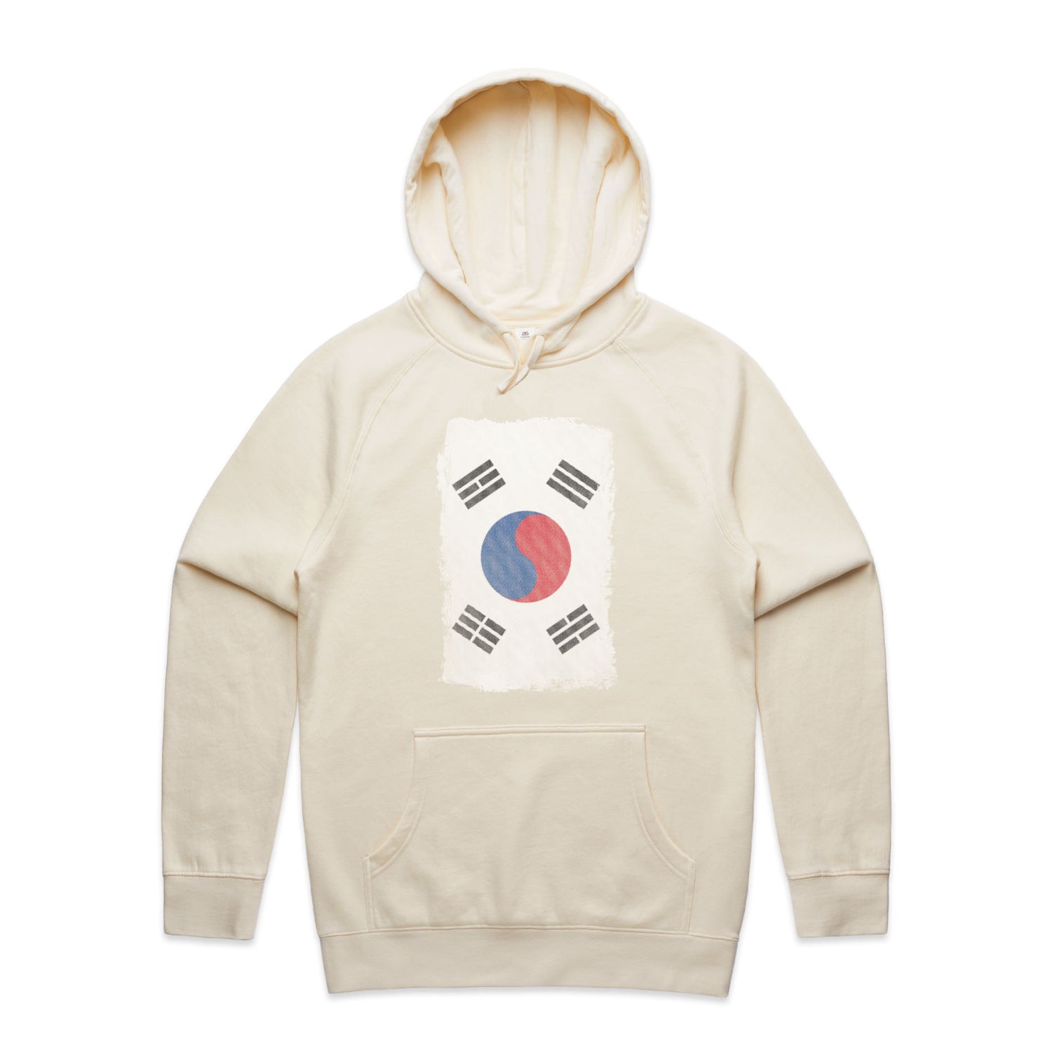 Built for everyday wear, this hoodie is preshrunk to minimise shrinkage and finished with a tear-out label for extra comfort. Whether you’re heading out for a casual day, layering up for the cooler months, or just relaxing at home, The Hoodies Weathered Flag of South Korea – Men's Hooded Sweatshirt is the ideal choice. Designed to suit a wide range of styles, this piece blends laid-back comfort with street-ready edge.