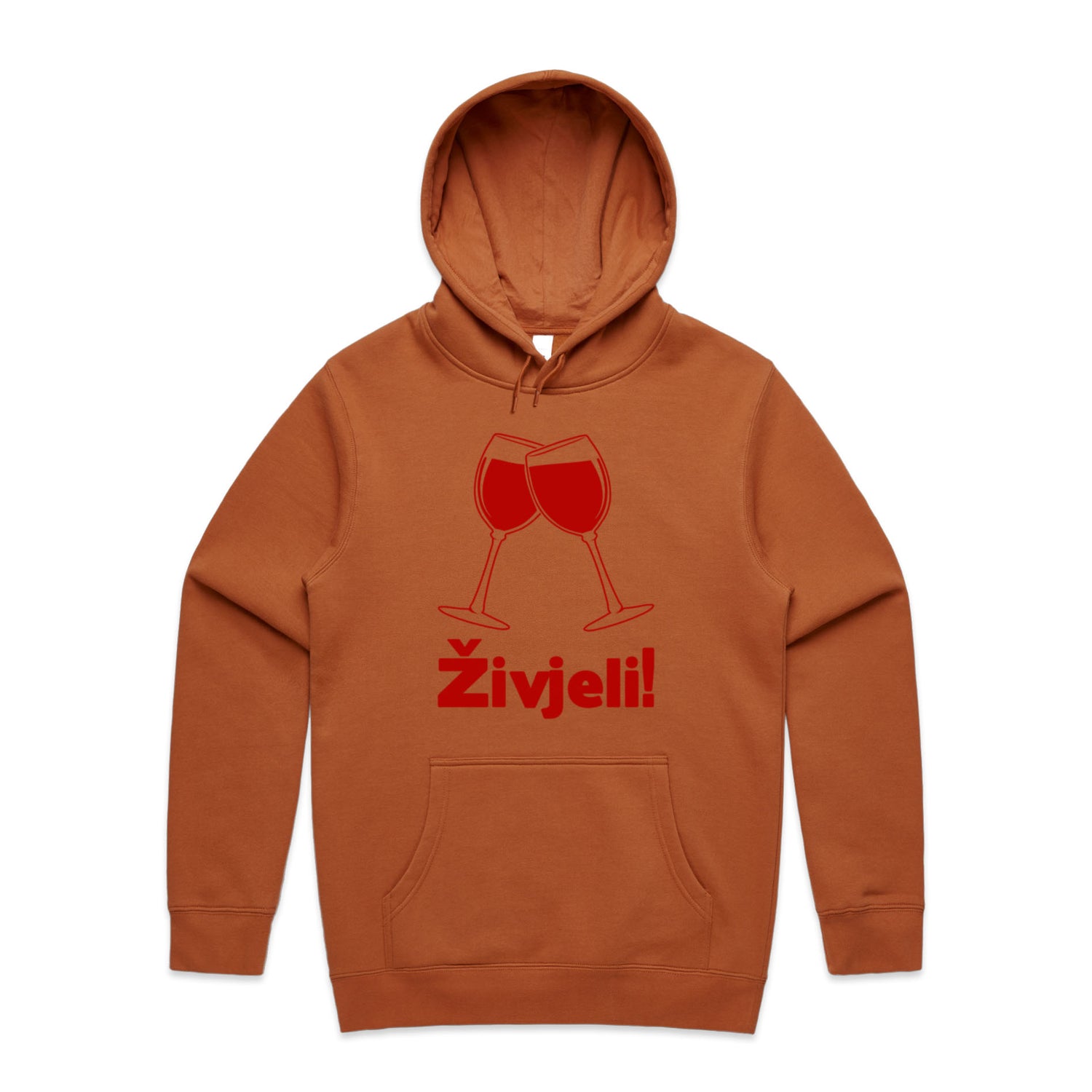 Crafted for the eco-warrior at heart, this hoodie boasts a snug and stylish fit that’s just as suitable for a backyard barbie as it is for a lazy arvo on the couch. With a weighty feel that’s as comforting as a warm hug, and a sturdy kangaroo pocket perfect for storing all the essentials (like that extra garlic bread or vino stash), it's got everything you need to look and feel fresh. Plus, the iconic Croatian cheers design in a bold red print is here to add a funky pop to your everyday style.
