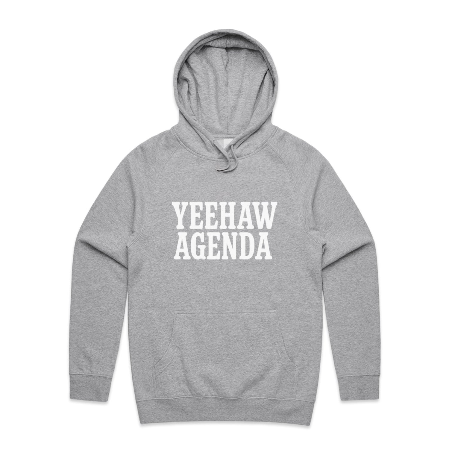 The Hoodies Yeehaw Agenda – Men's Hooded Sweatshirt is a high-quality men's hooded sweatshirt, printed with white ink on the trusted AS Colour Supply Hood 5101. With a regular fit and mid-weight feel, it's crafted from a premium blend of 80% cotton and 20% polyester anti-pill fleece, making it a durable and comfortable staple for any wardrobe. The pullover design features raglan sleeves, a lined hood with tonal drawcord, ribbed sleeve cuffs, and a roomy kangaroo pocket — all designed to keep you warm while looking effortlessly sharp.