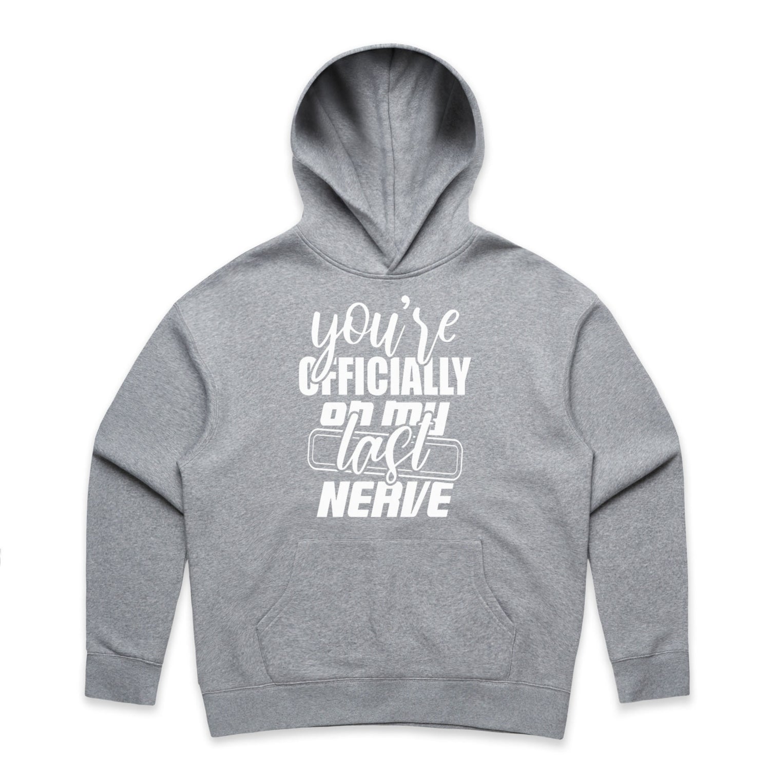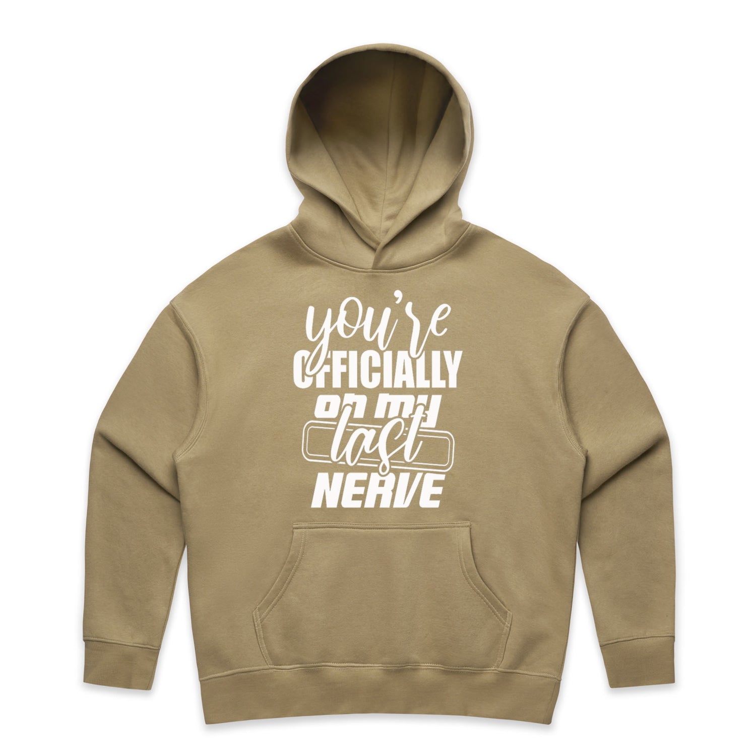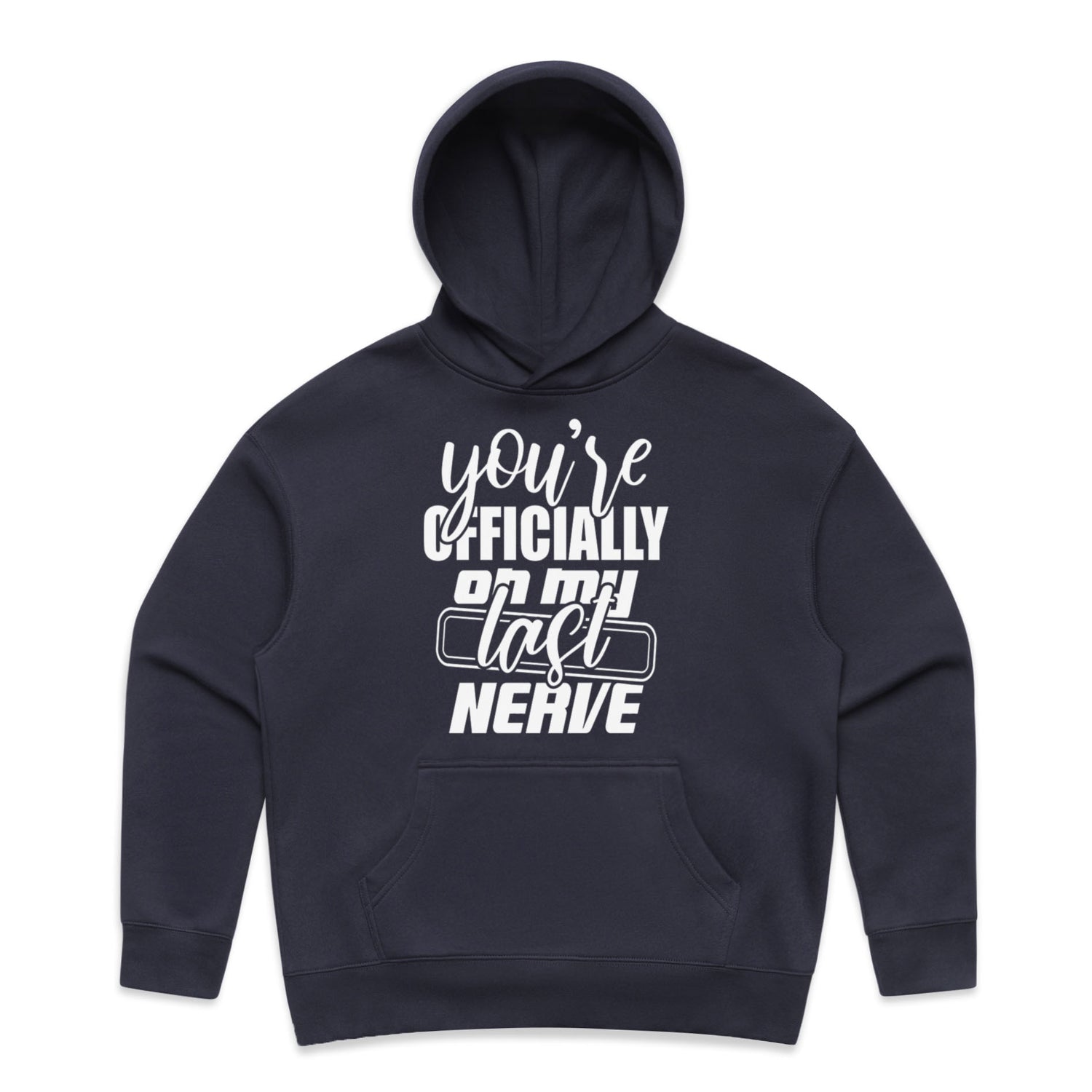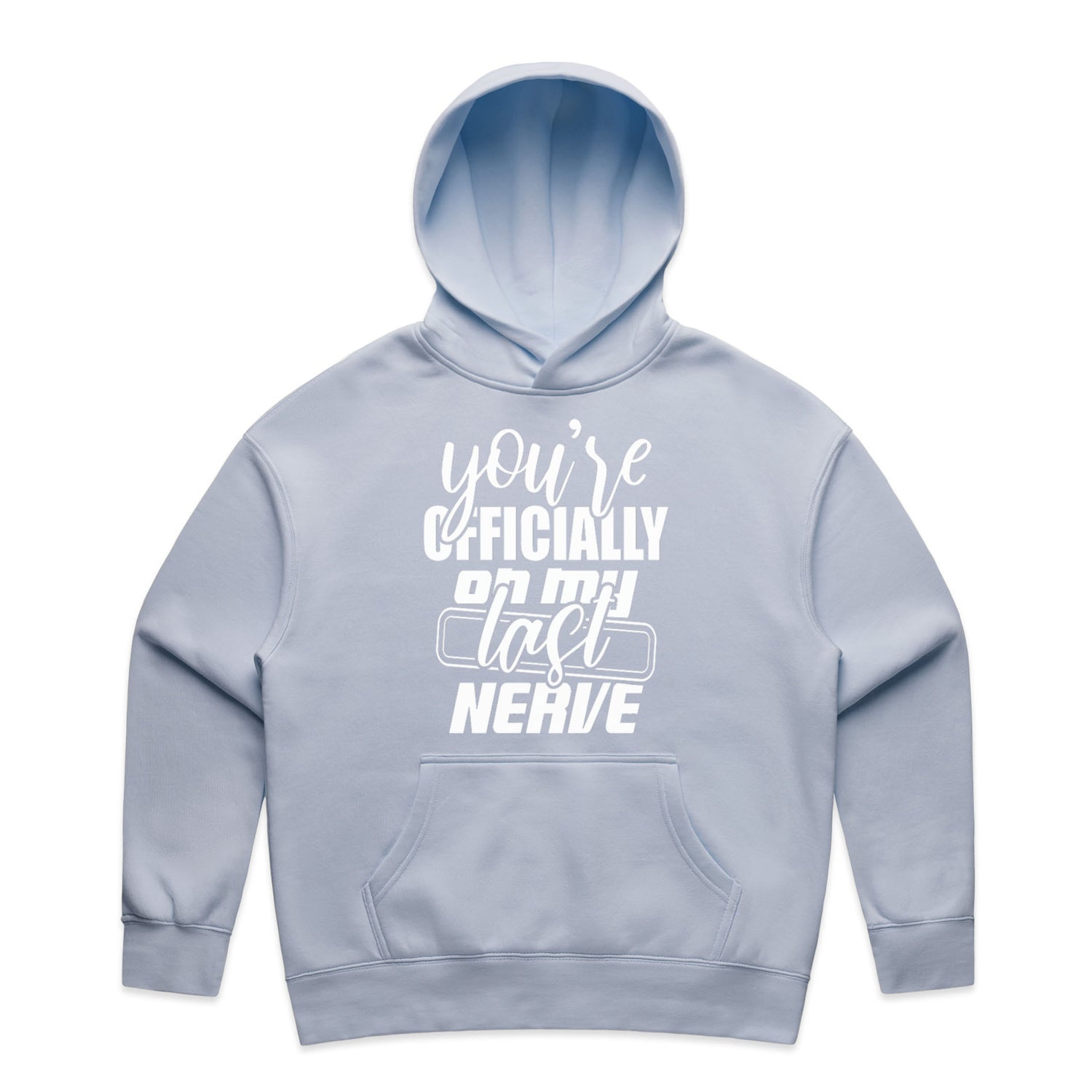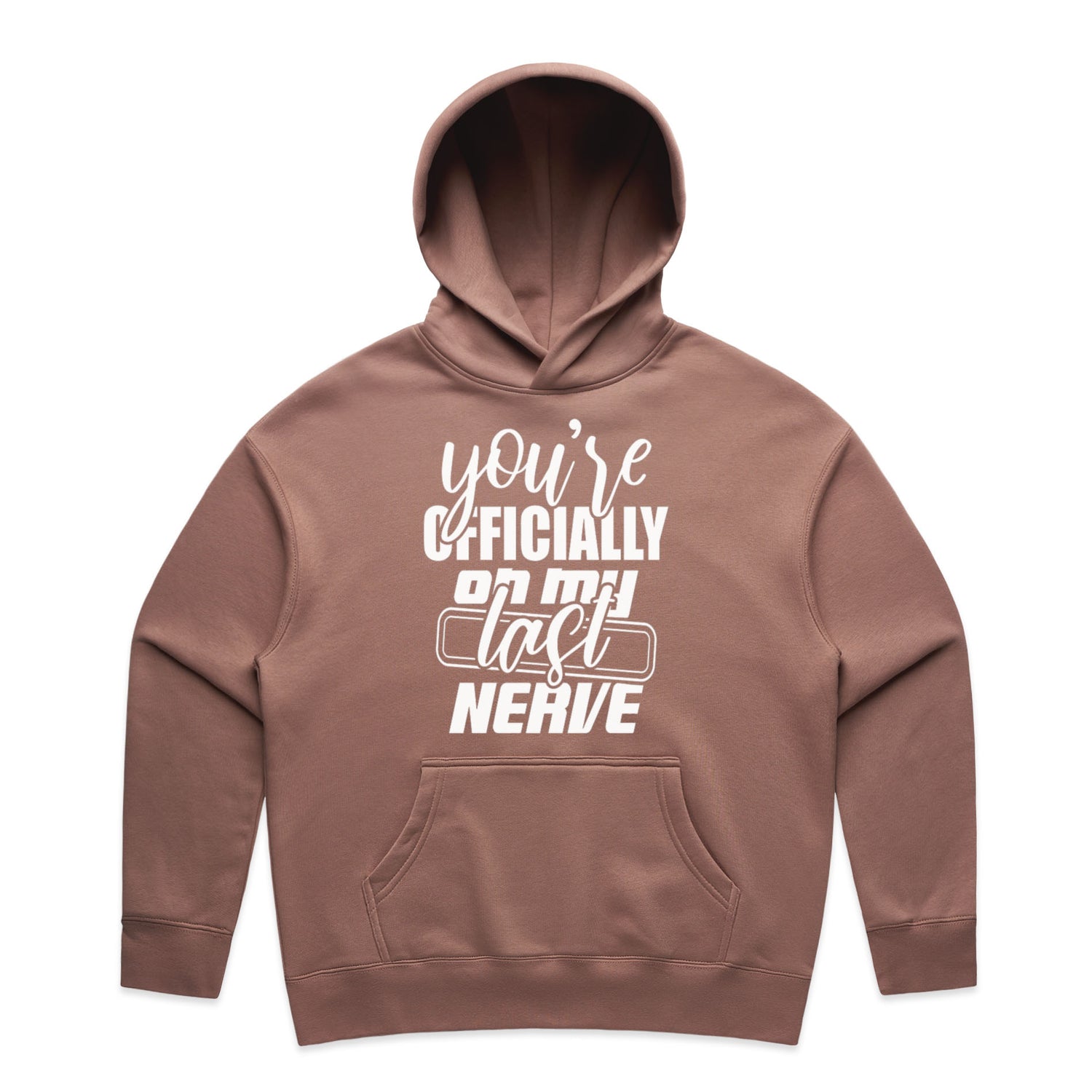 Feeling a bit cheeky? Our "You're On My Nerve" women's hooded sweatshirt is the ultimate wardrobe wink that says it all without uttering a word. Perfect for when you're in the mood to serve up a slice of sarcasm with your daily drip, this hoodie brings the sass with its bold, white typography that's as sharp as your wit.